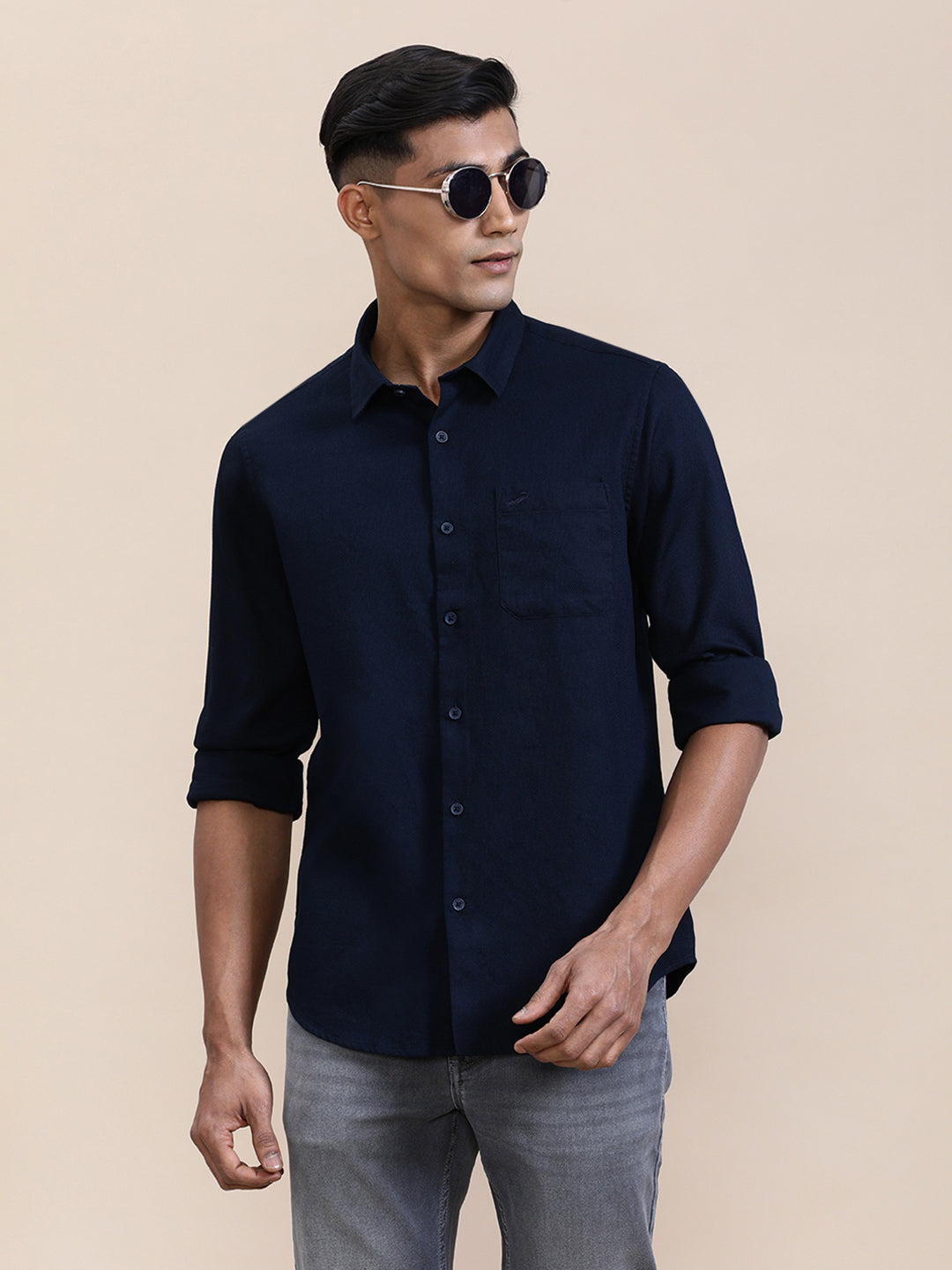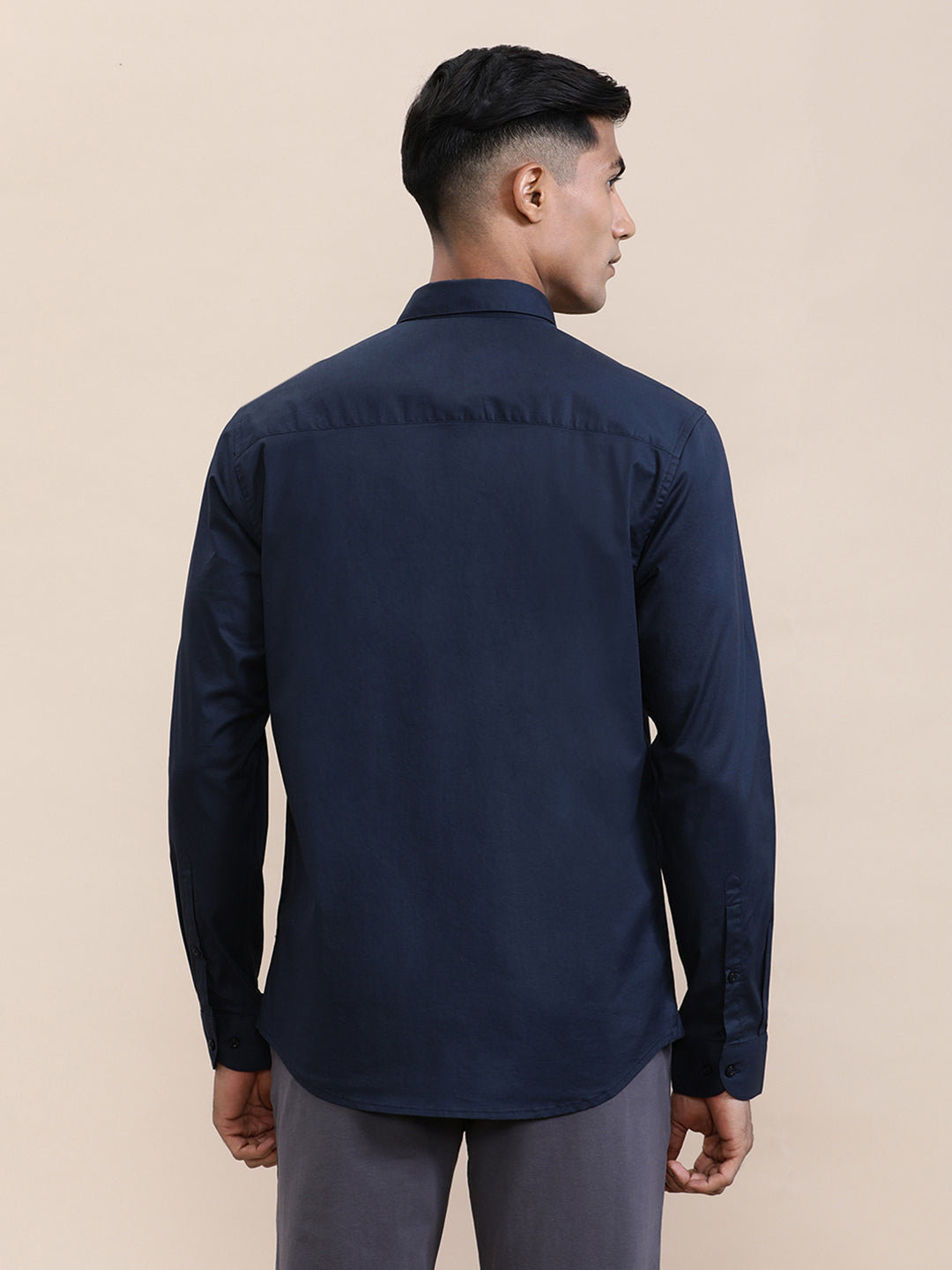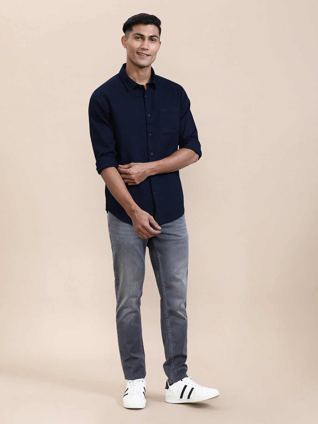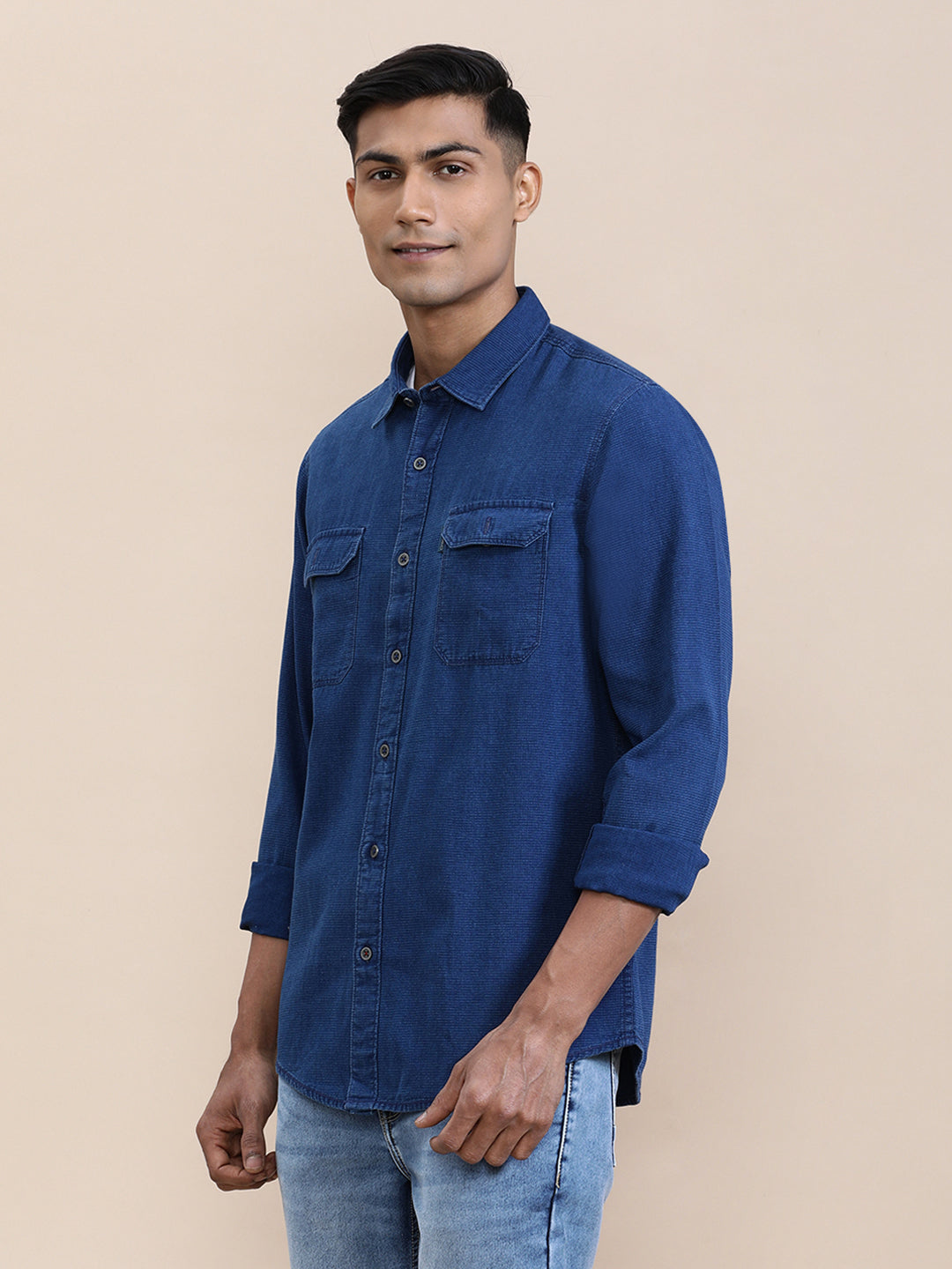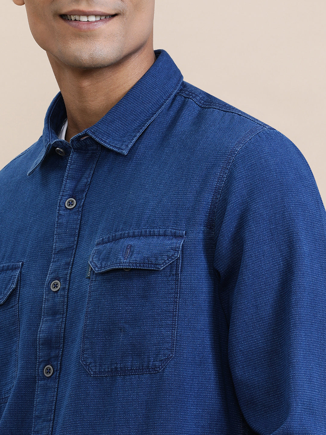 Navy Utility Style Cotton Textured Comfort Fit Shirts