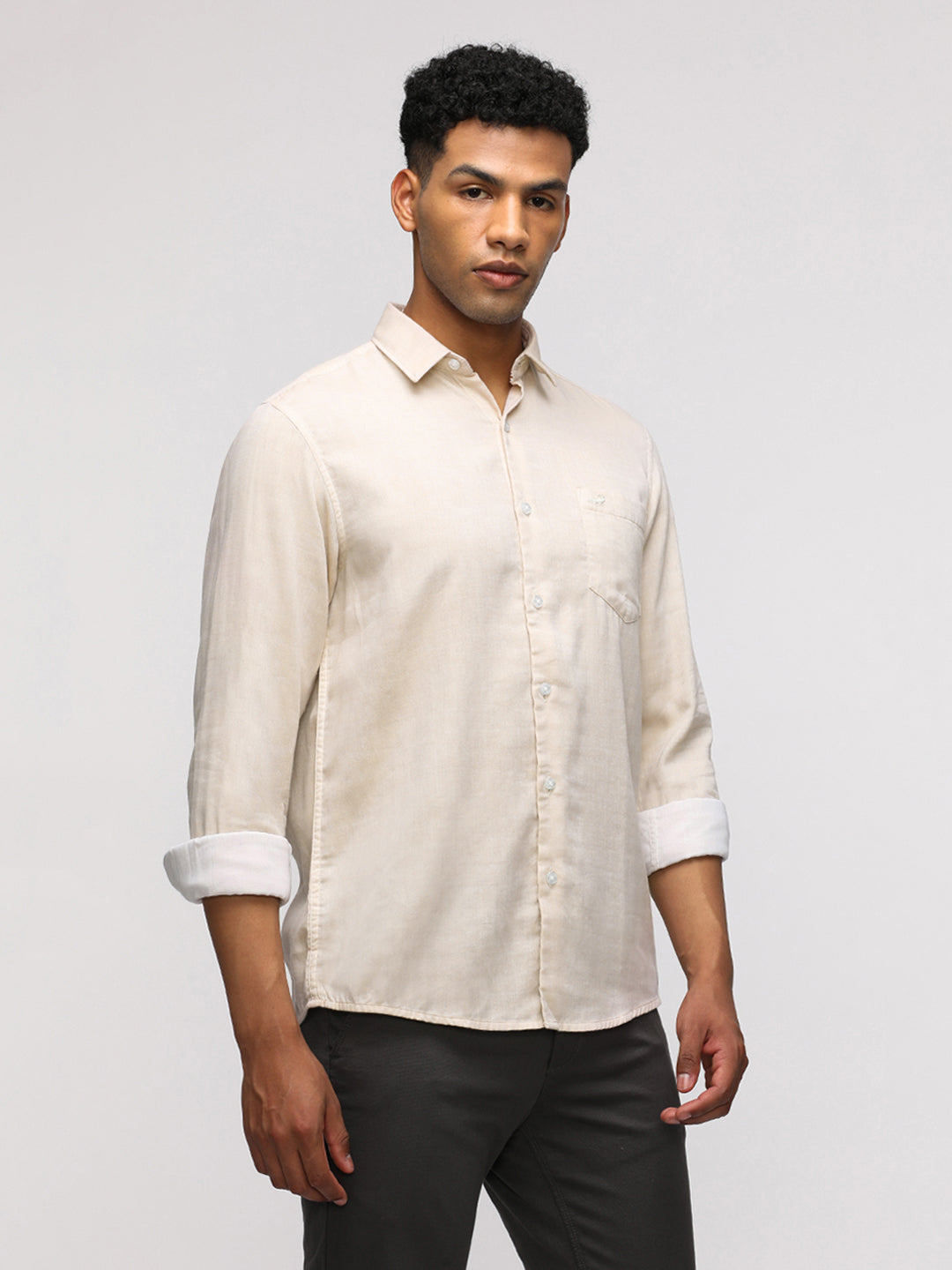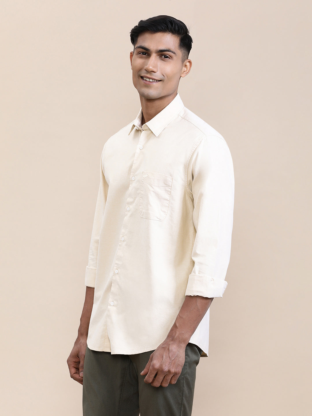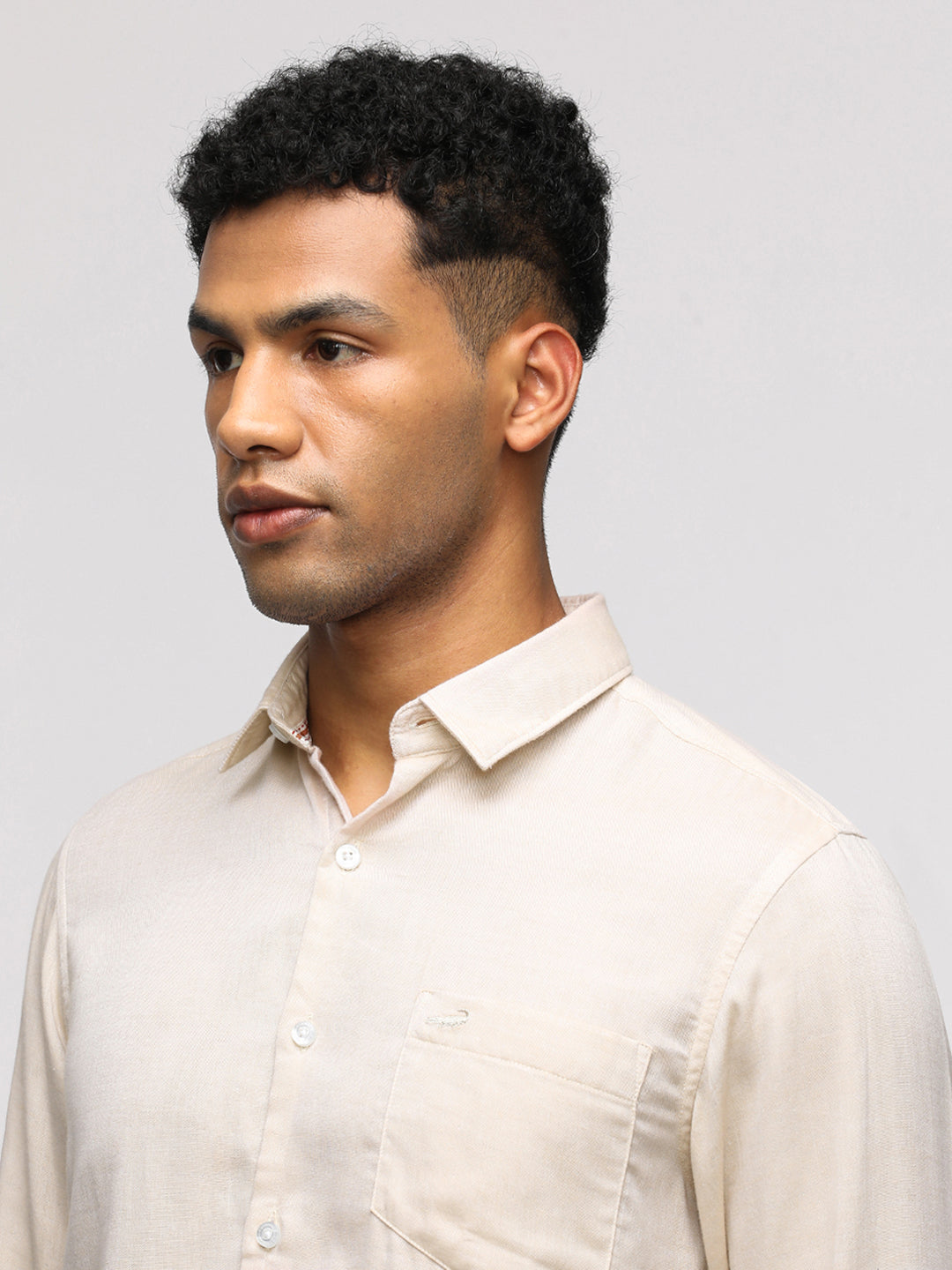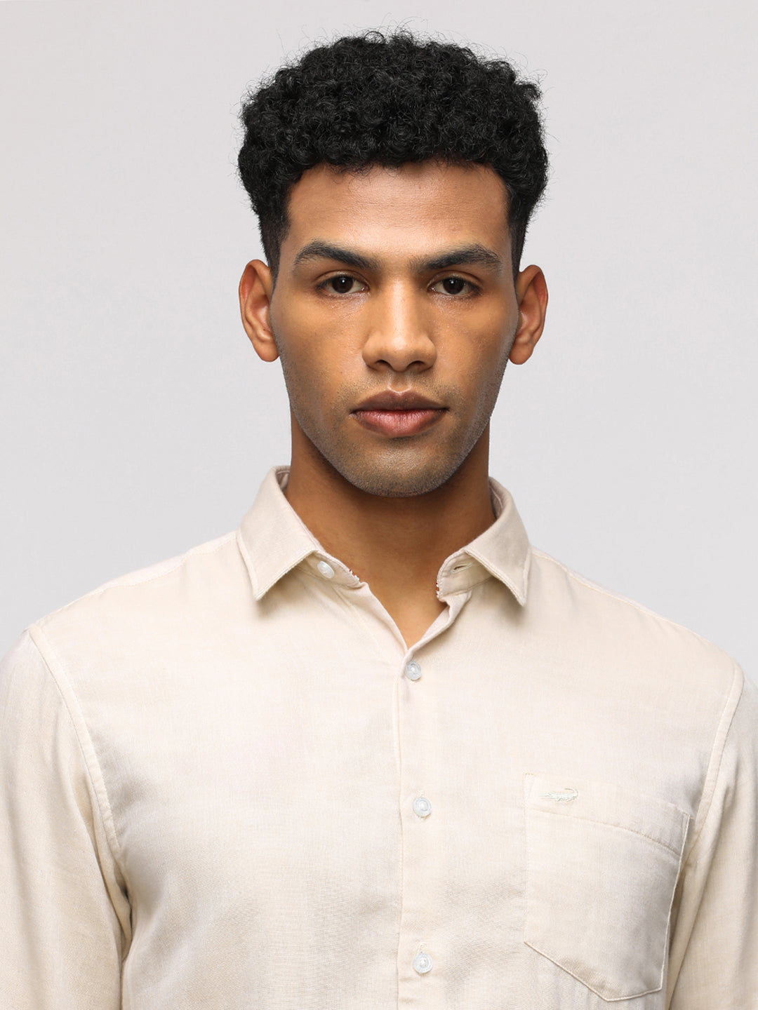 Textured Cozy Feel Cotton Comfort Fit Beige Shirts