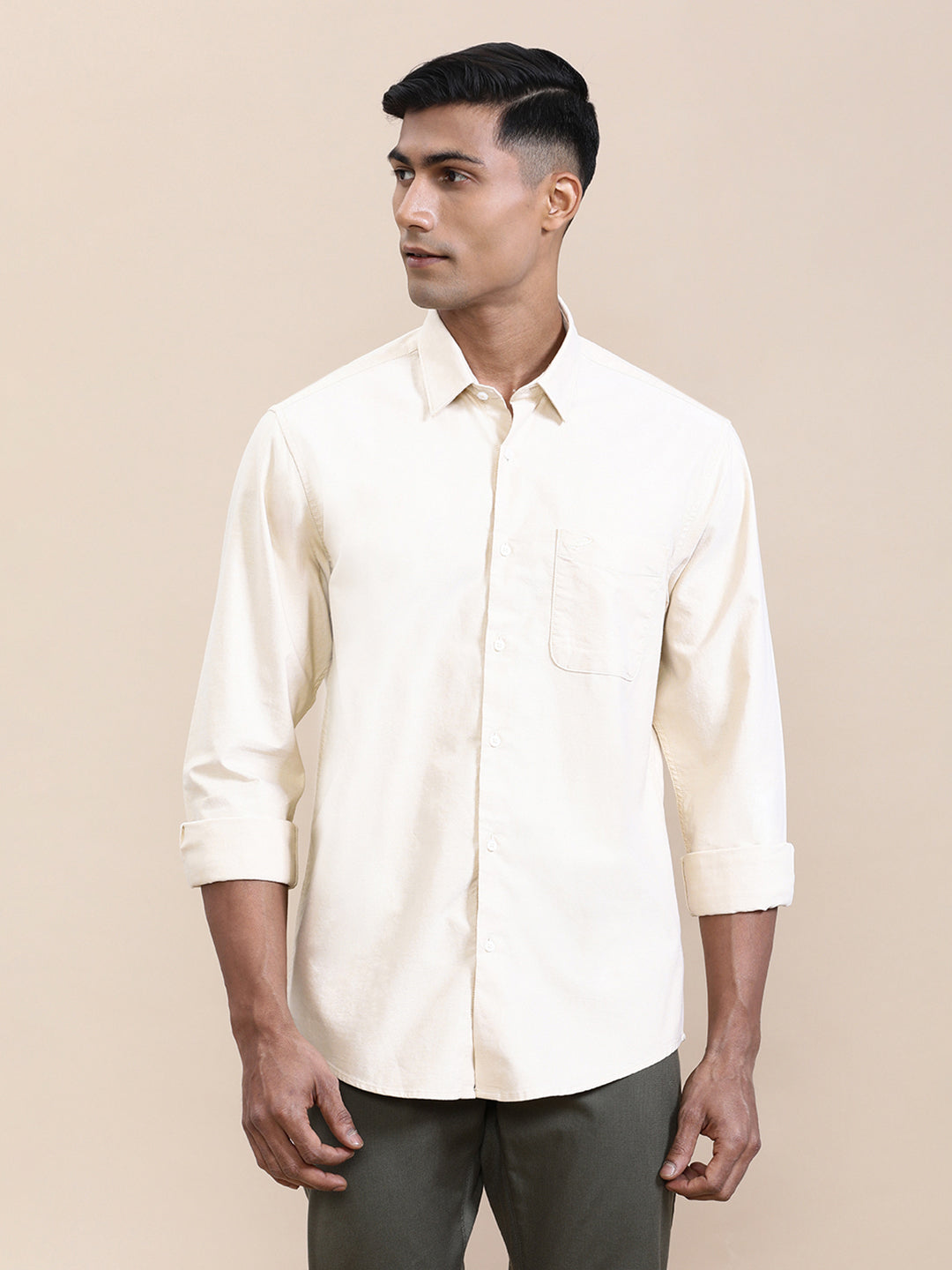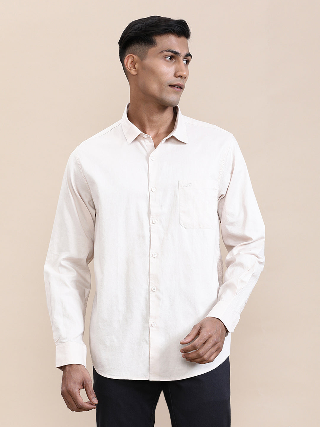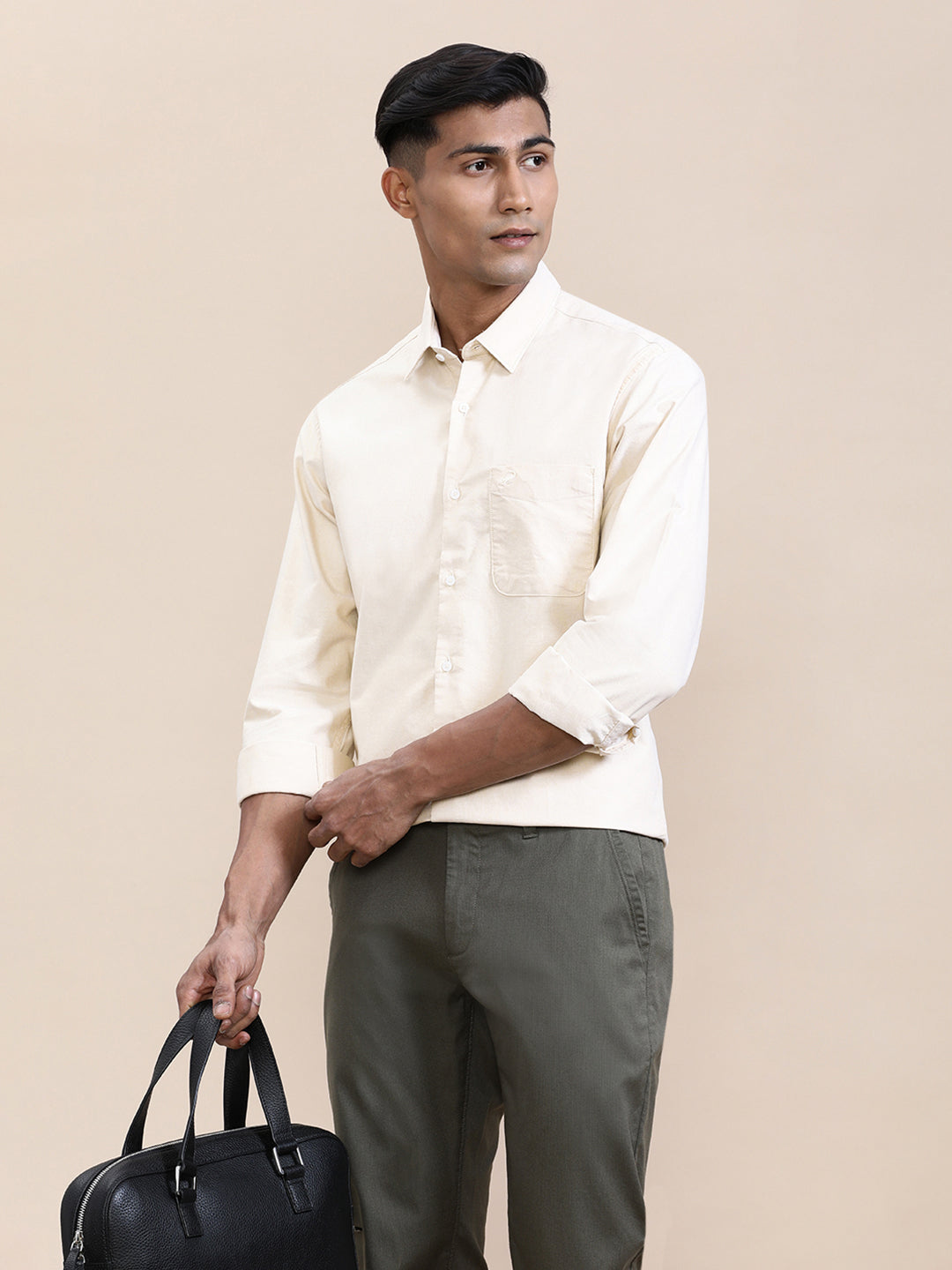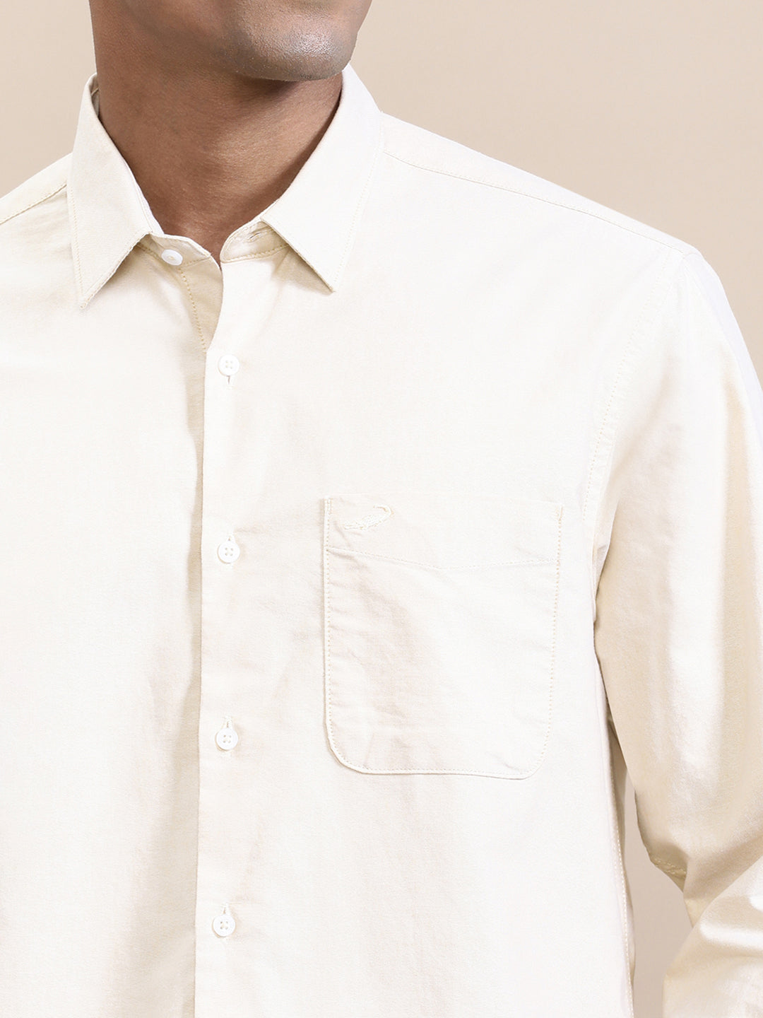 Textured Cozy Feel Cotton Comfort Fit Beige Shirts