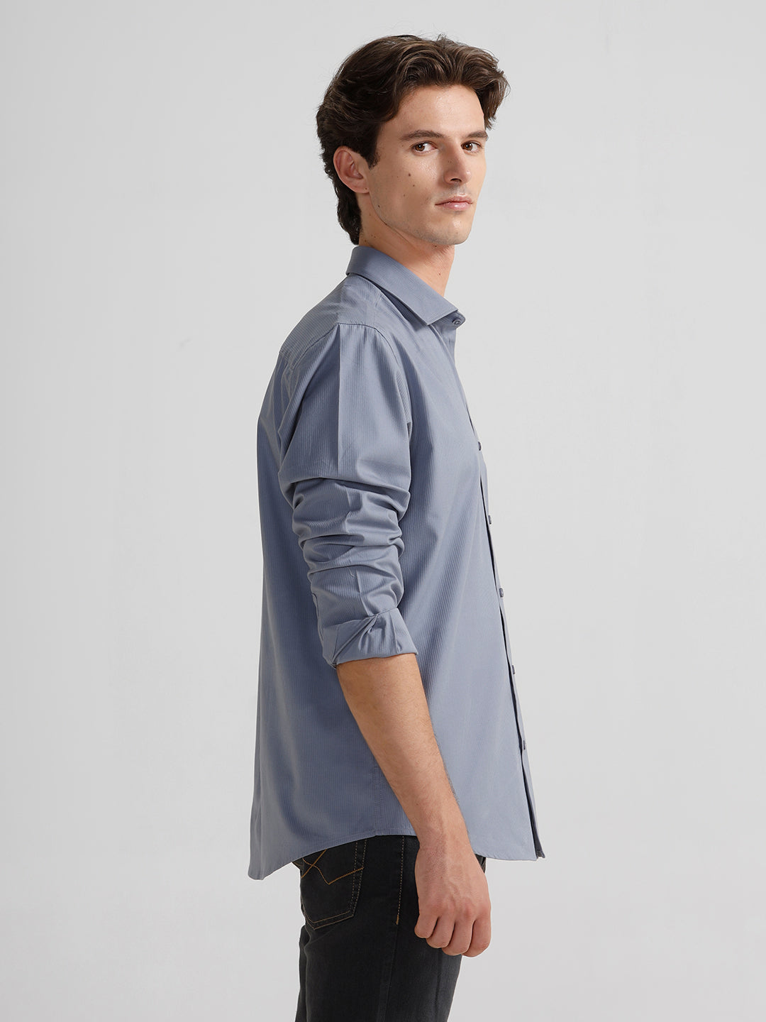 Grey Diamond Texture Fabric Cotton Comfort Fit Shirts