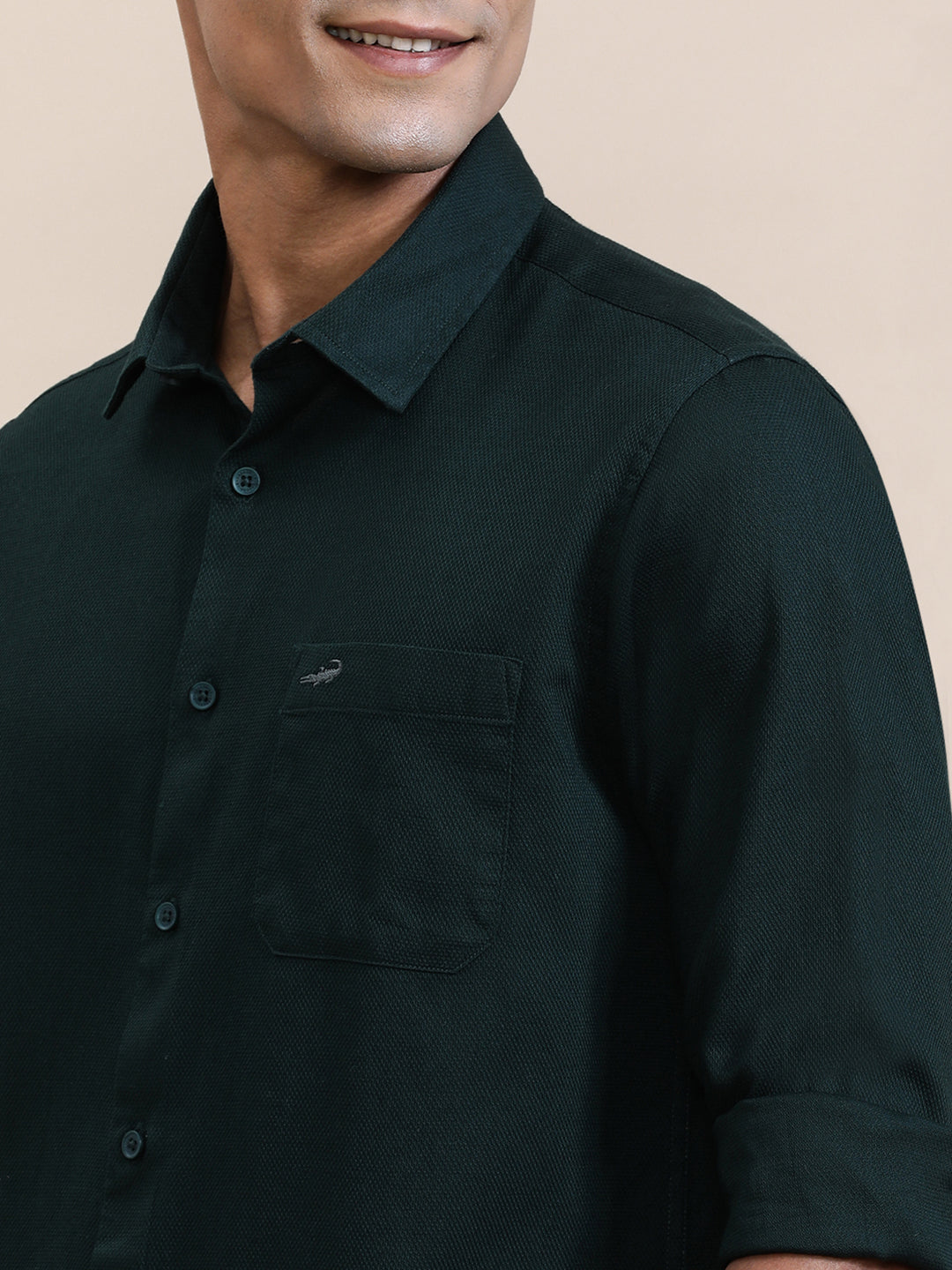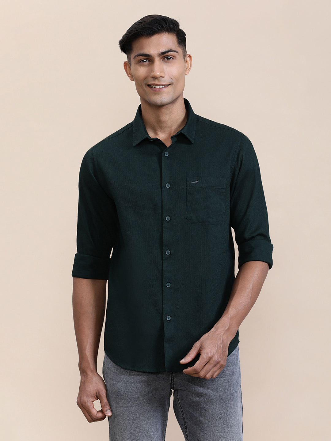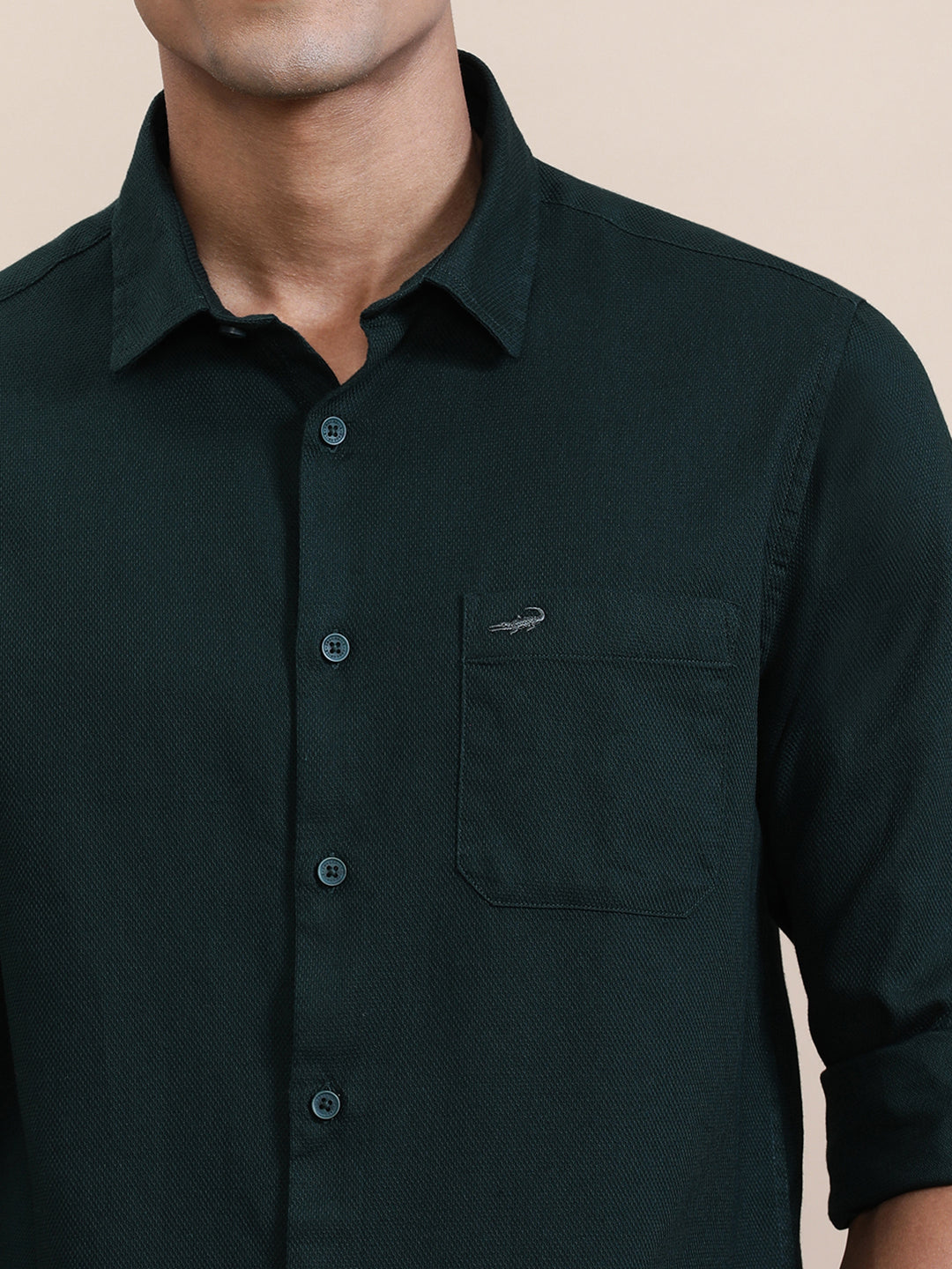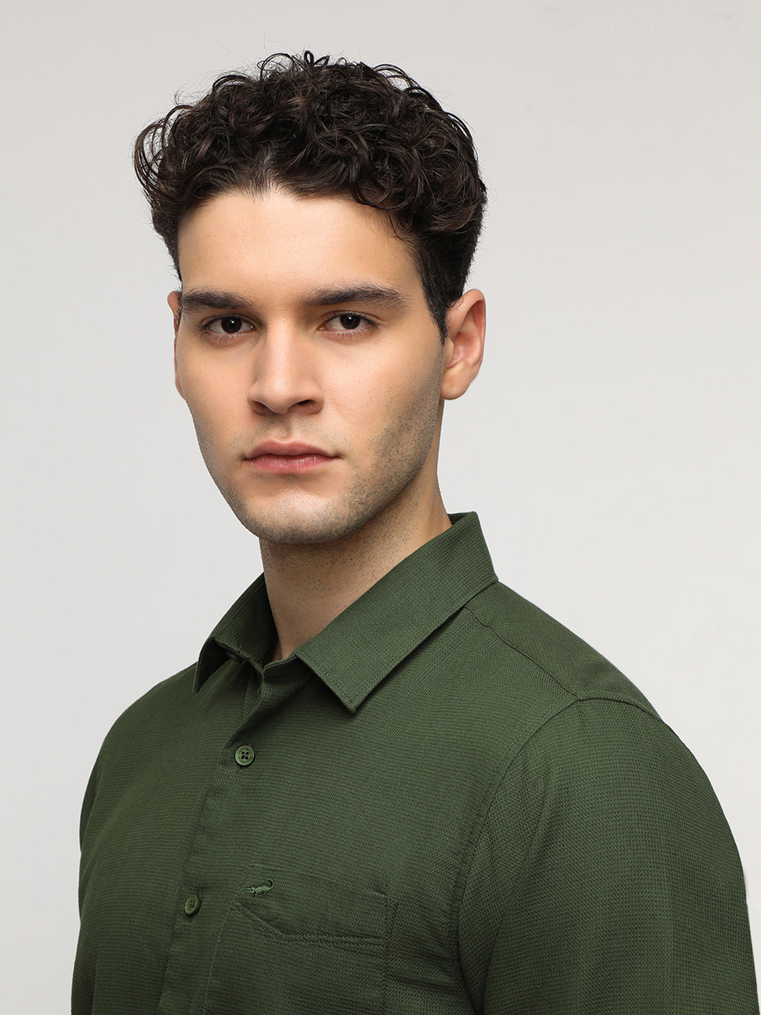 Green Textured Cozy Feel Cotton Comfort Fit Shirts