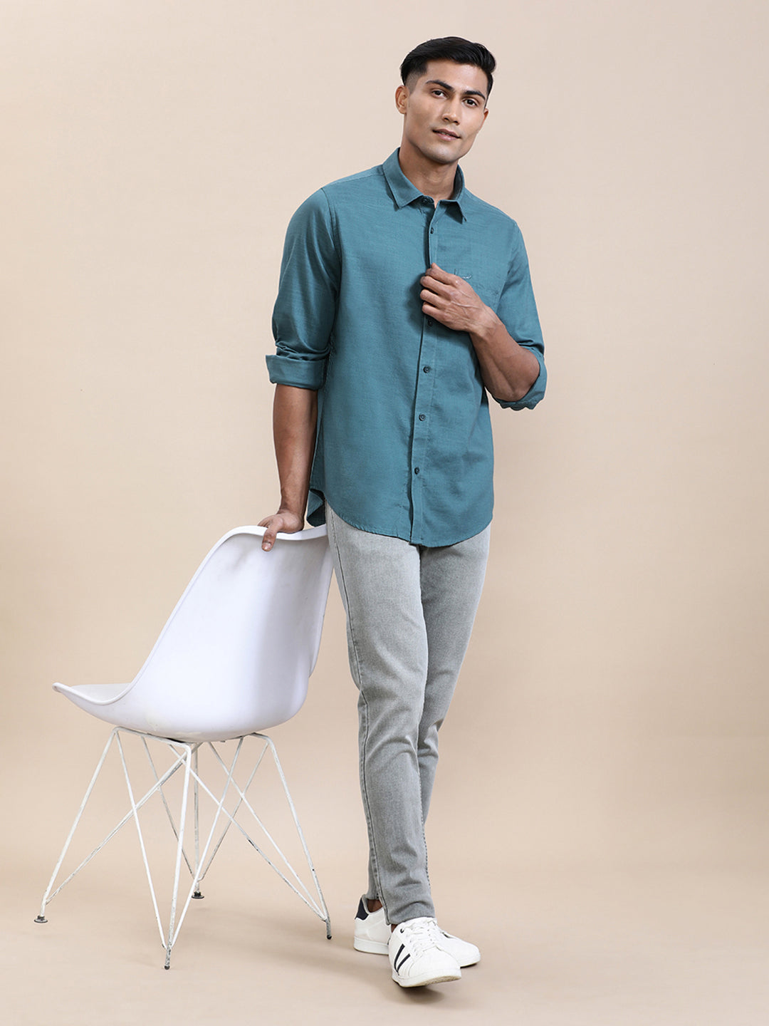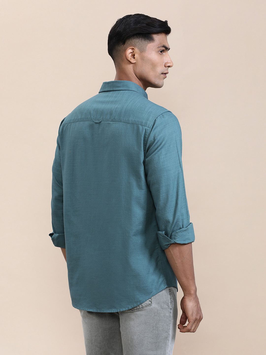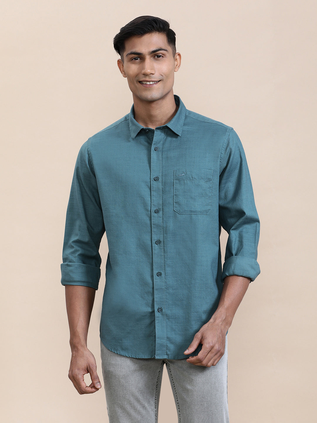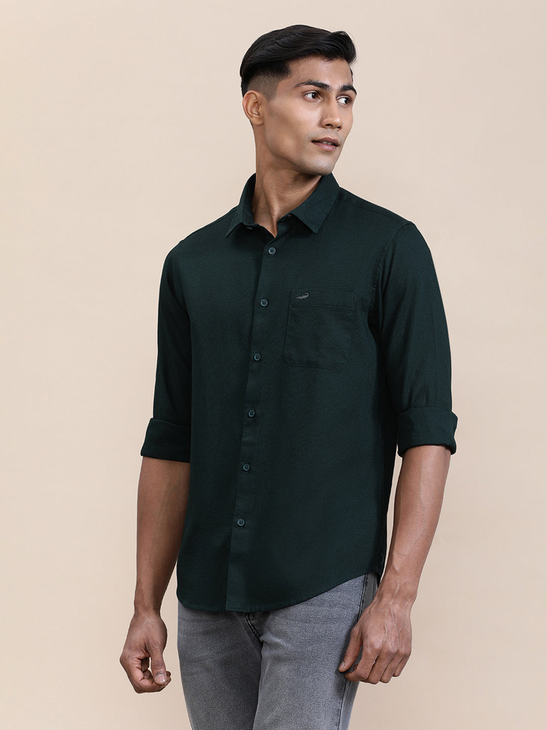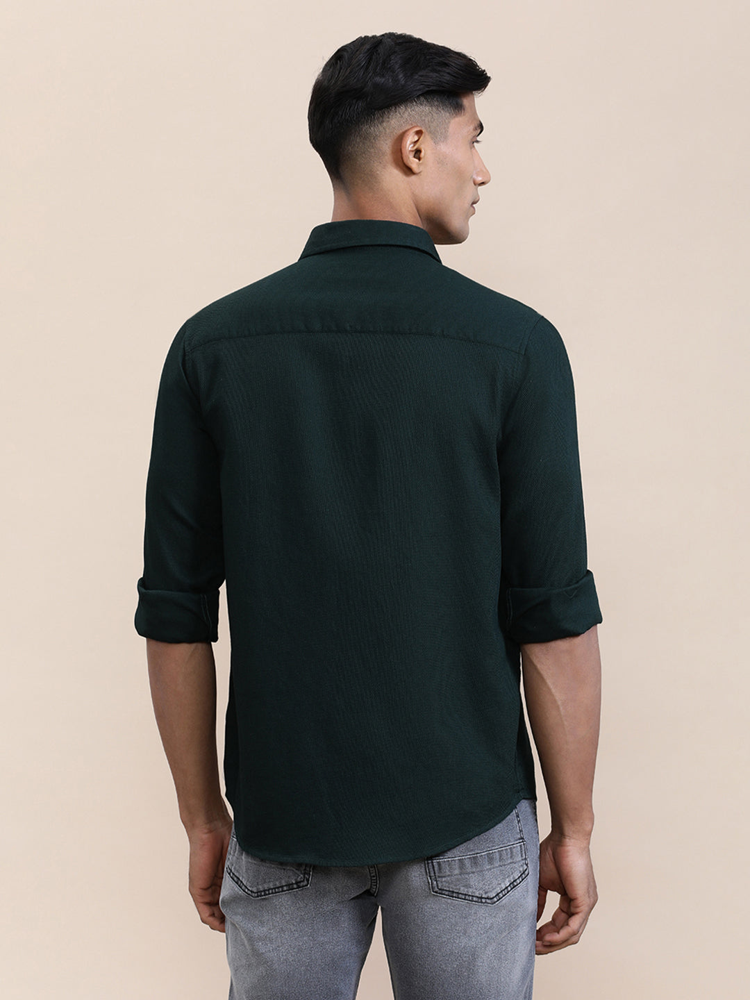 Green Textured Cozy Feel Cotton Comfort Fit Shirts