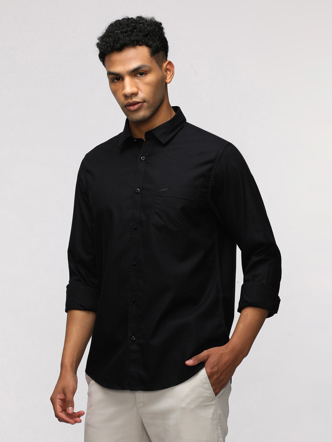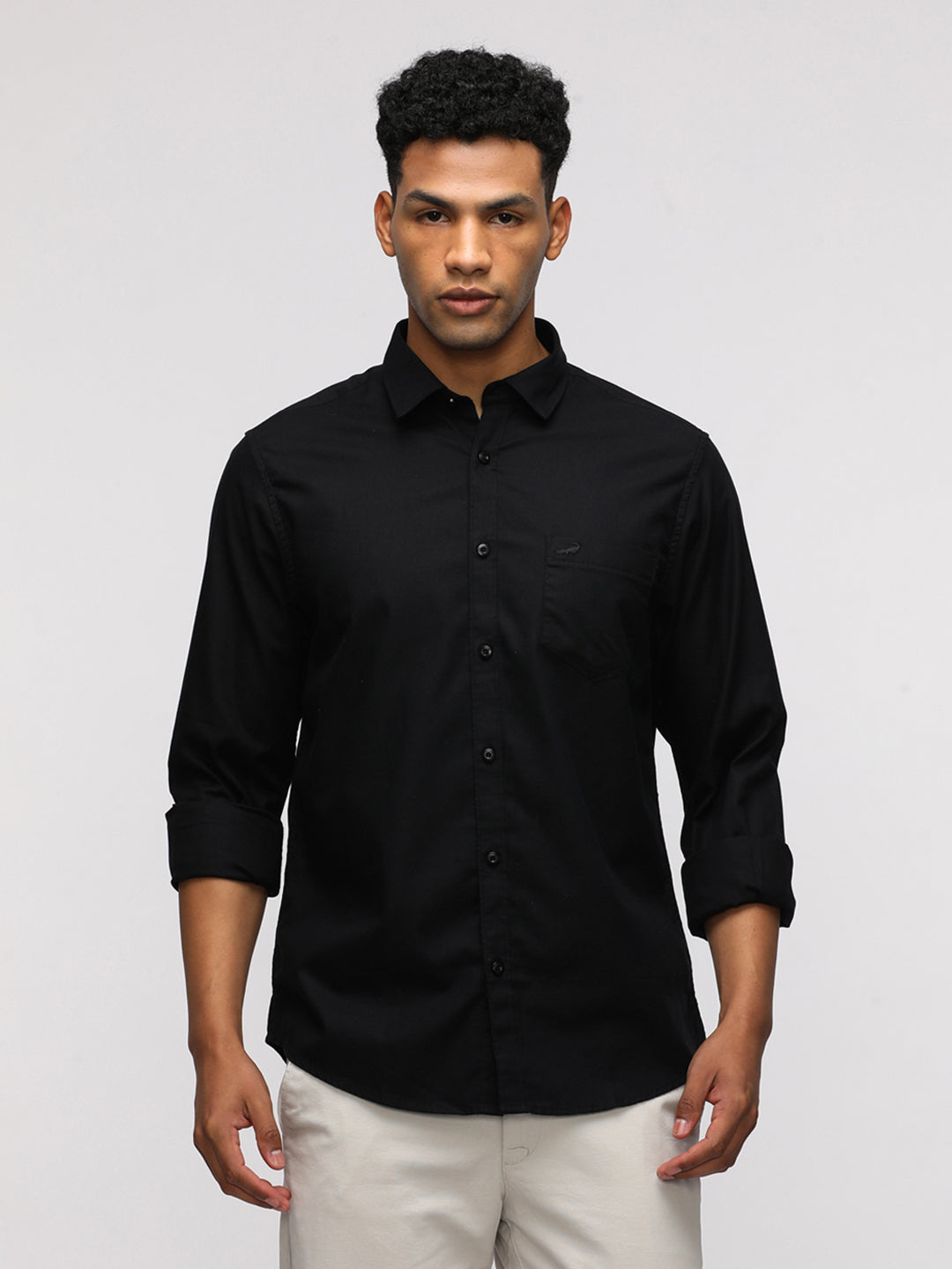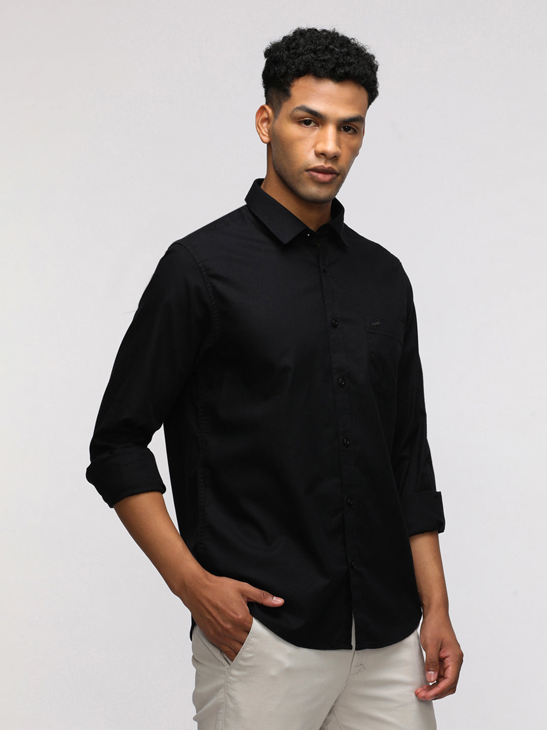 Black Solid Full Sleeve Casual Shirt