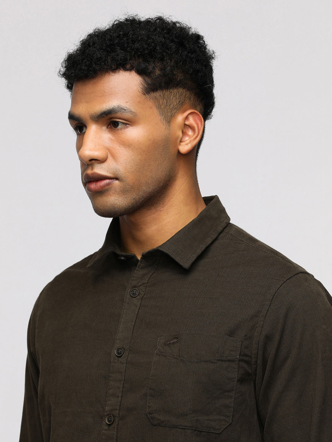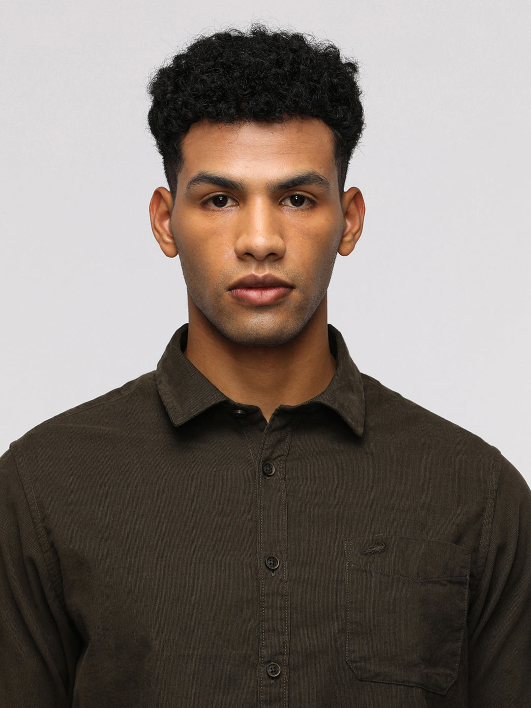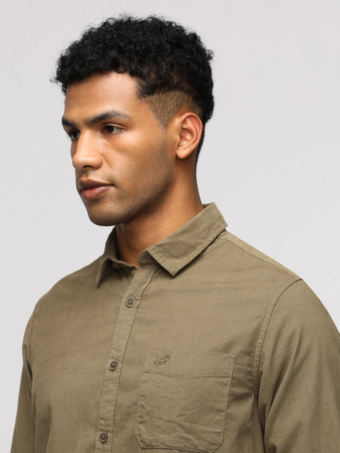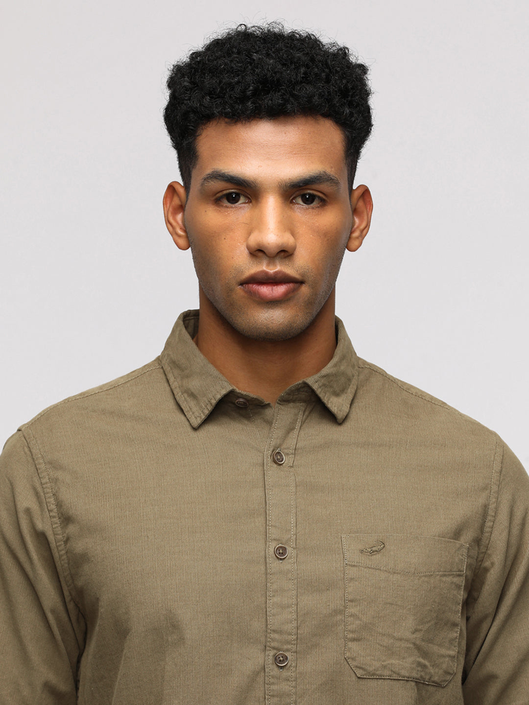 Full Sleeve Sport Olive Shirt in Corduroy for Trendy Style