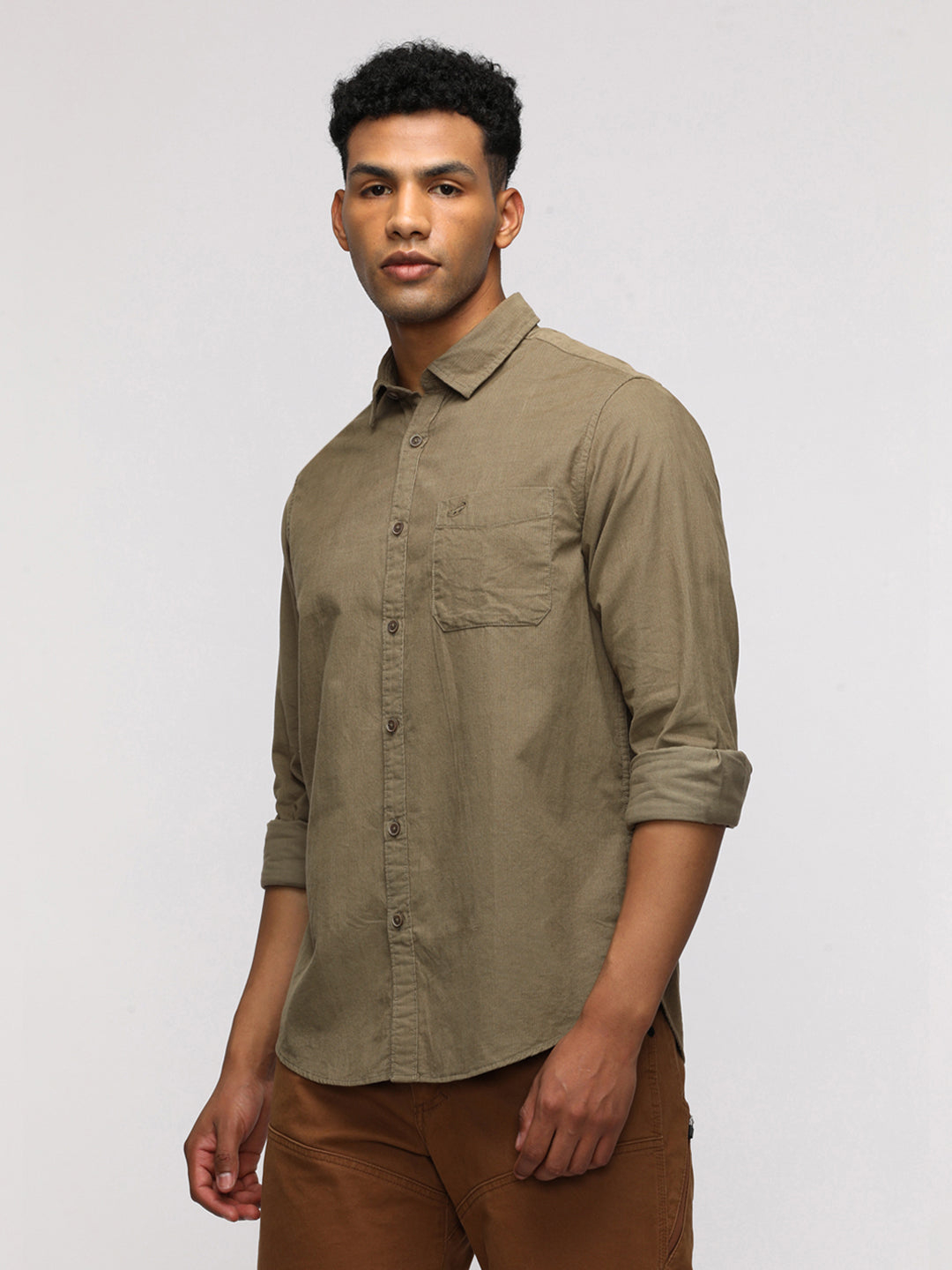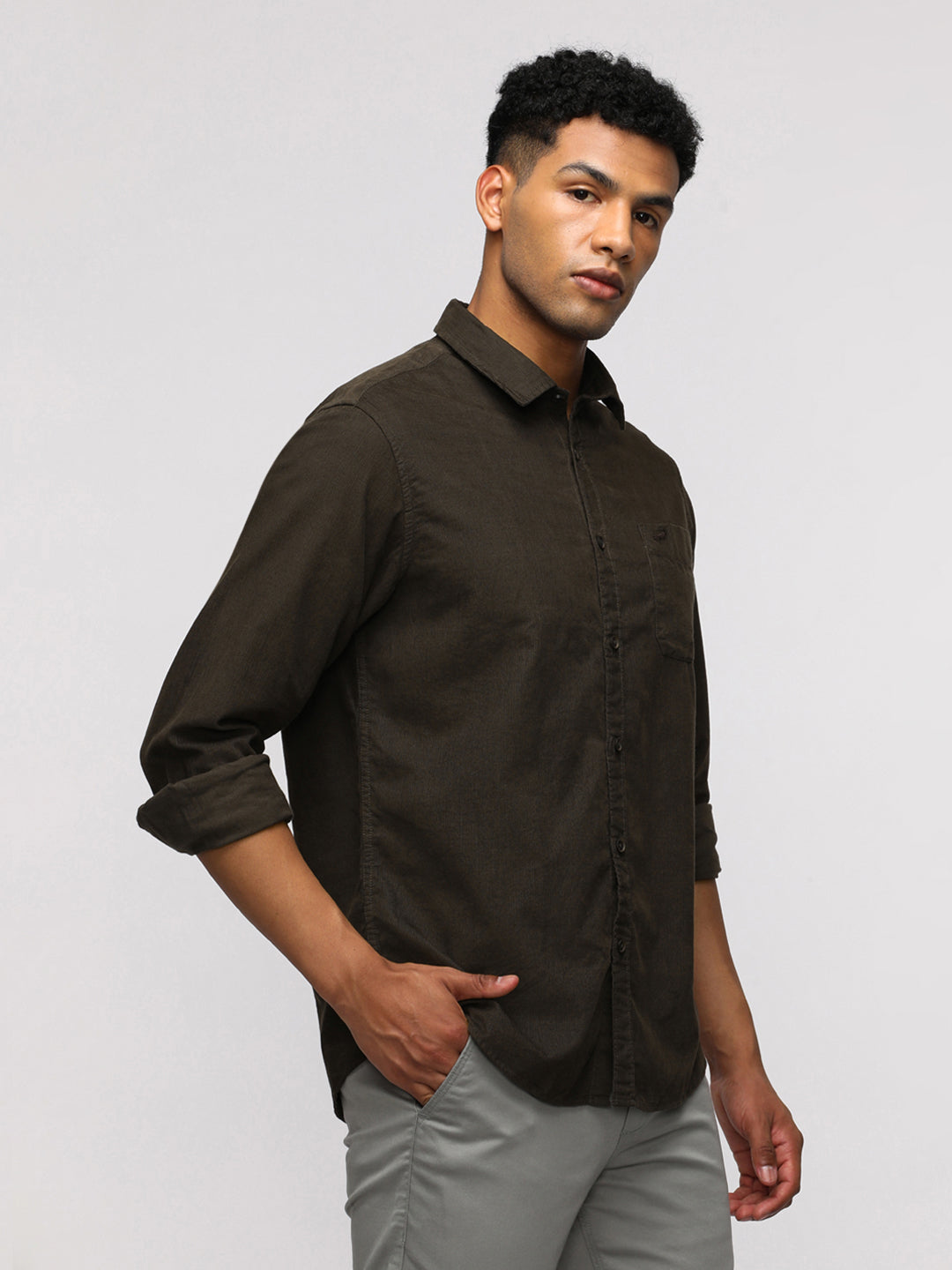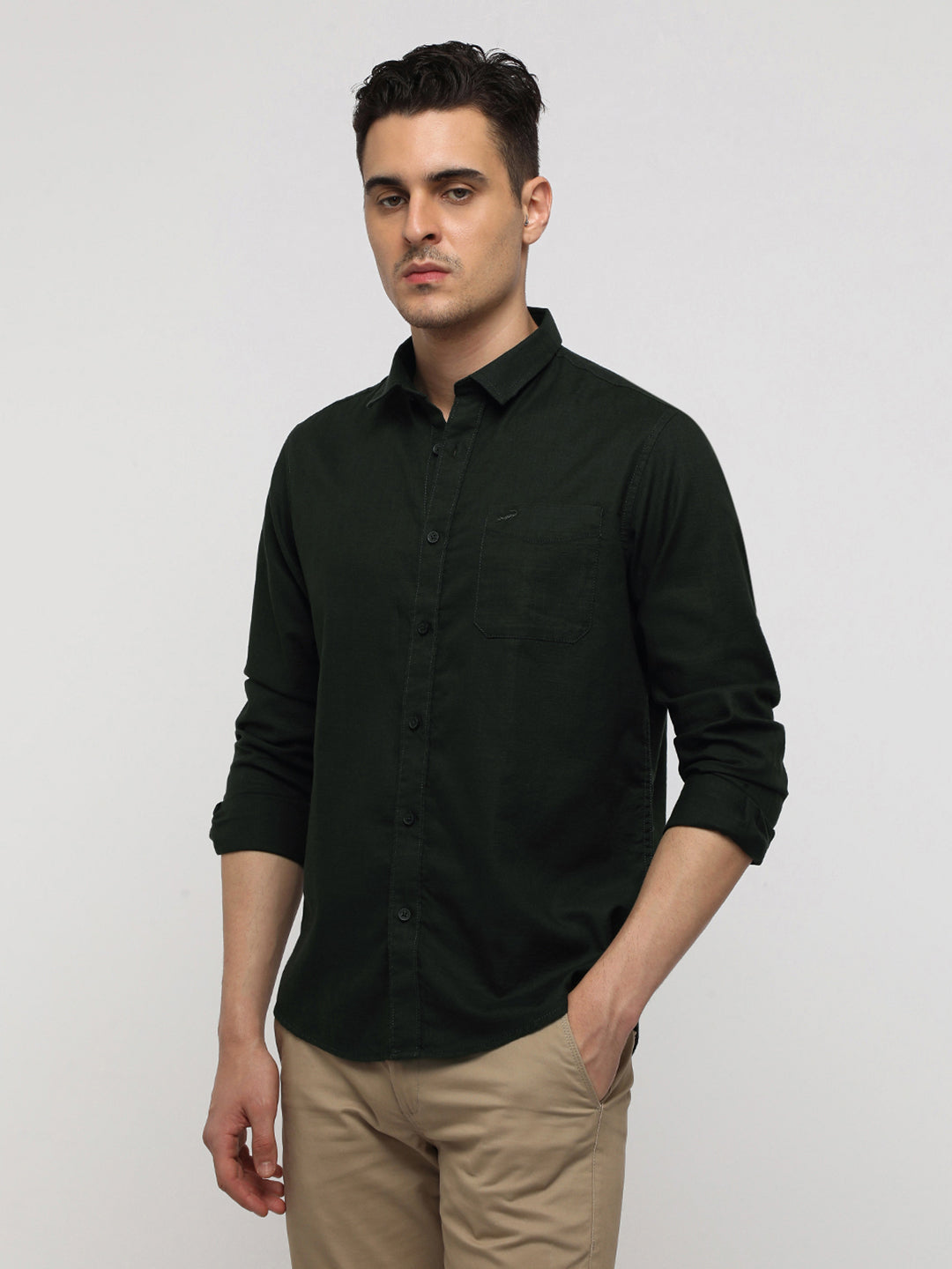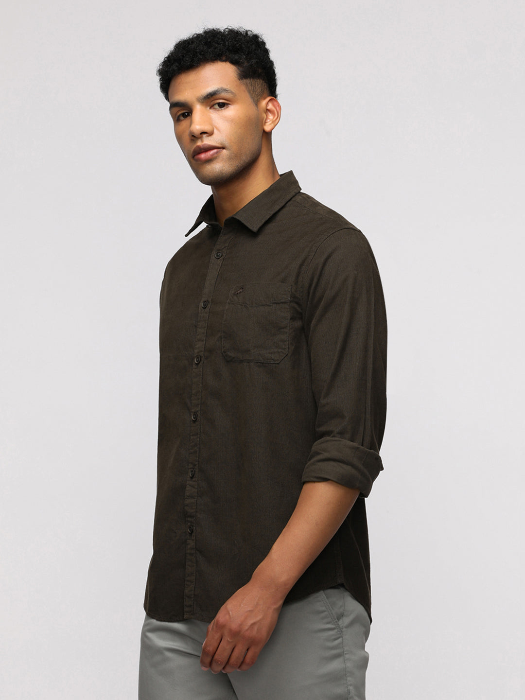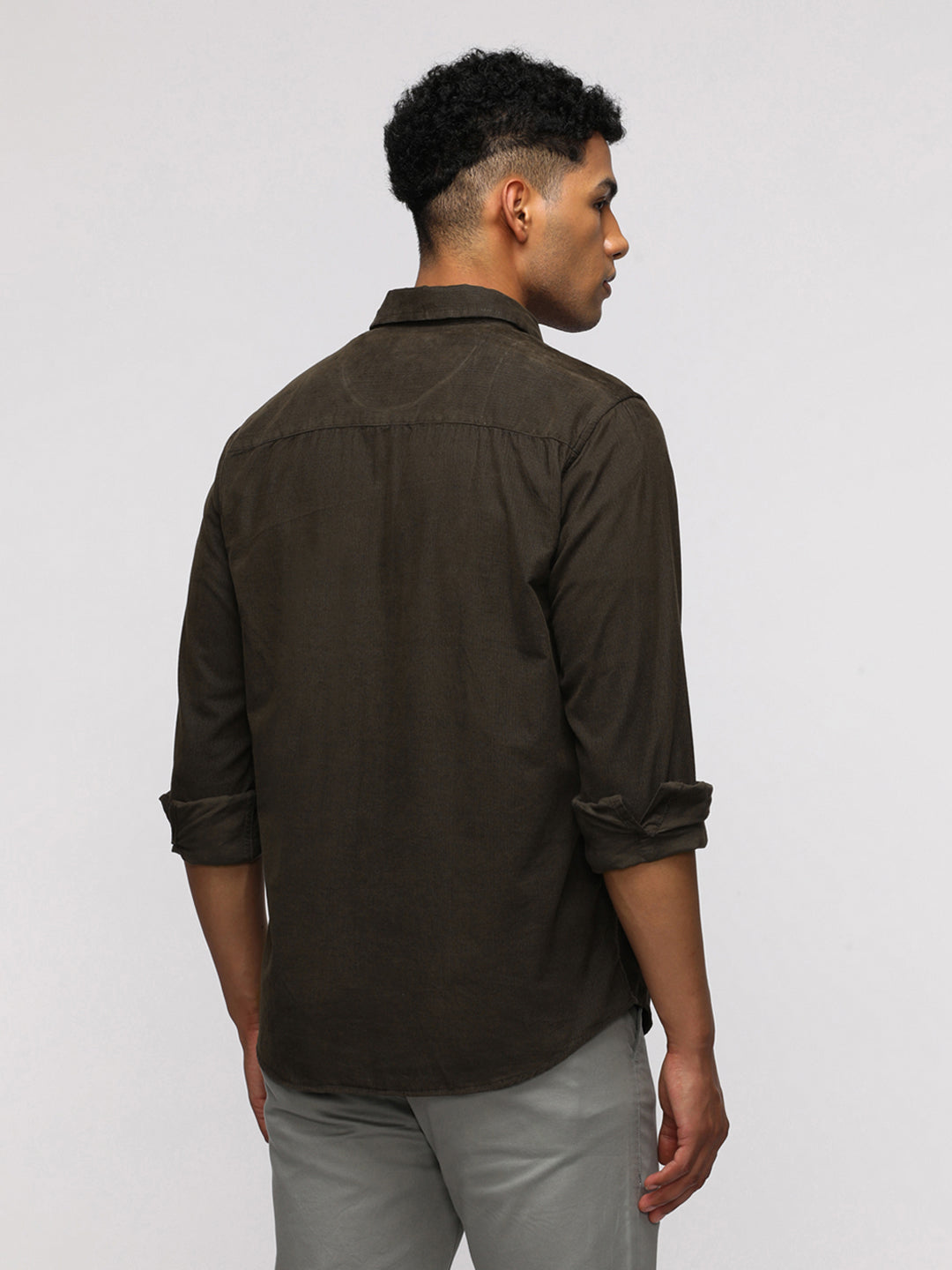 Full Sleeve Sport Olive Shirt in Corduroy for Trendy Style