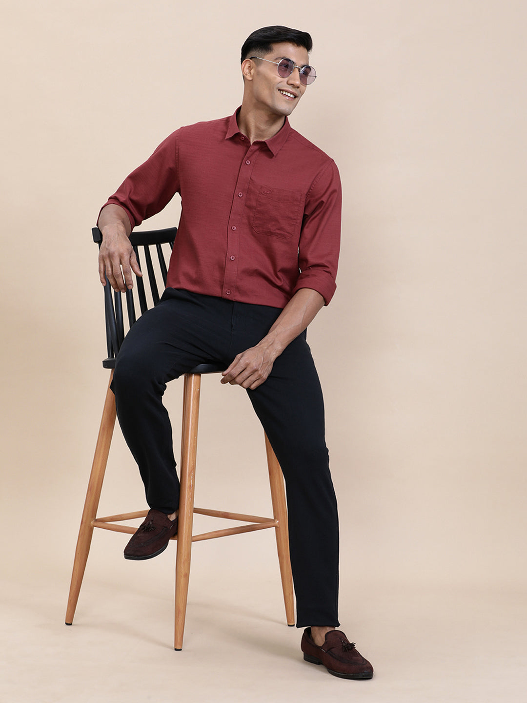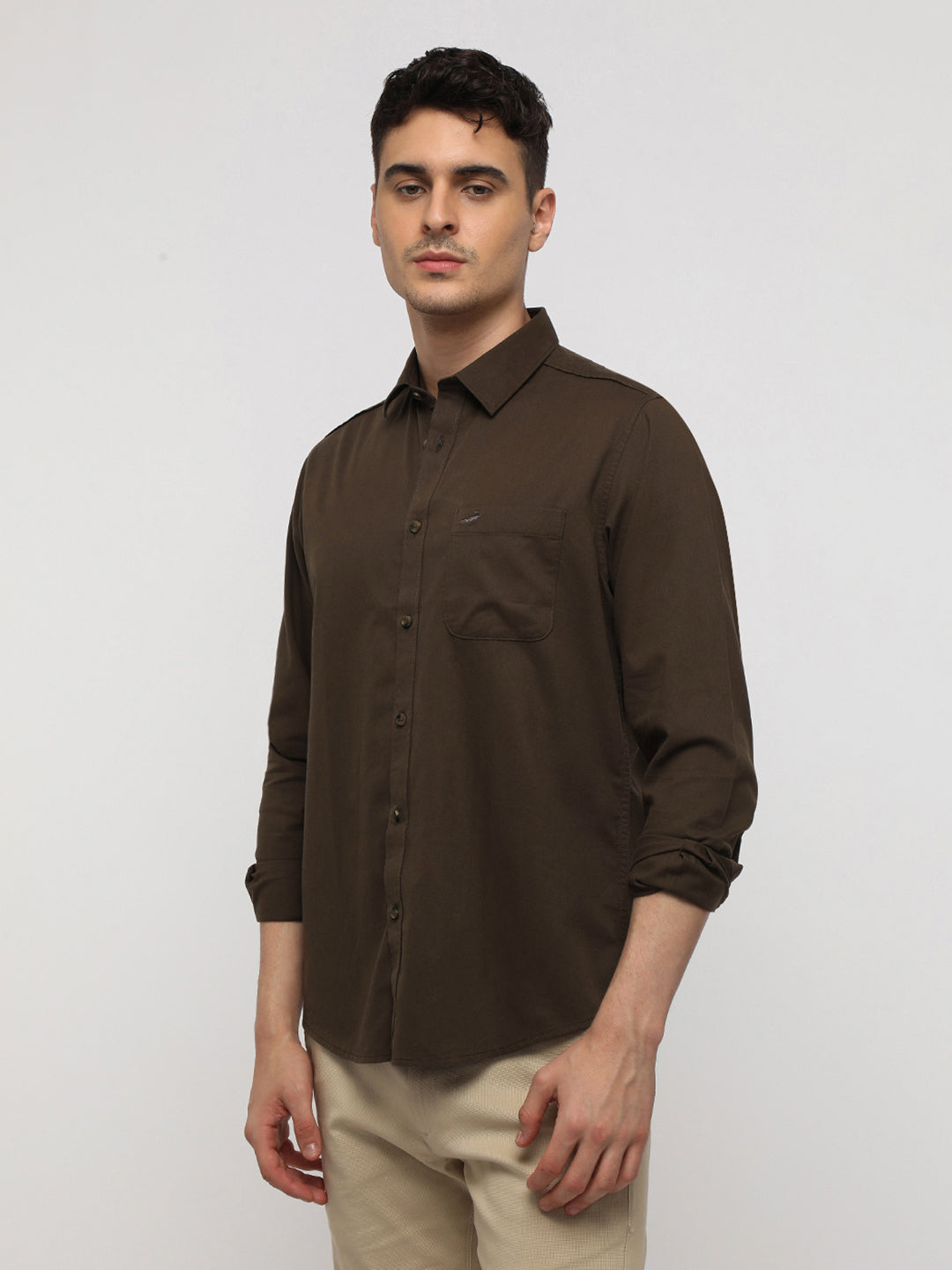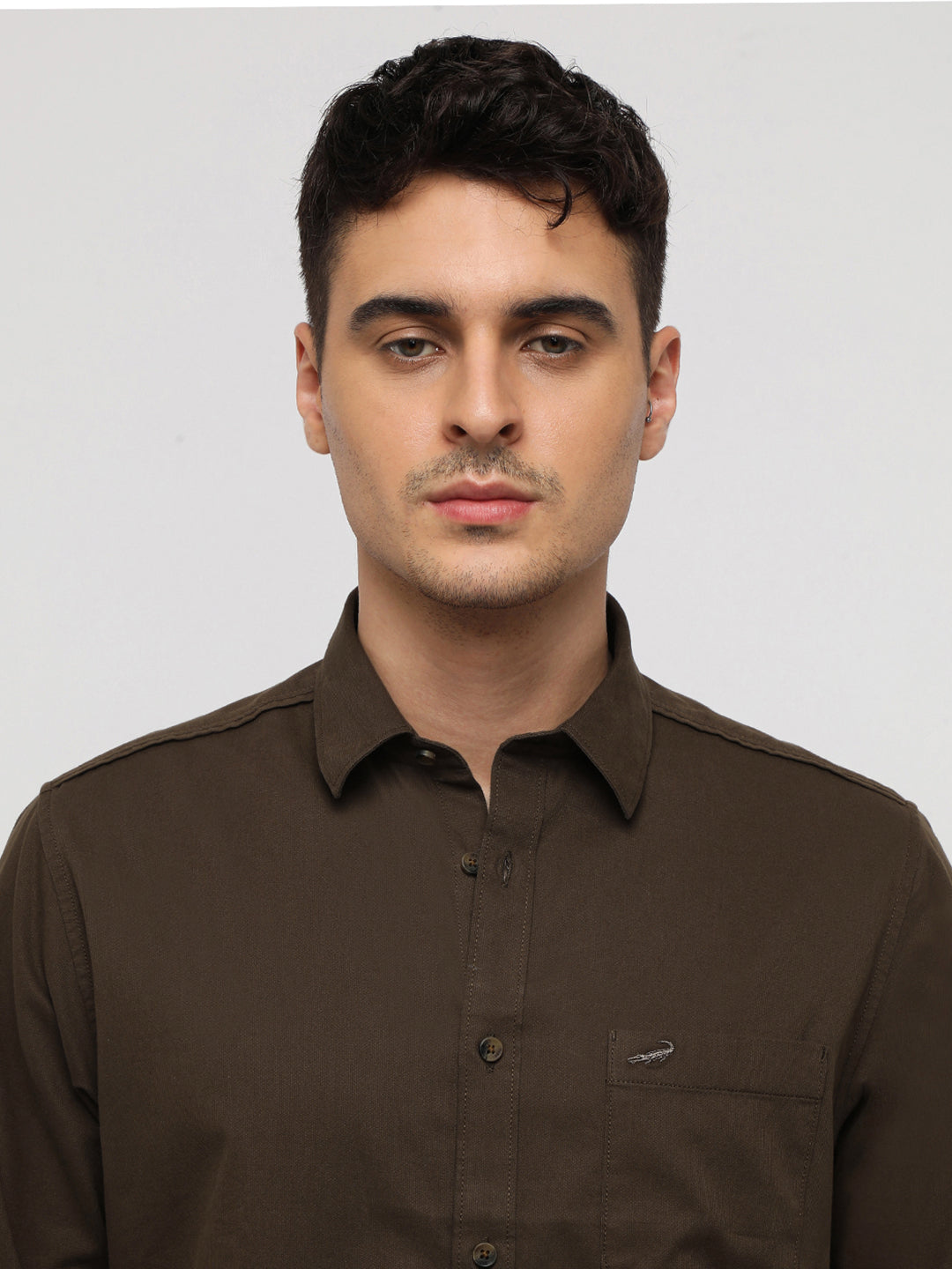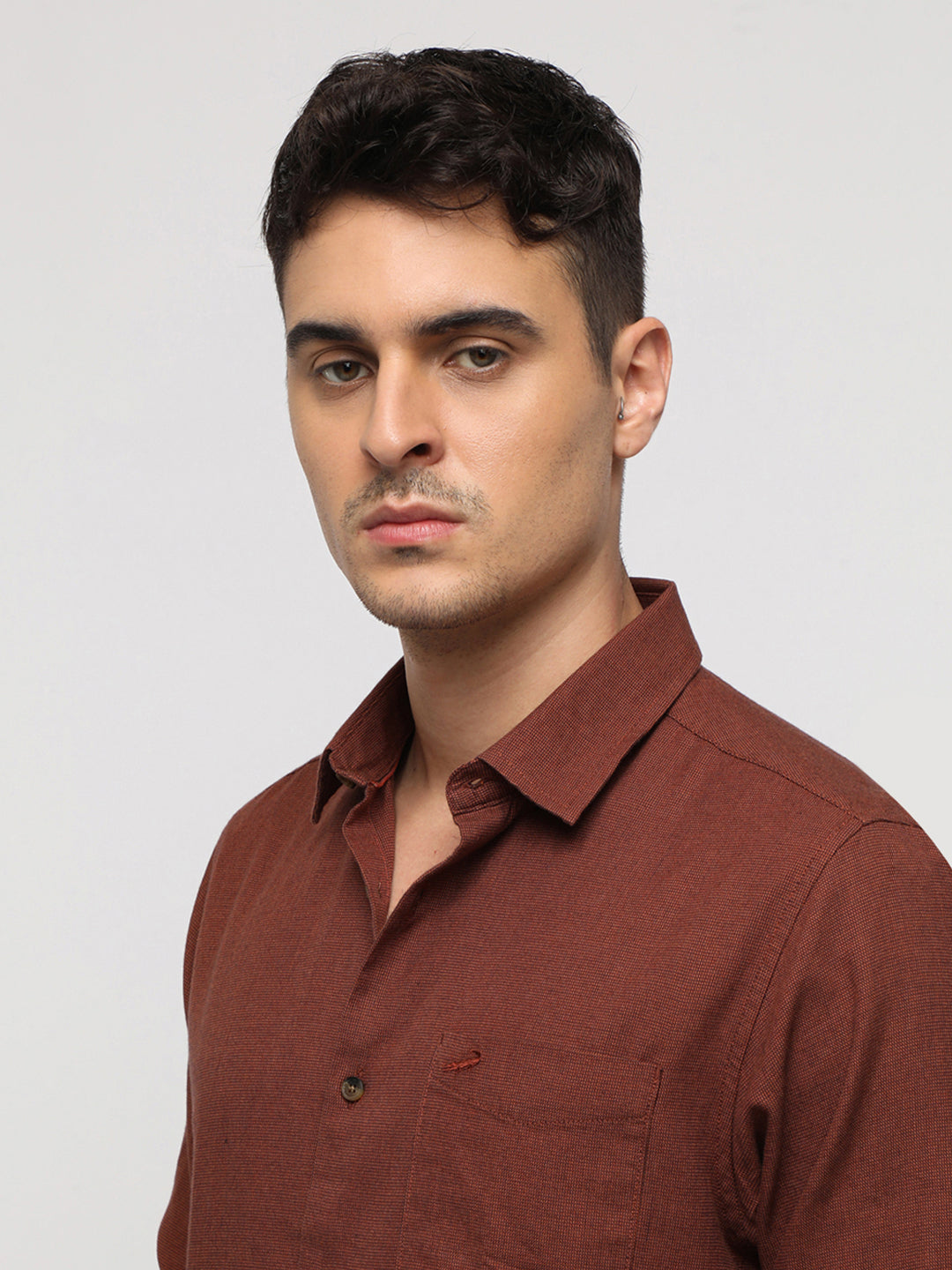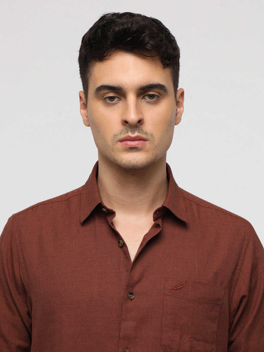 Brown Textured Cozy Feel Cotton Comfort Fit Shirts