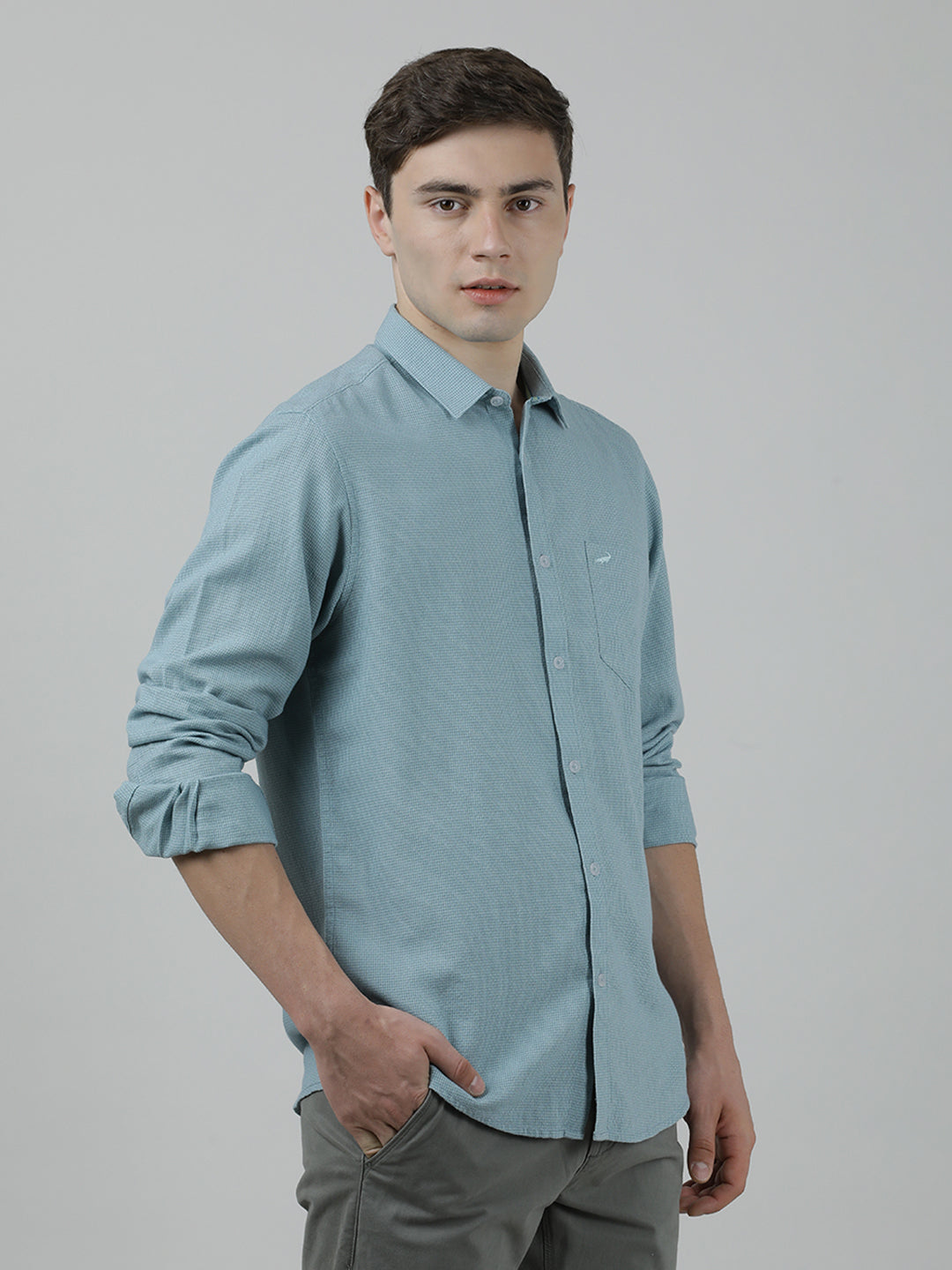 Teal Green Solid Full Sleeve 100% Cotton Shirt