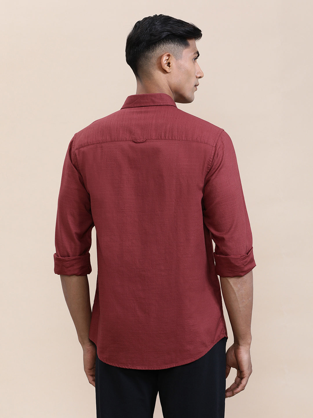 Full Sleeve Sport Red Shirt in Corduroy for Bold Style