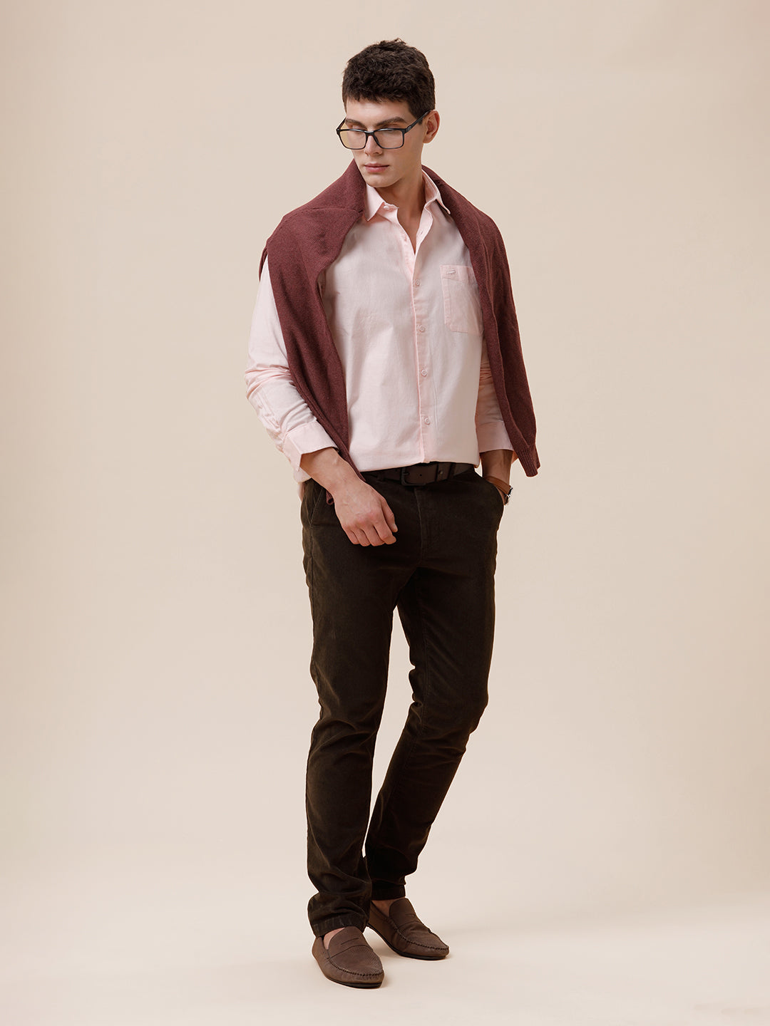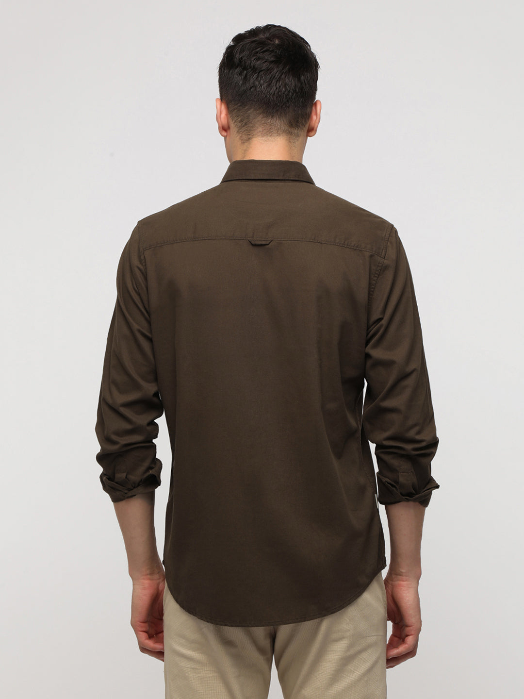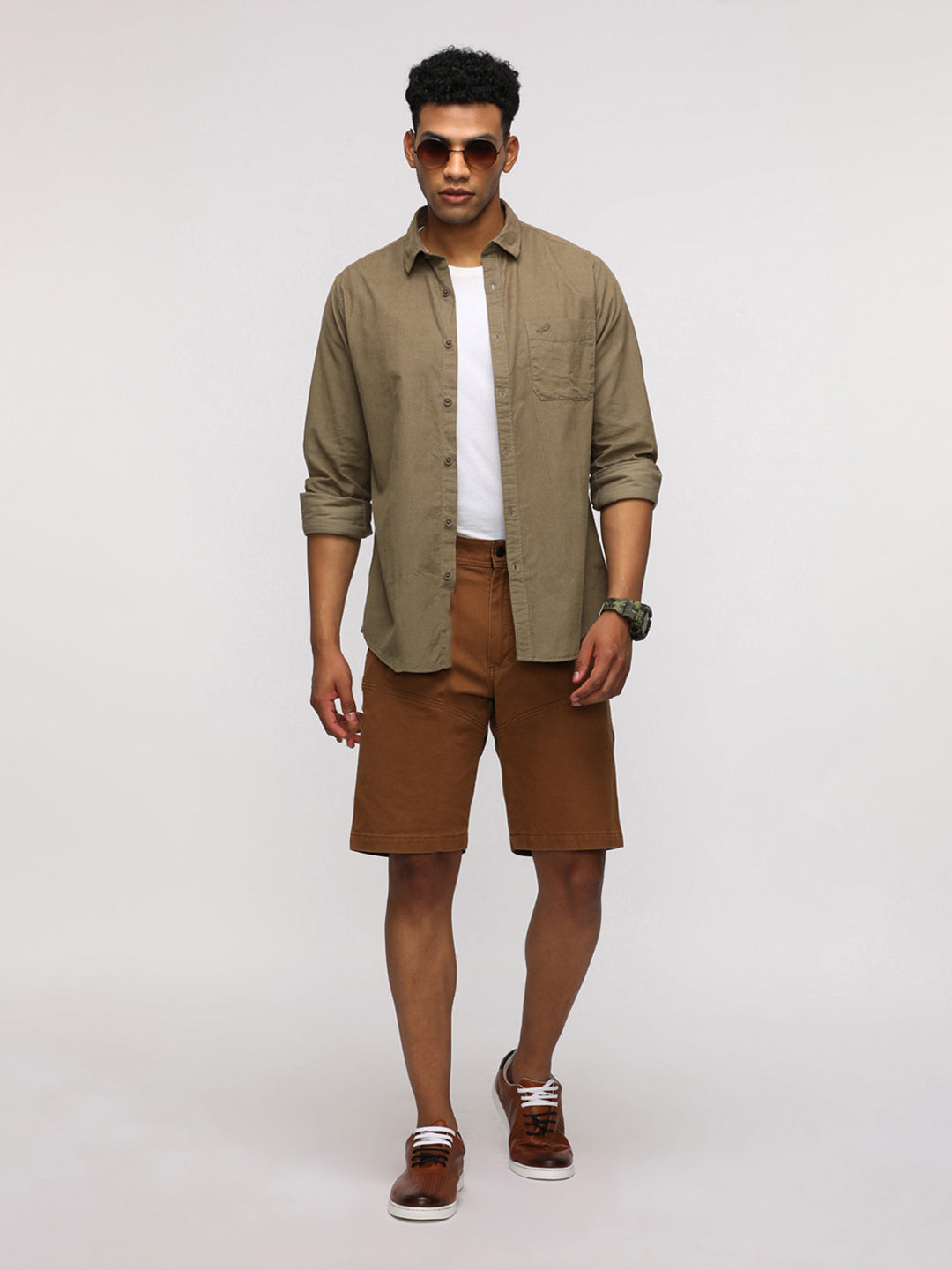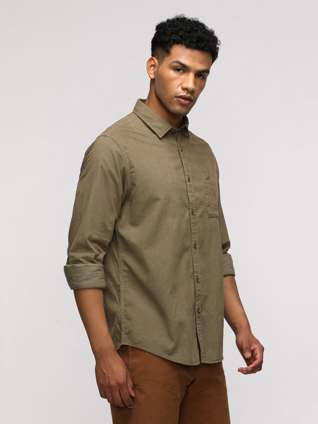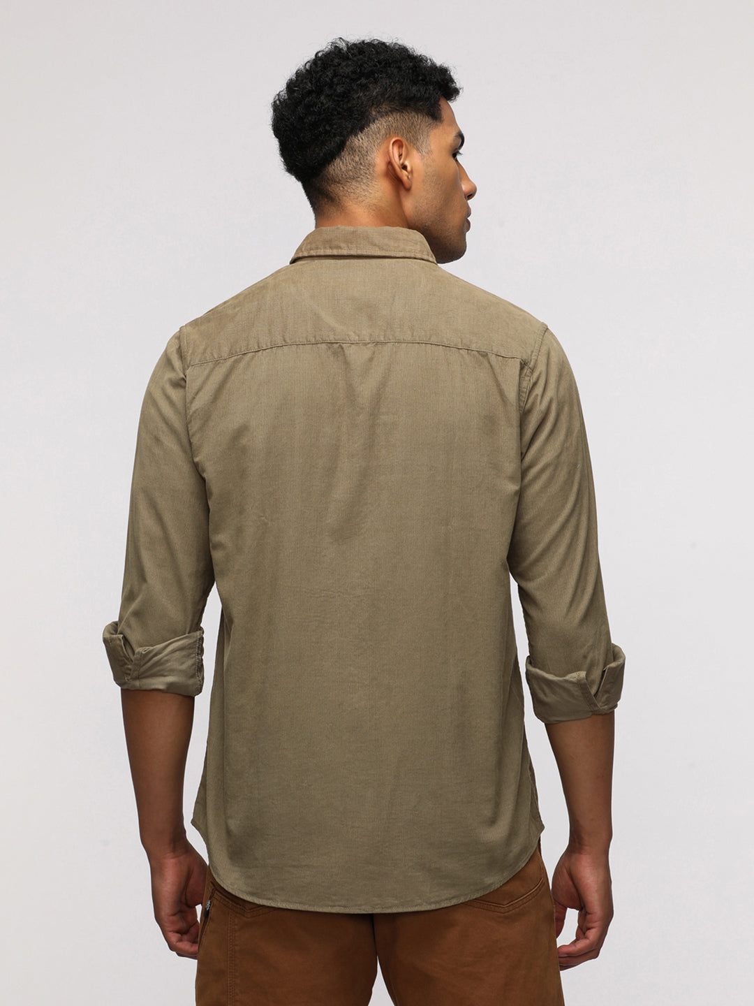 Full Sleeve Sport Khaki Shirt in Corduroy for Casual Elegance