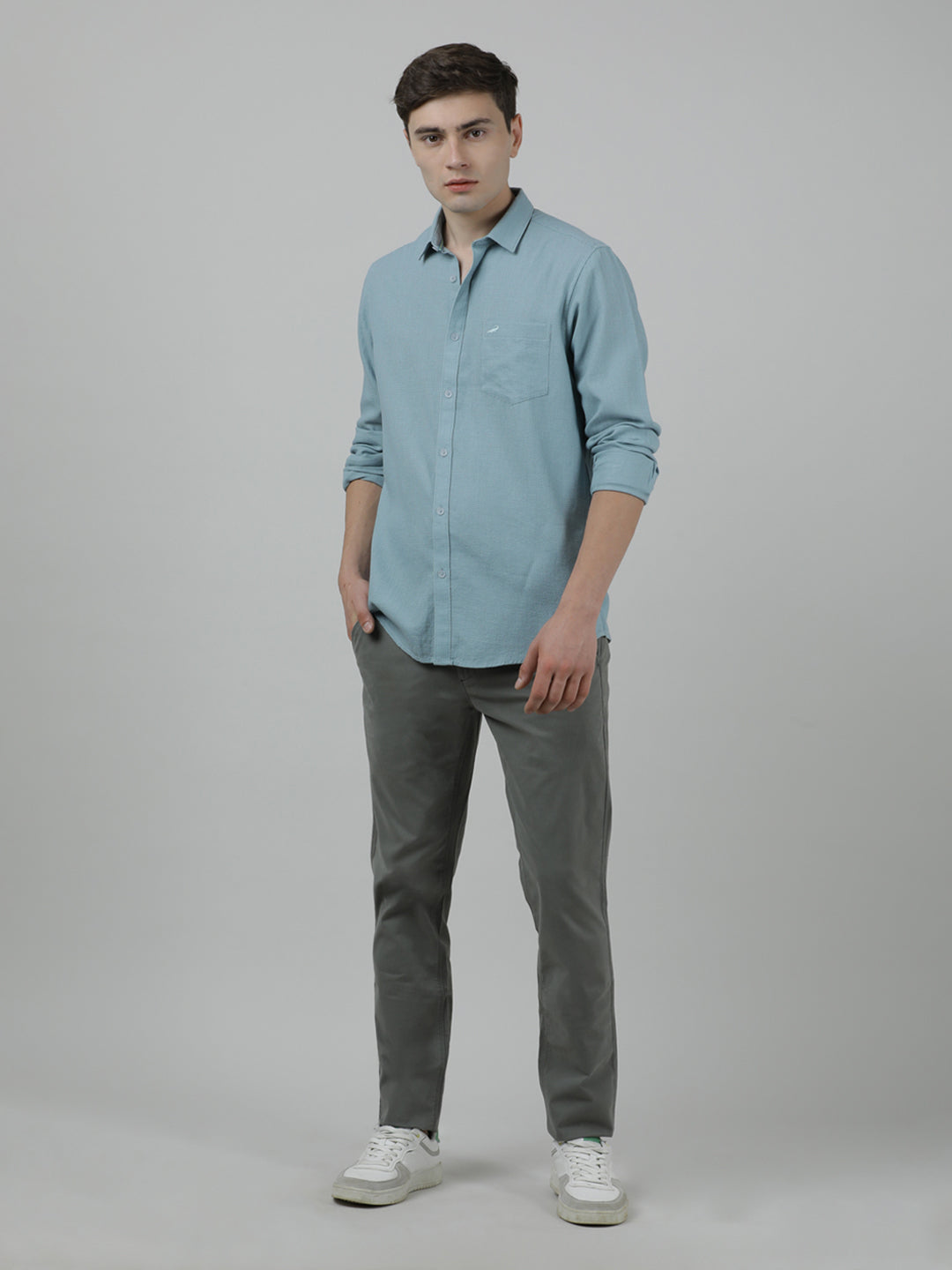 Light Grey Solid Relaxed Fit Casuals Shirts