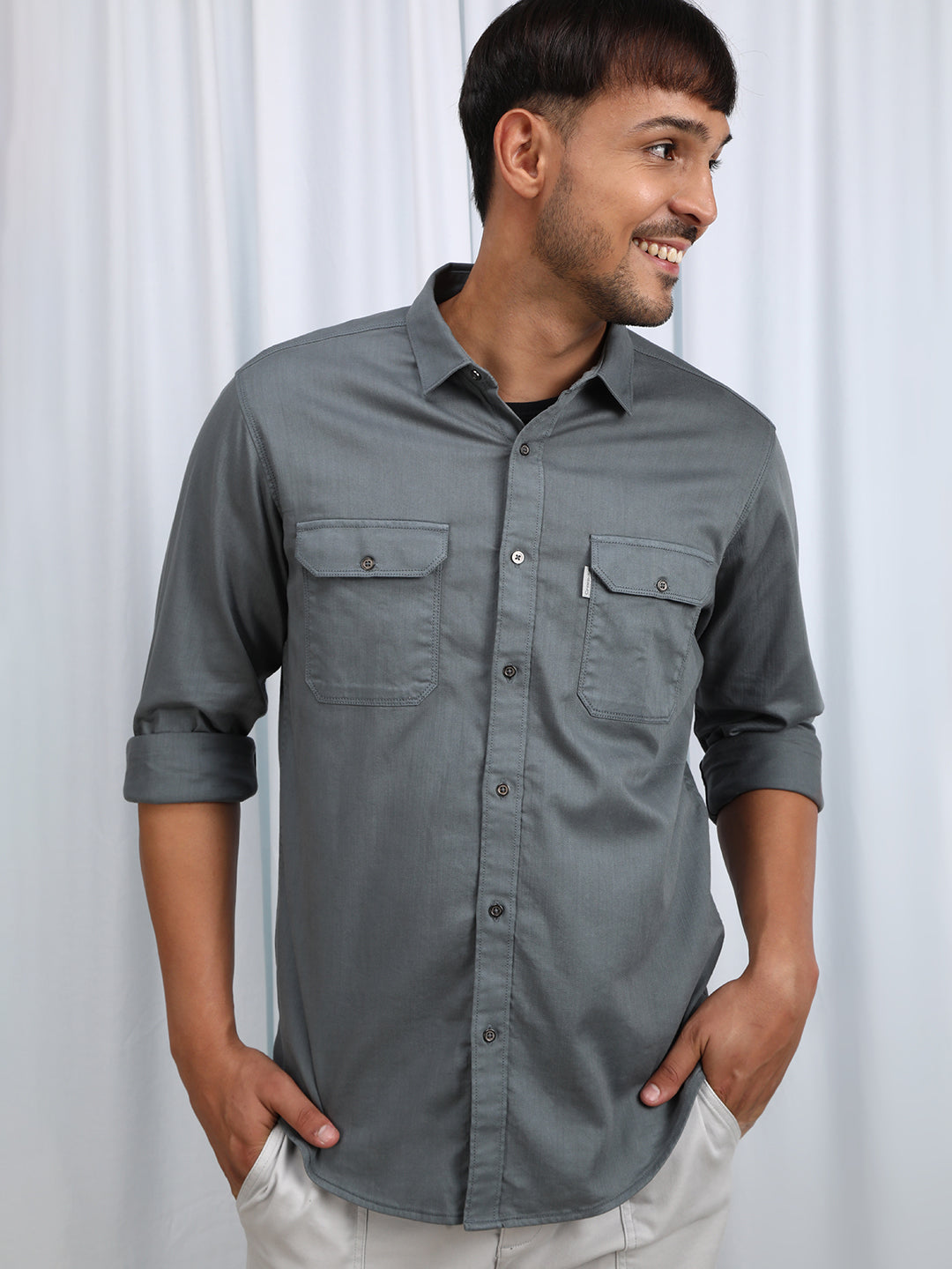 Mercerized Fabric Satin Sheen Comfort Fit Grey Shirts