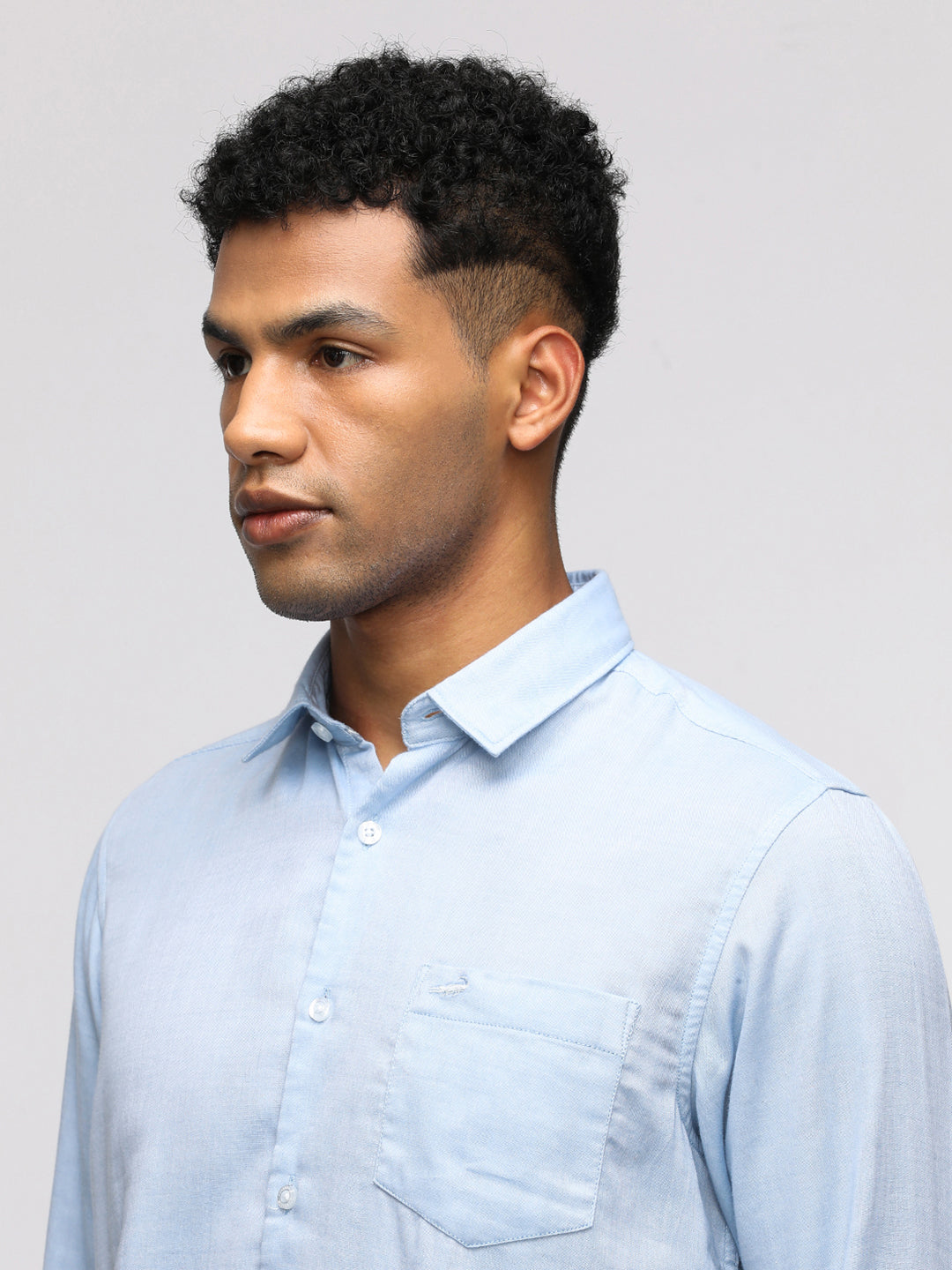 Blue Crinkled Fluid Shirt Relax Fit Relaxed Fit Shirts