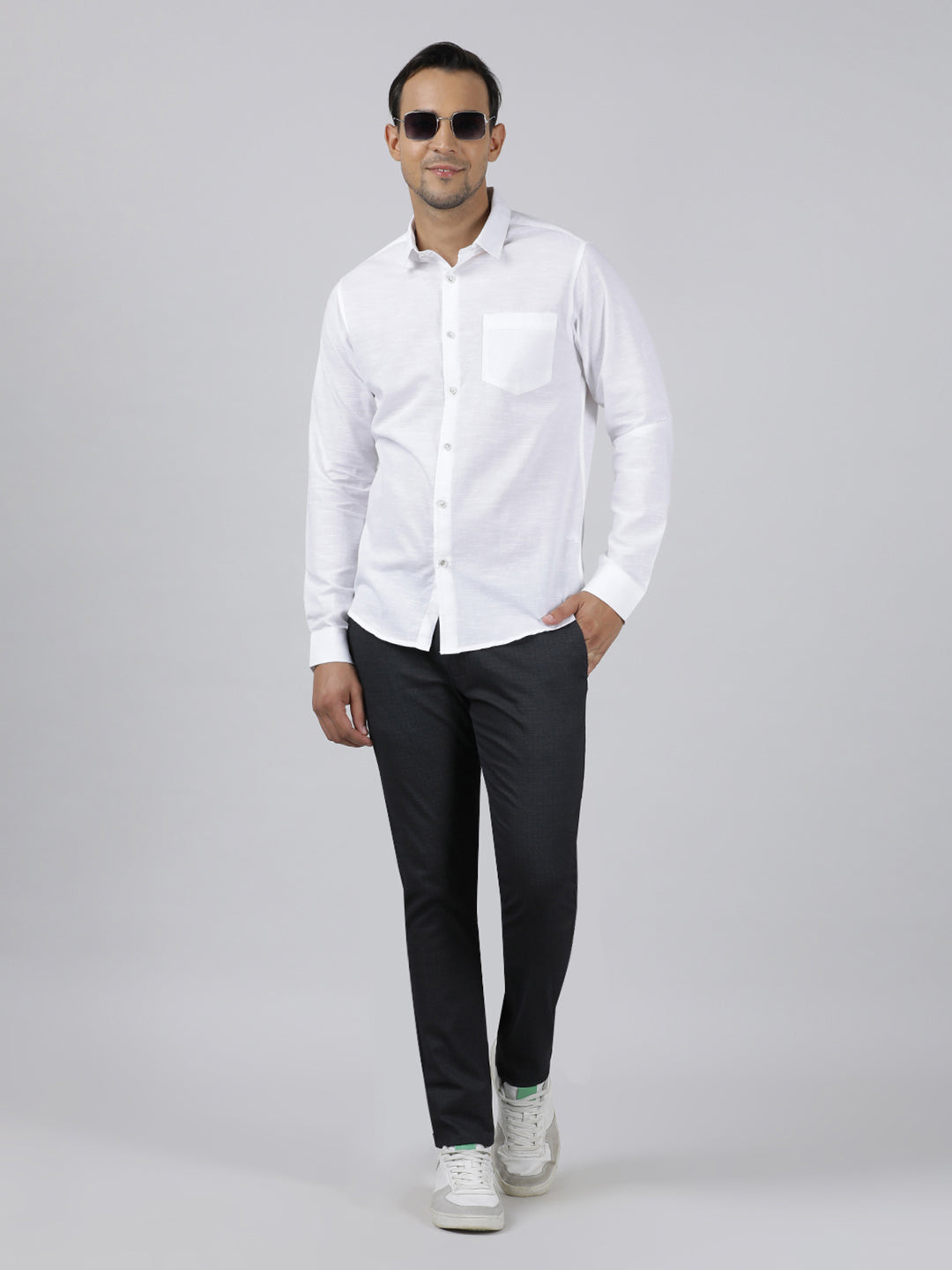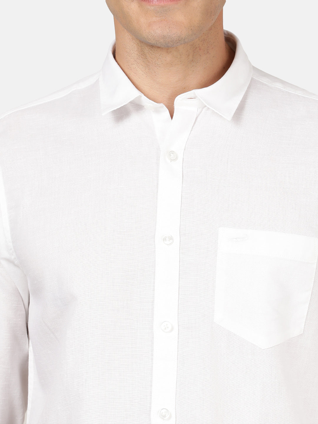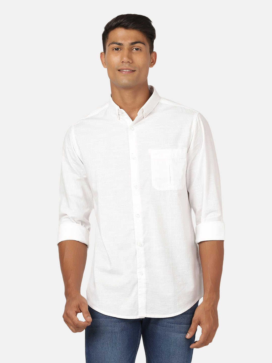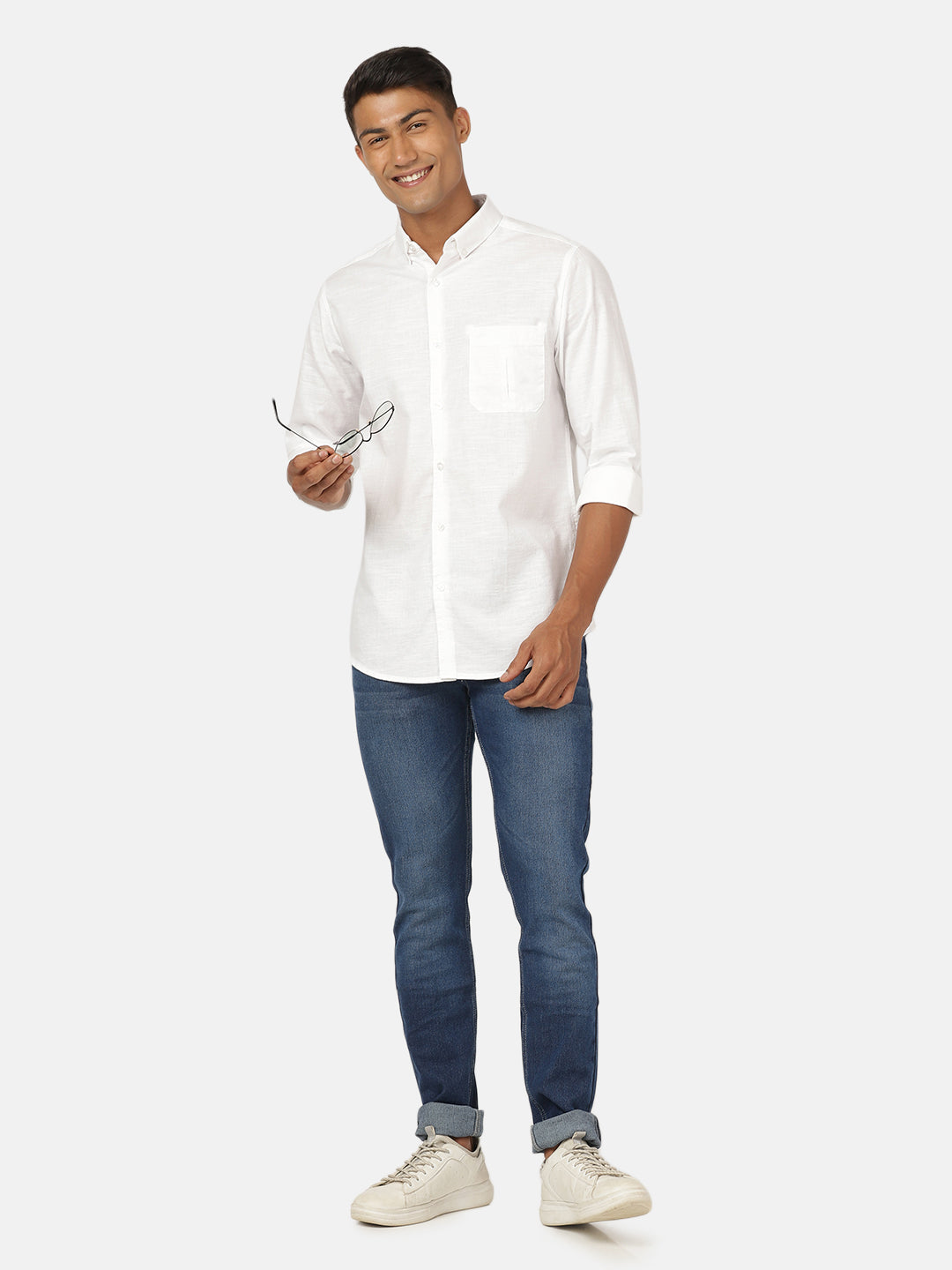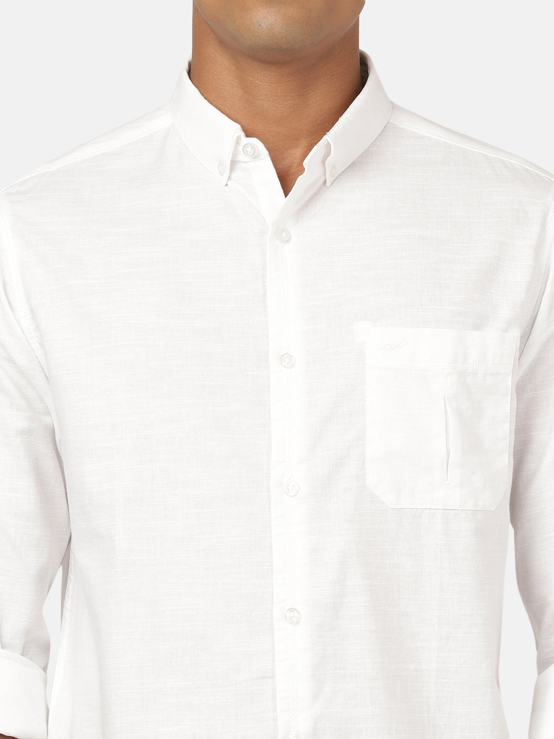White Textured Cozy Fabric Butta Stripe Chisel Shaped Pocket Comfort Fit Shirts