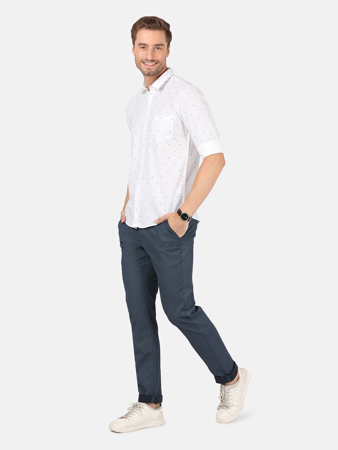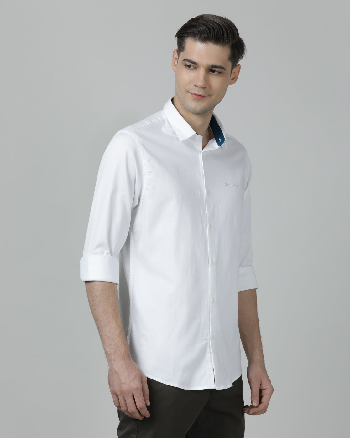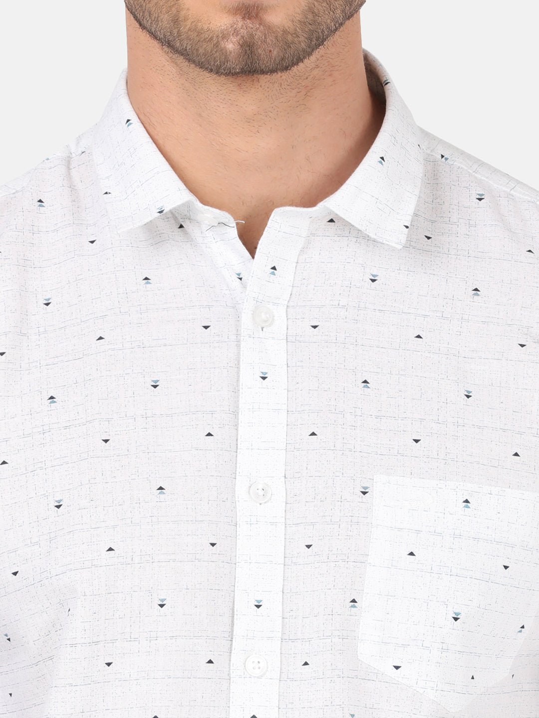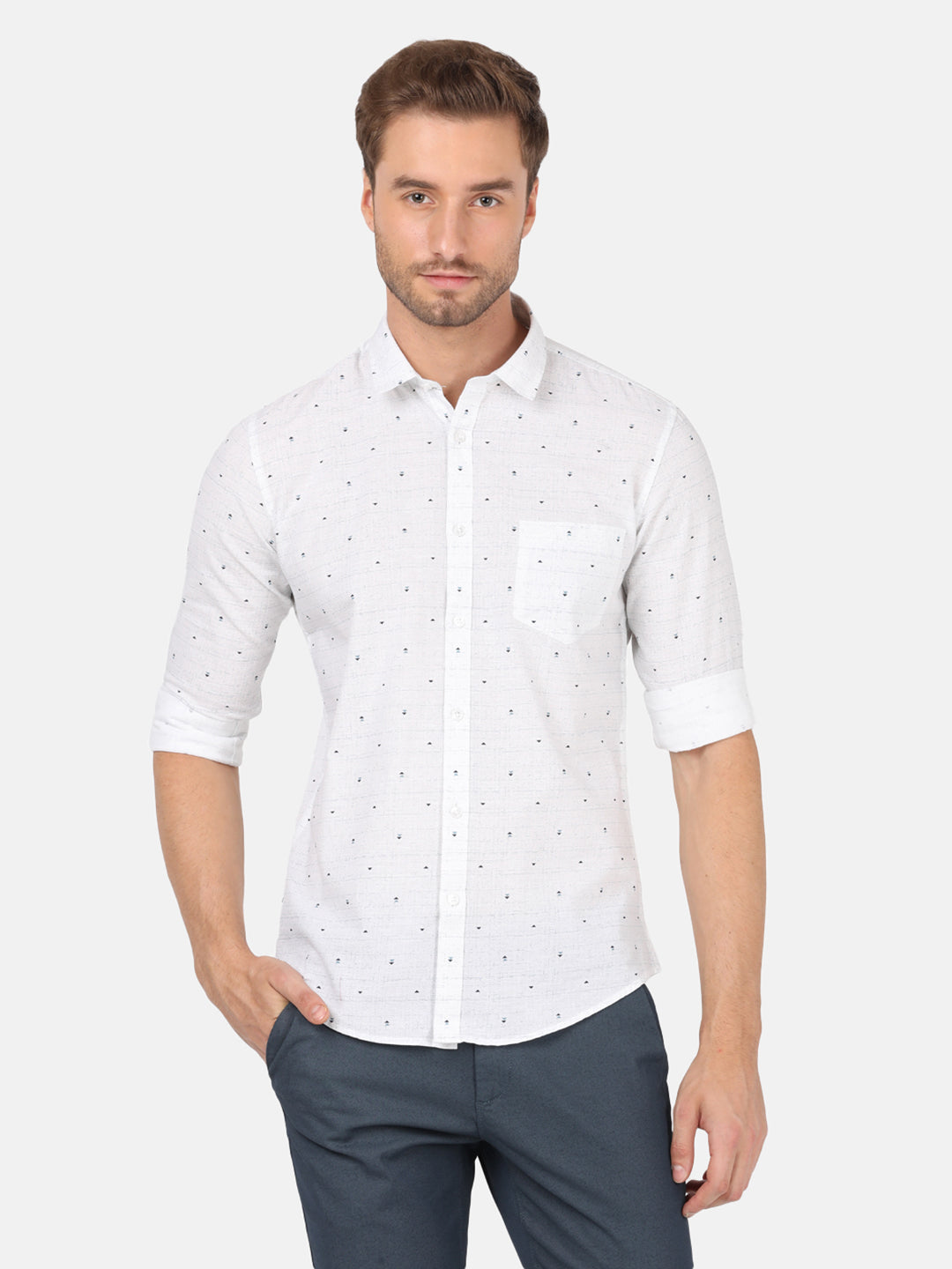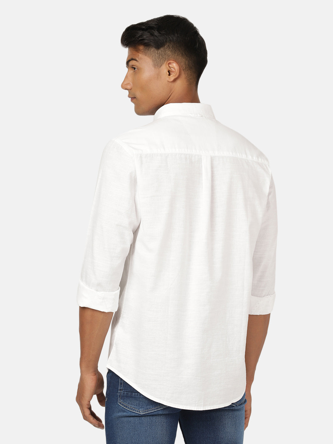 White Textured Cozy Fabric Butta Stripe Chisel Shaped Pocket Comfort Fit Shirts