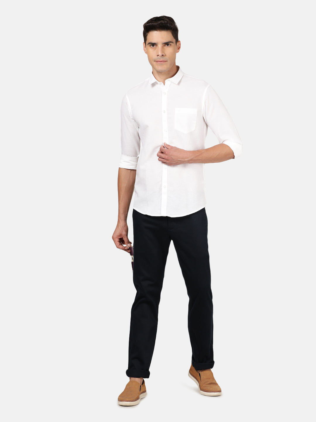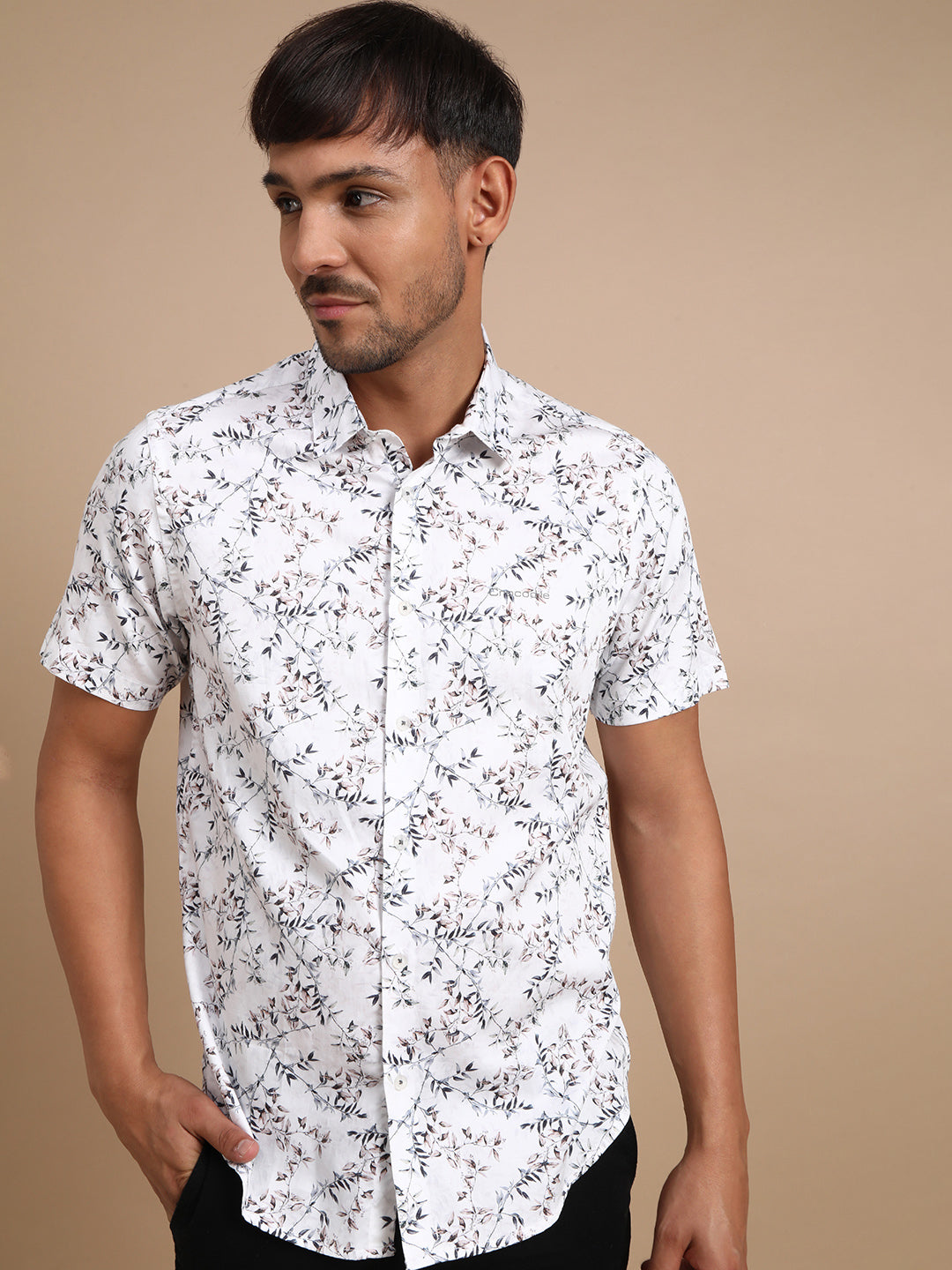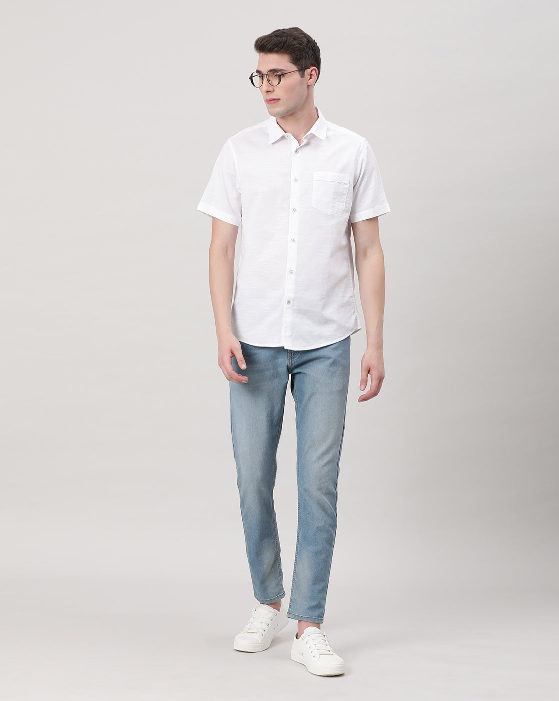 White Solid Half Sleeve 100% Cotton Casual Shirt