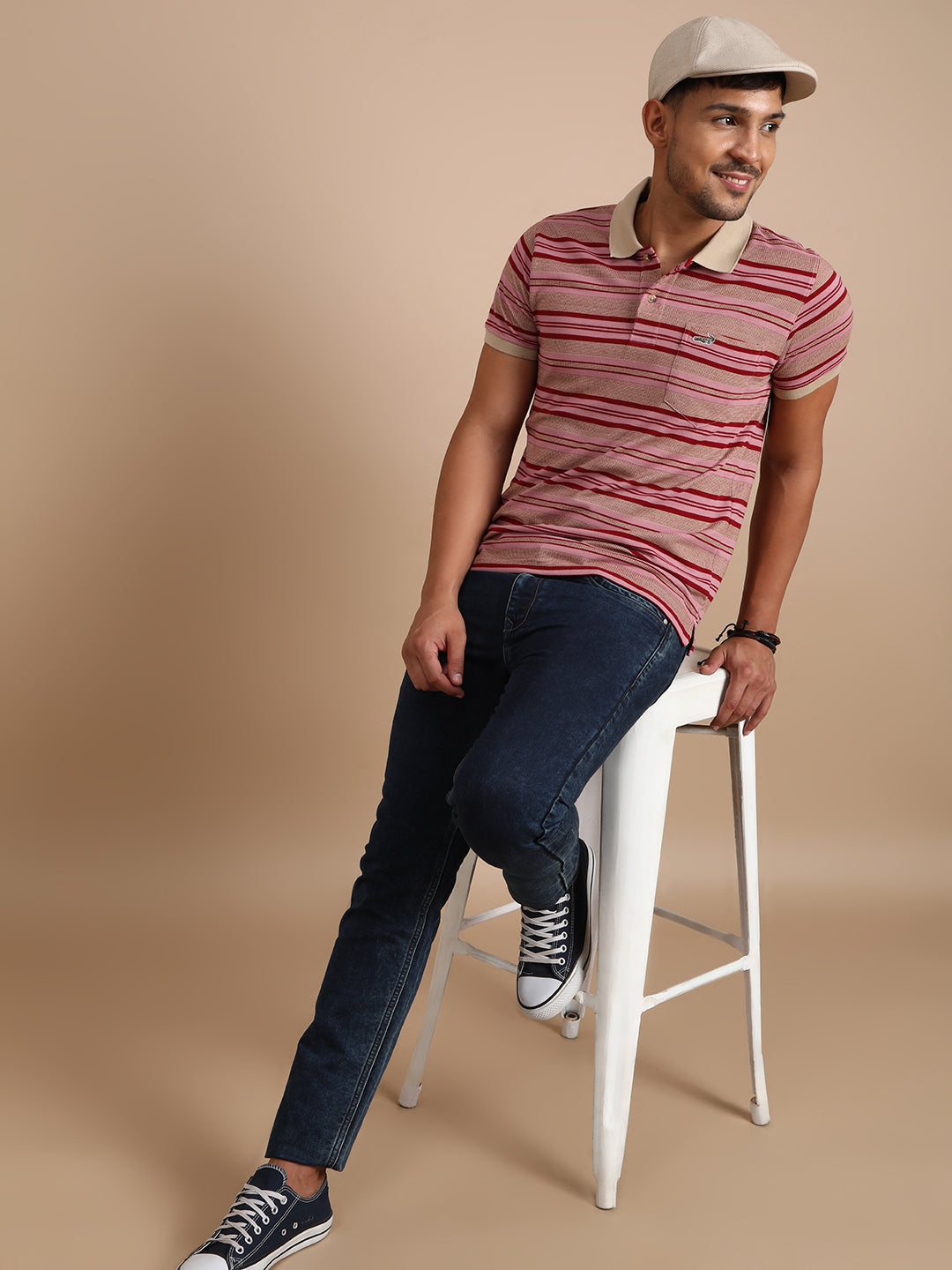 Brown Jacquard Polo T-Shirt Comfort Fit Polo T-Shirts