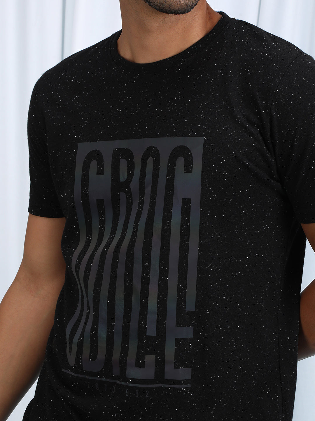 Blue Typography Printed Single Jersey Cotton T-Shirts