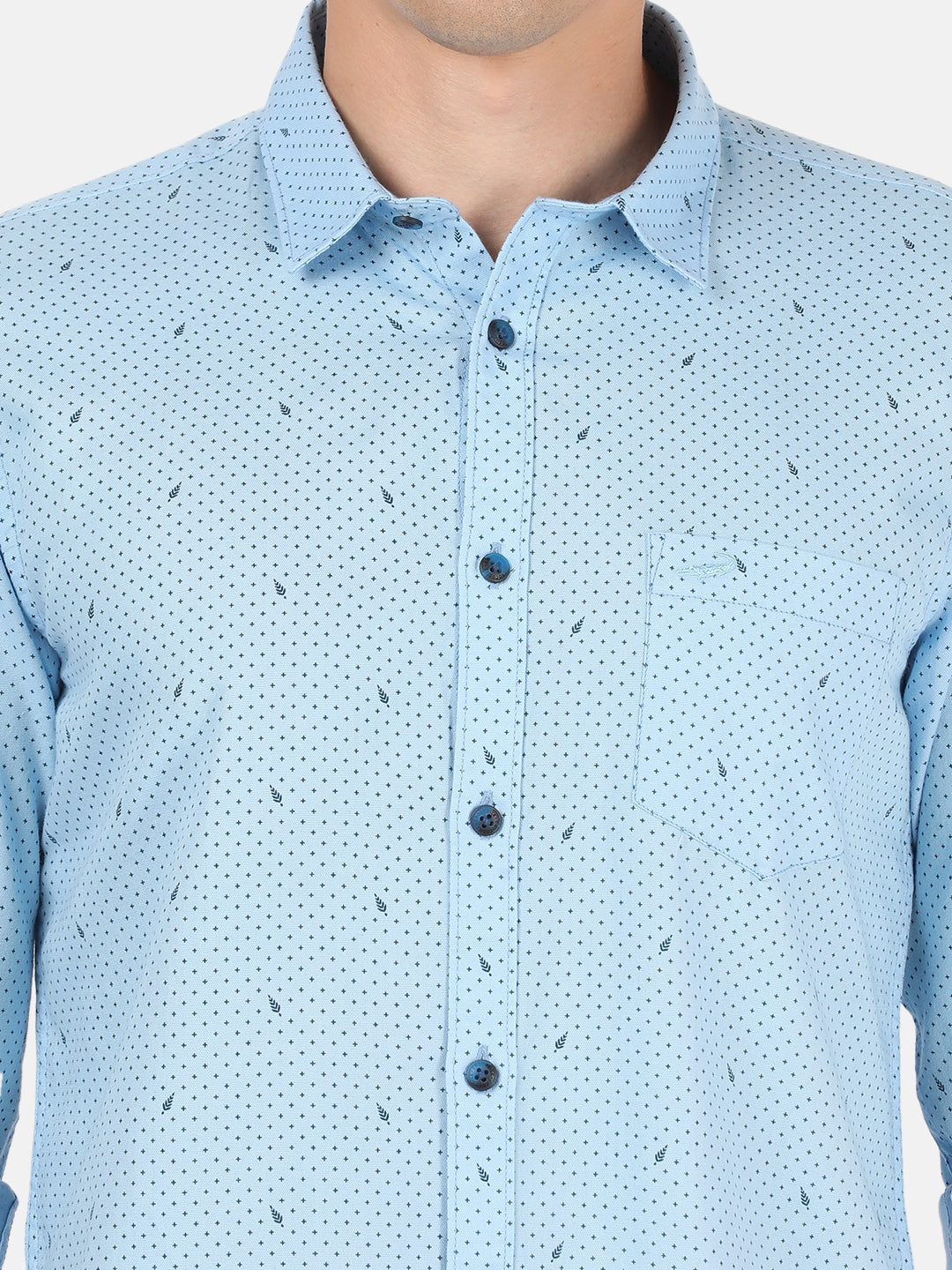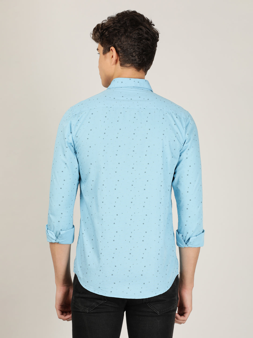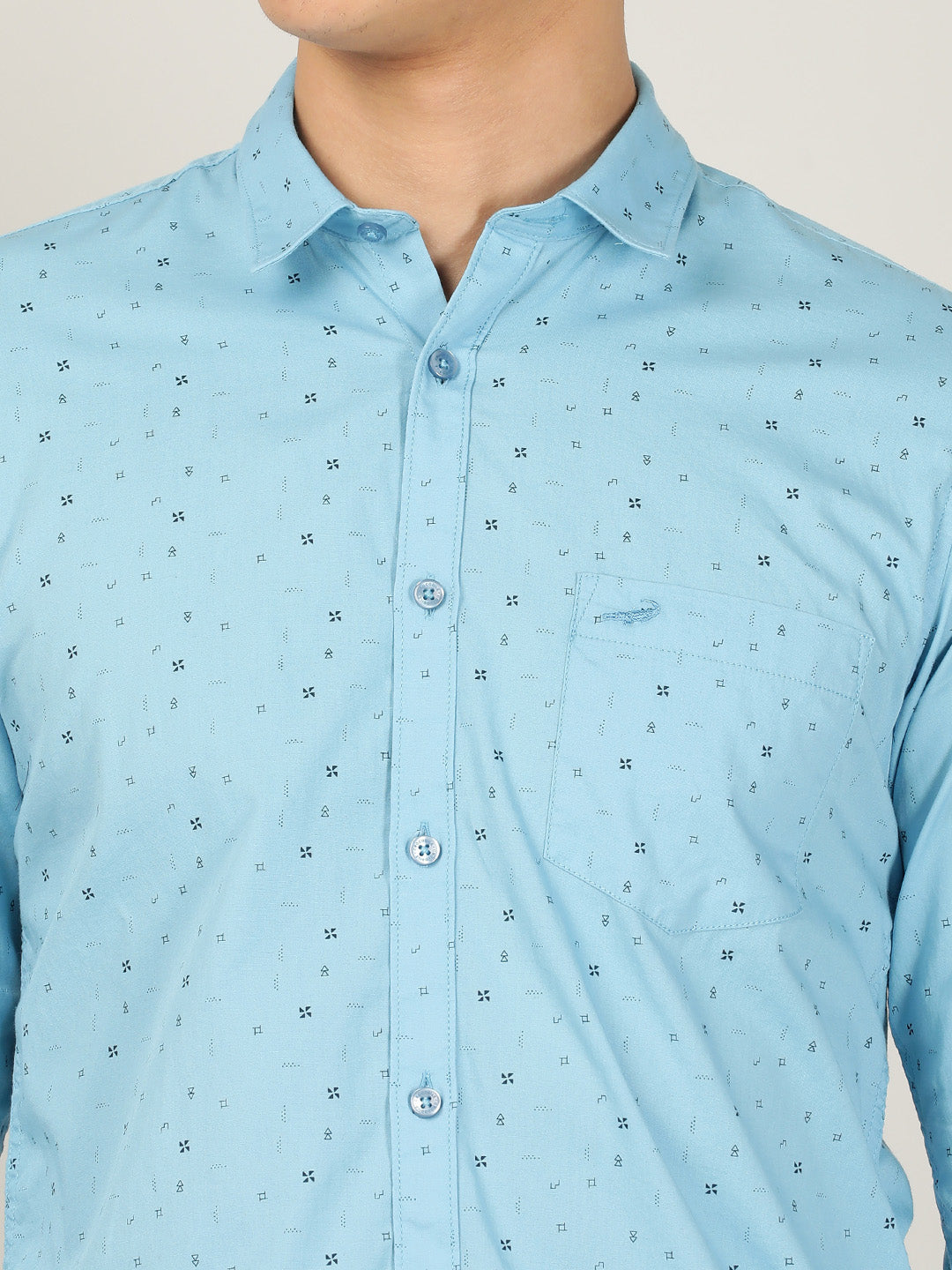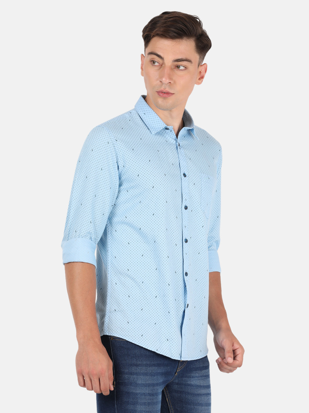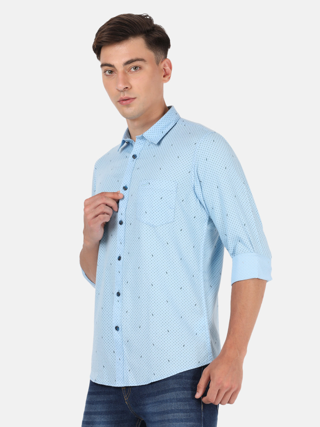 Blue Printed Full Sleeve 100% Cotton Casual Shirt