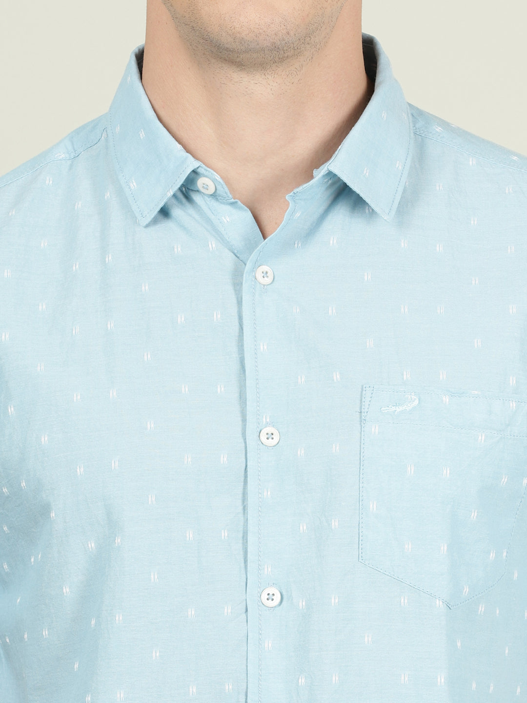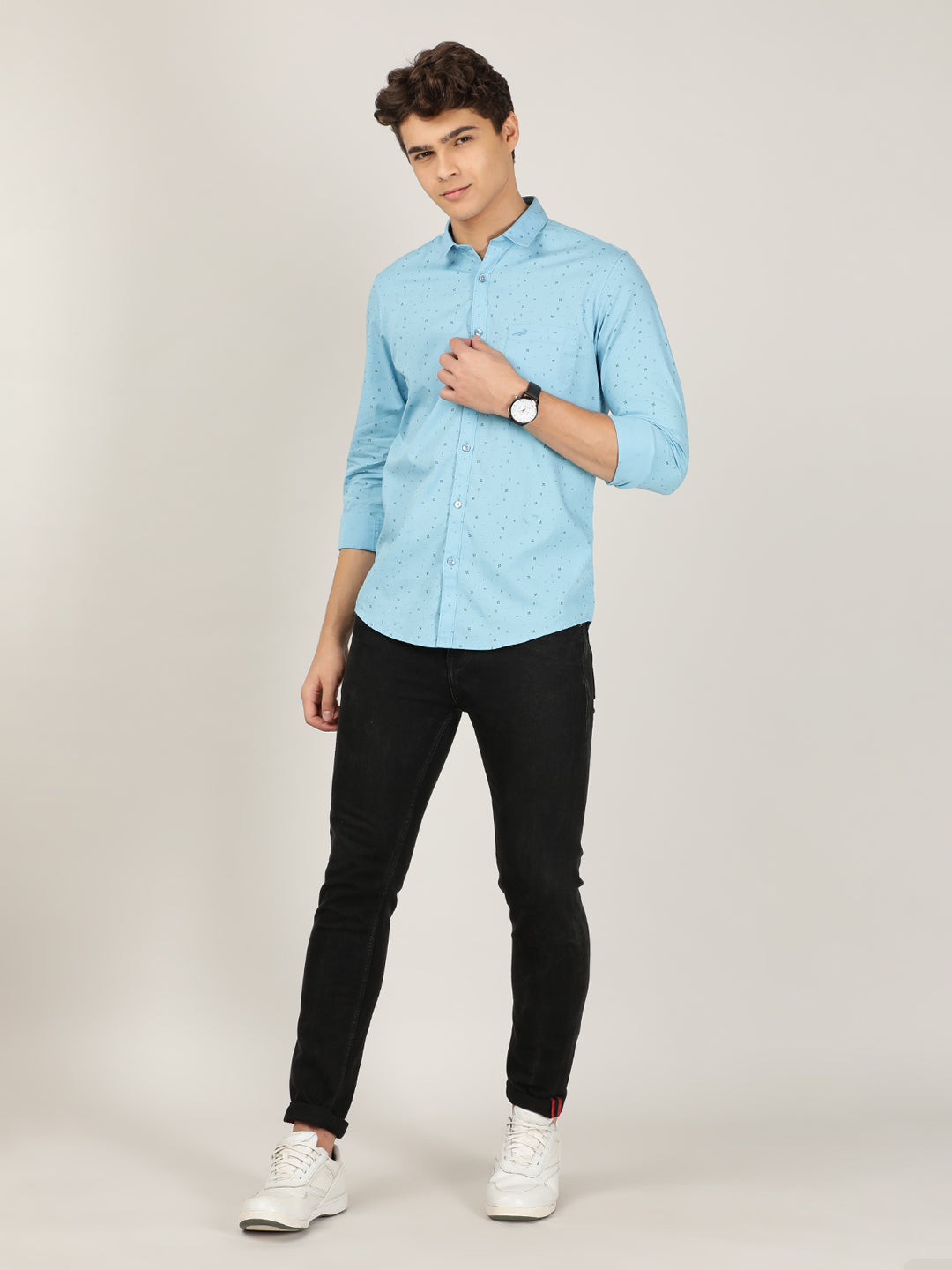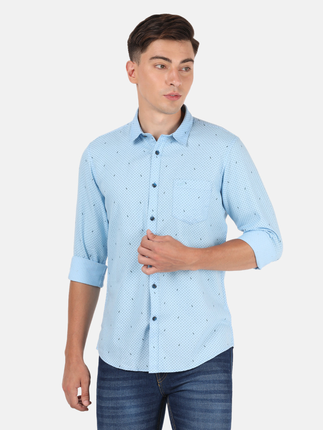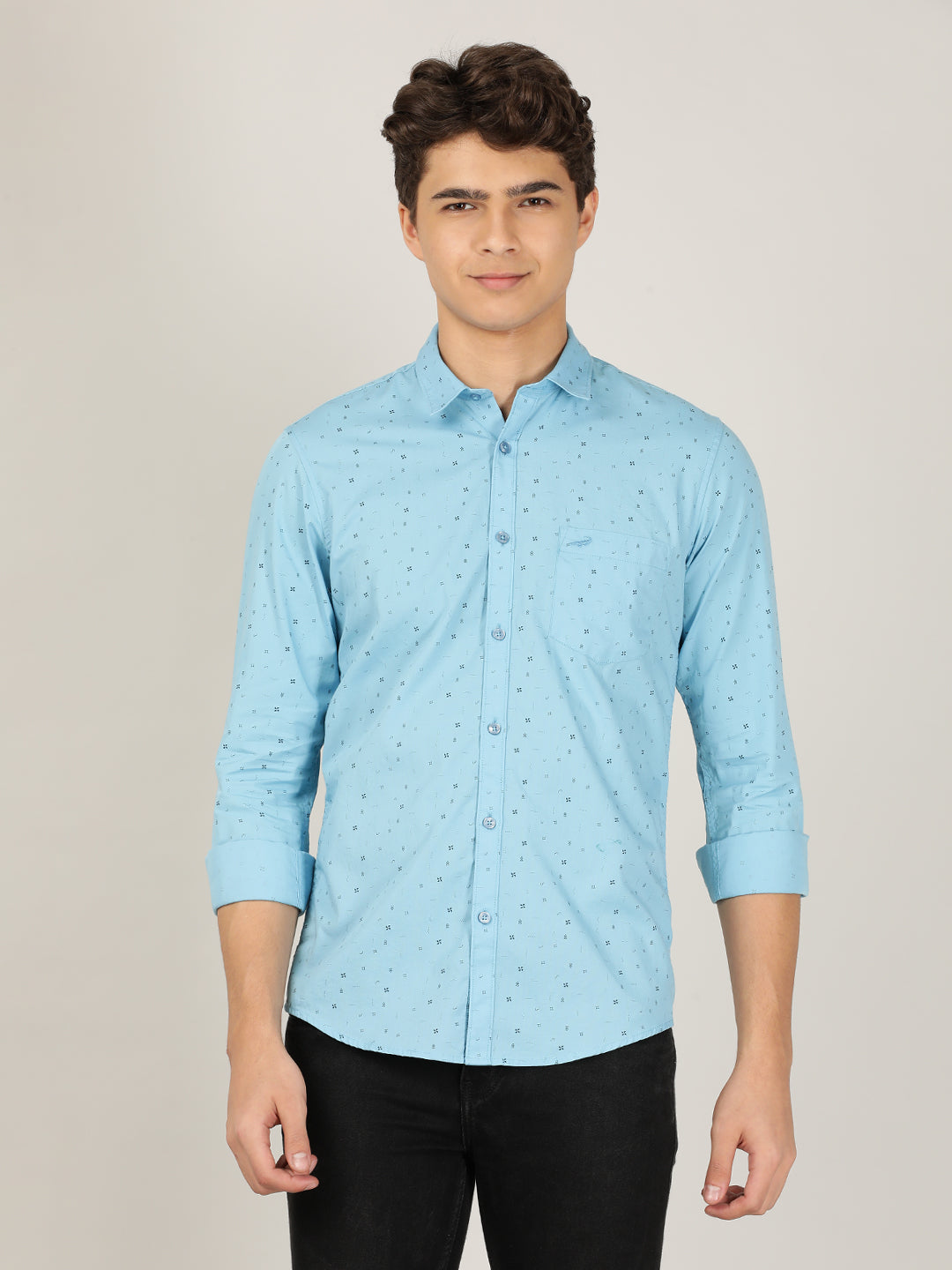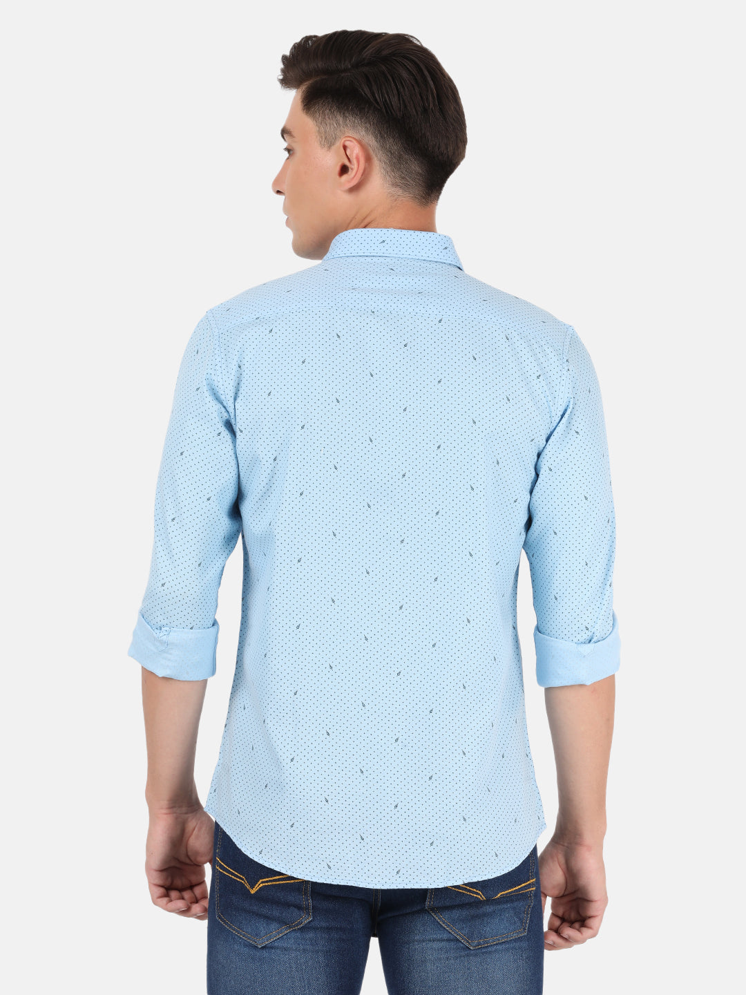 Blue Printed Full Sleeve 100% Cotton Casual Shirt