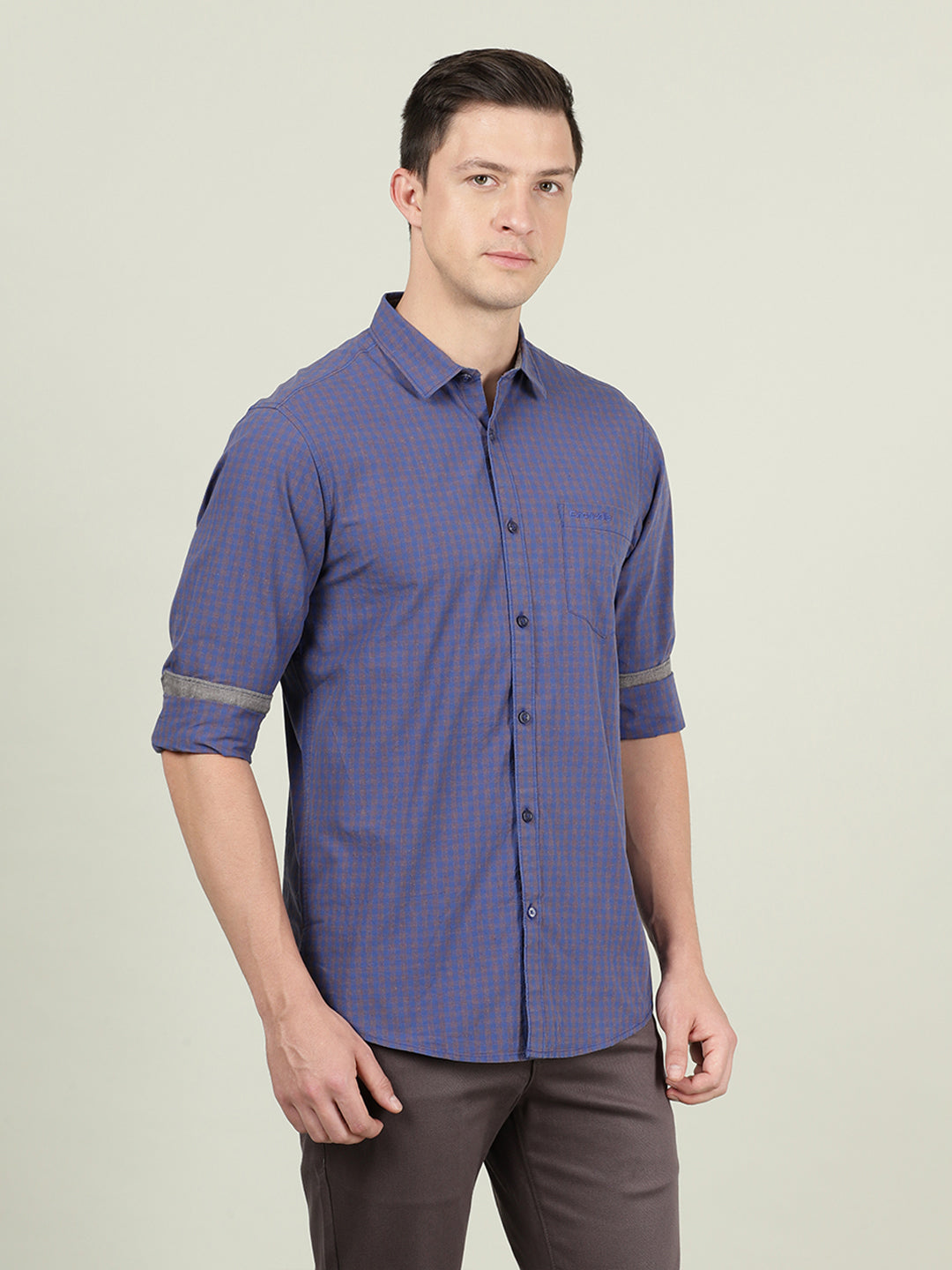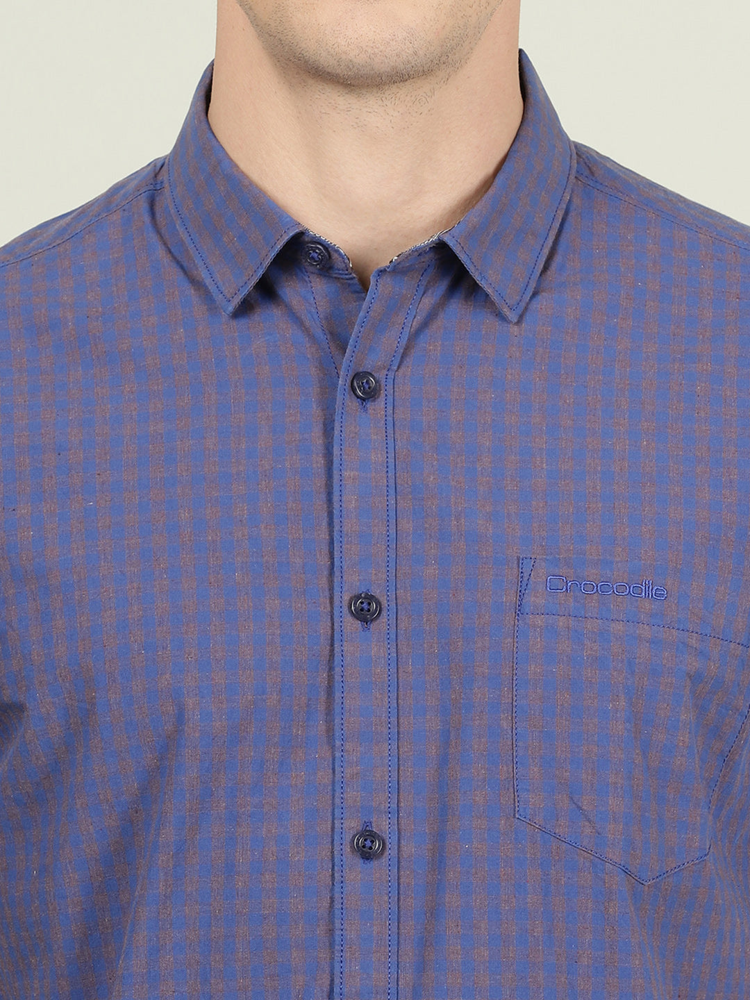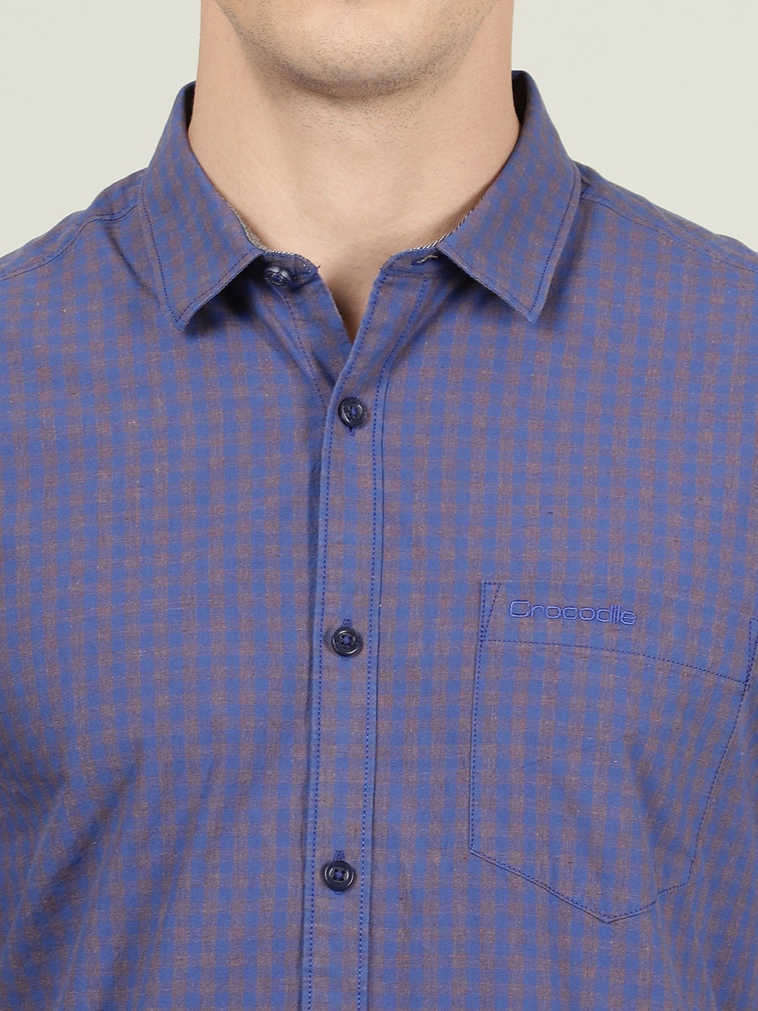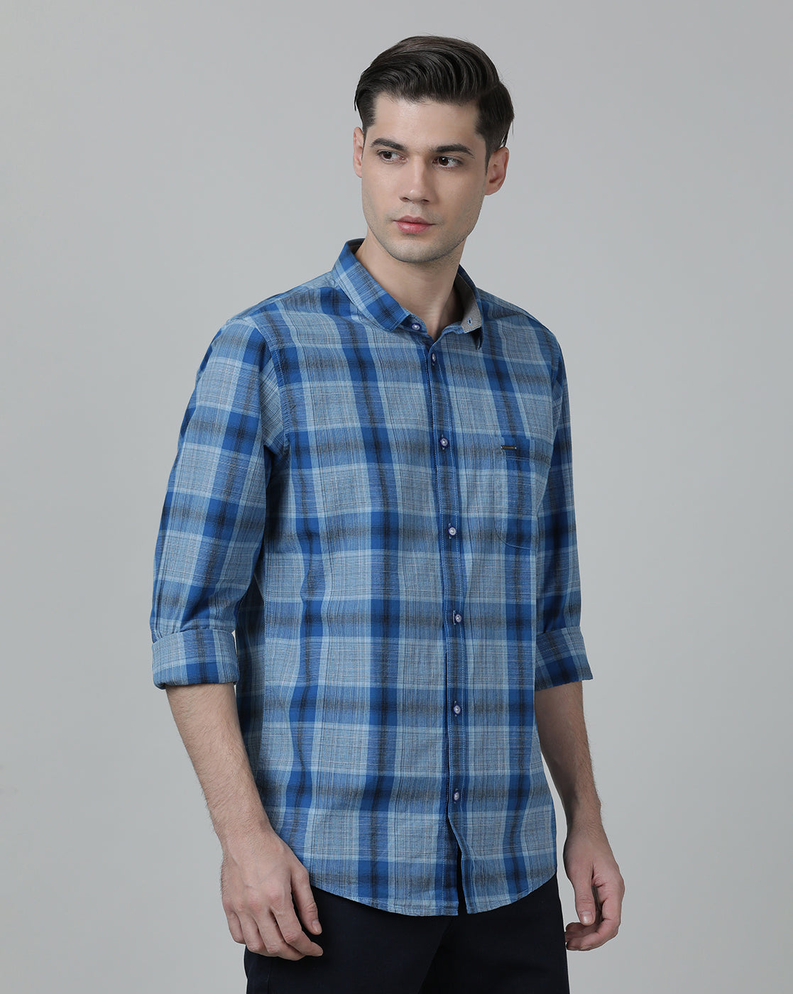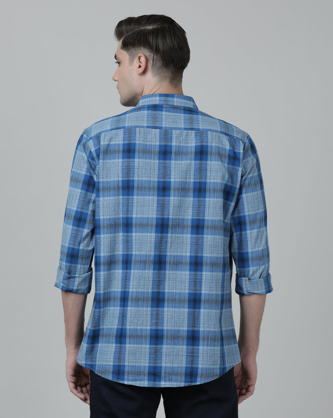 Blue Textured Checks Shirt Cozy Fabric 100% Cotton Comfort Fit Shirts