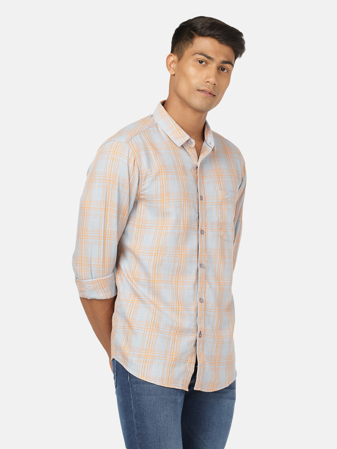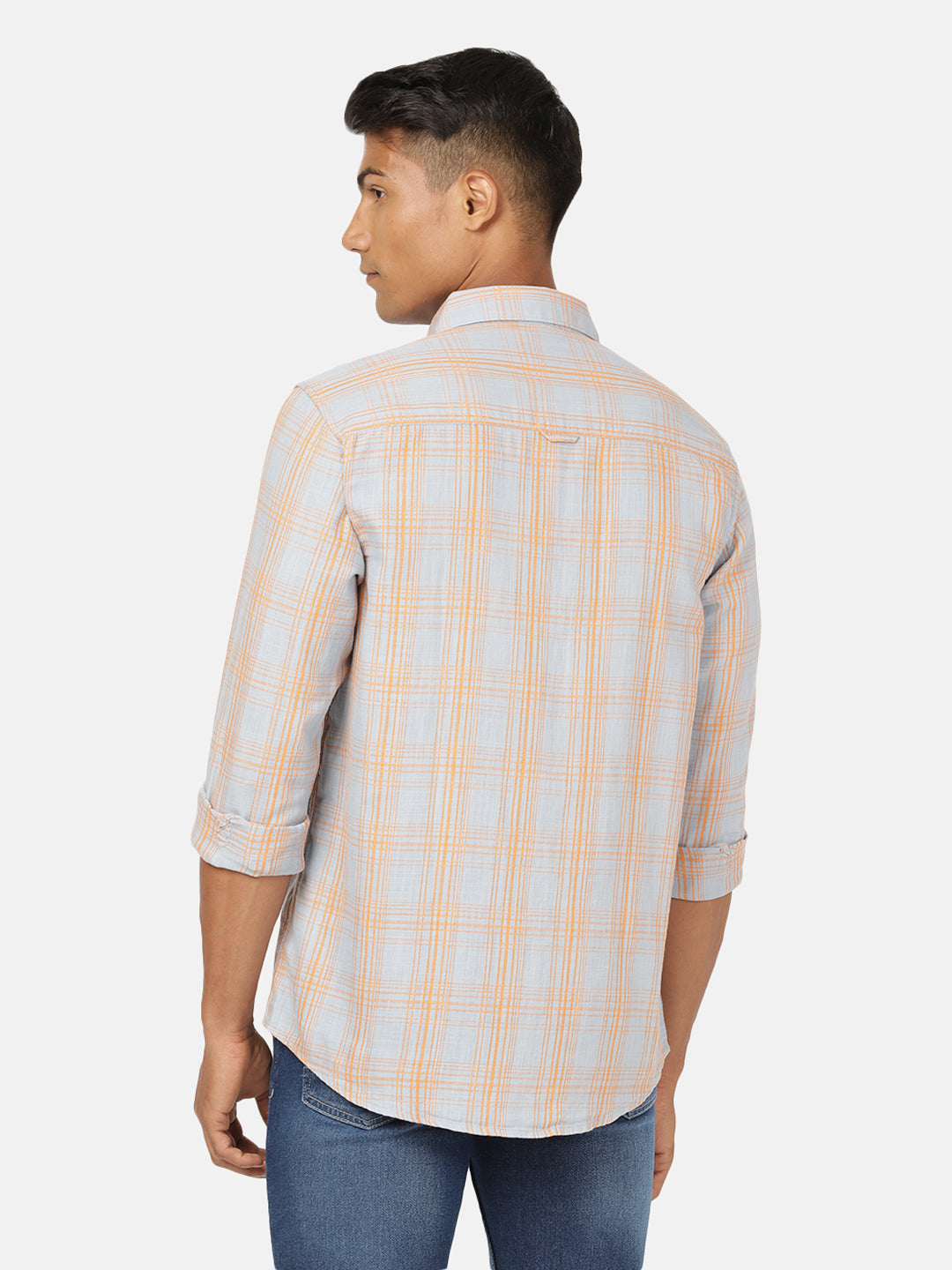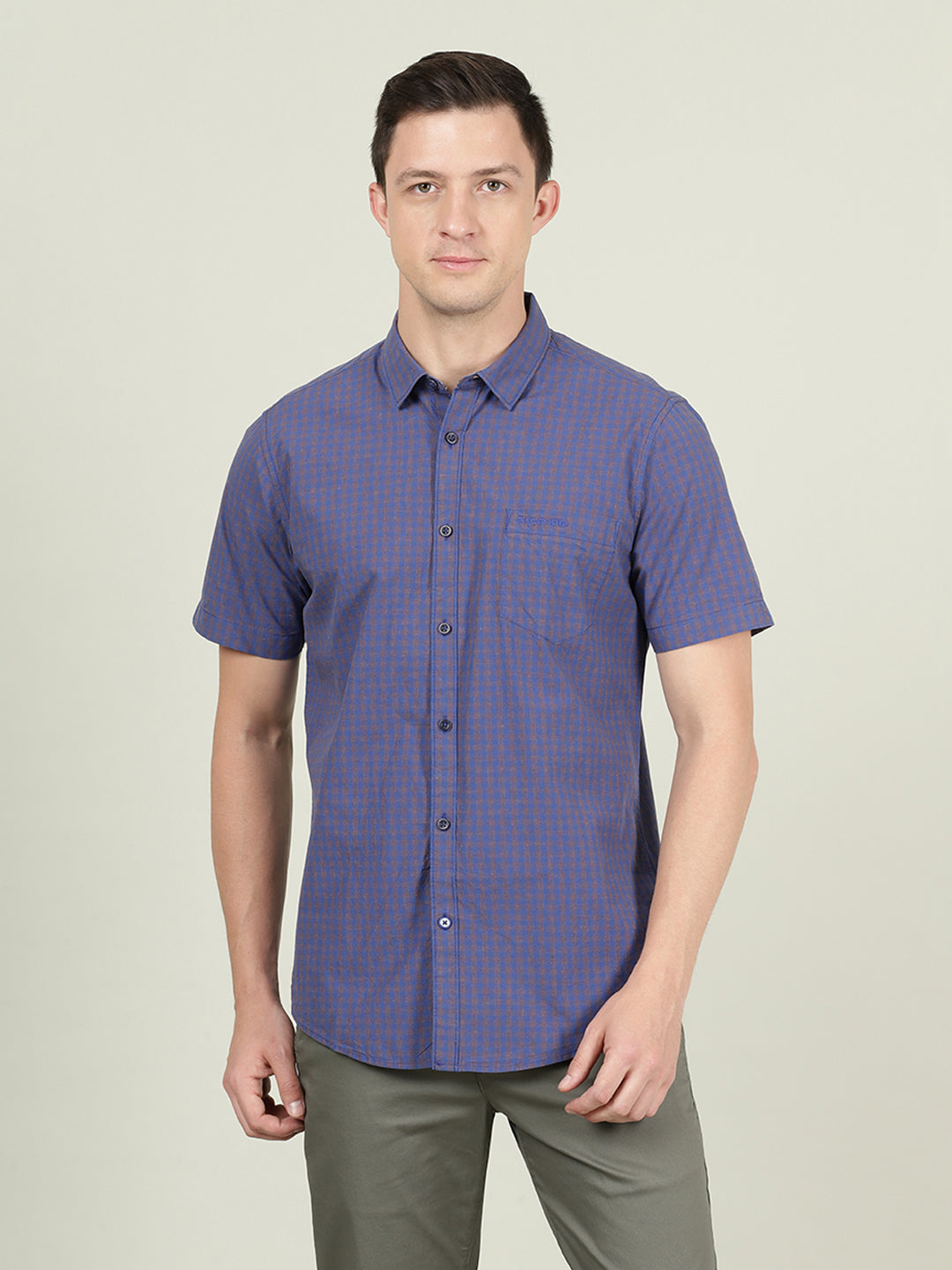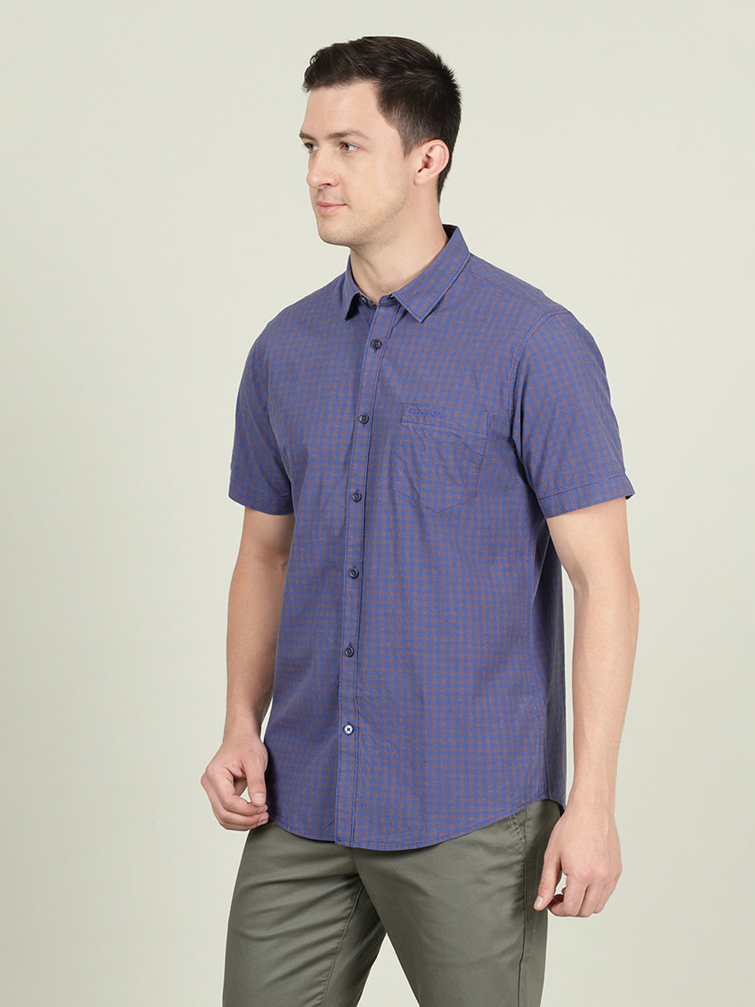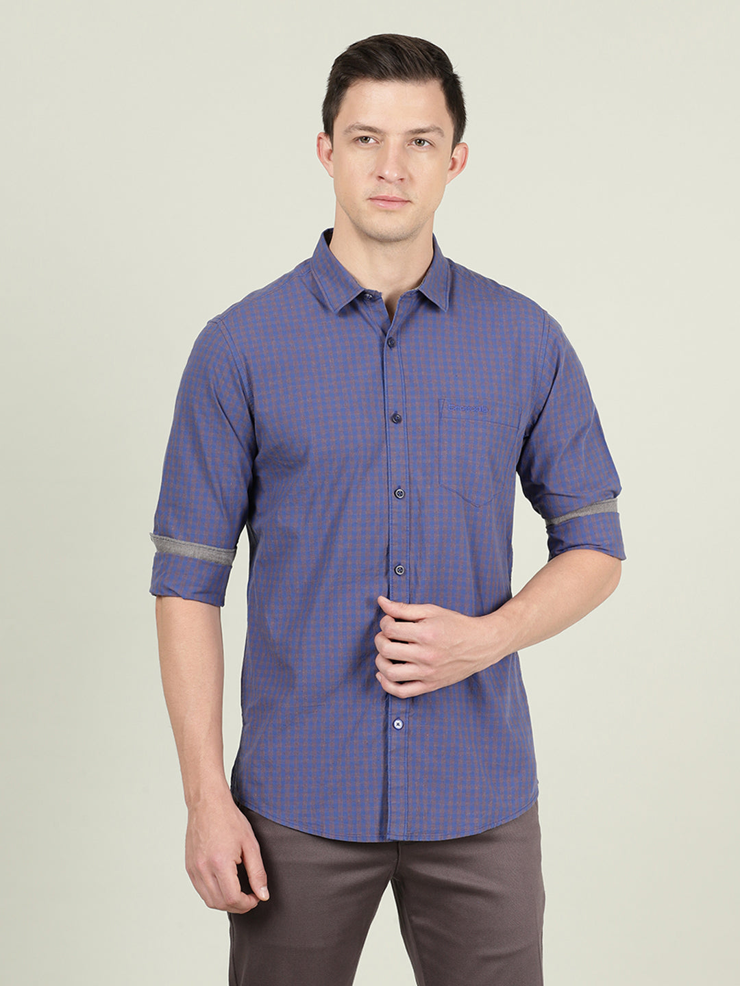 Blue Textured Checks Shirt Cozy Fabric 100% Cotton Comfort Fit Shirts