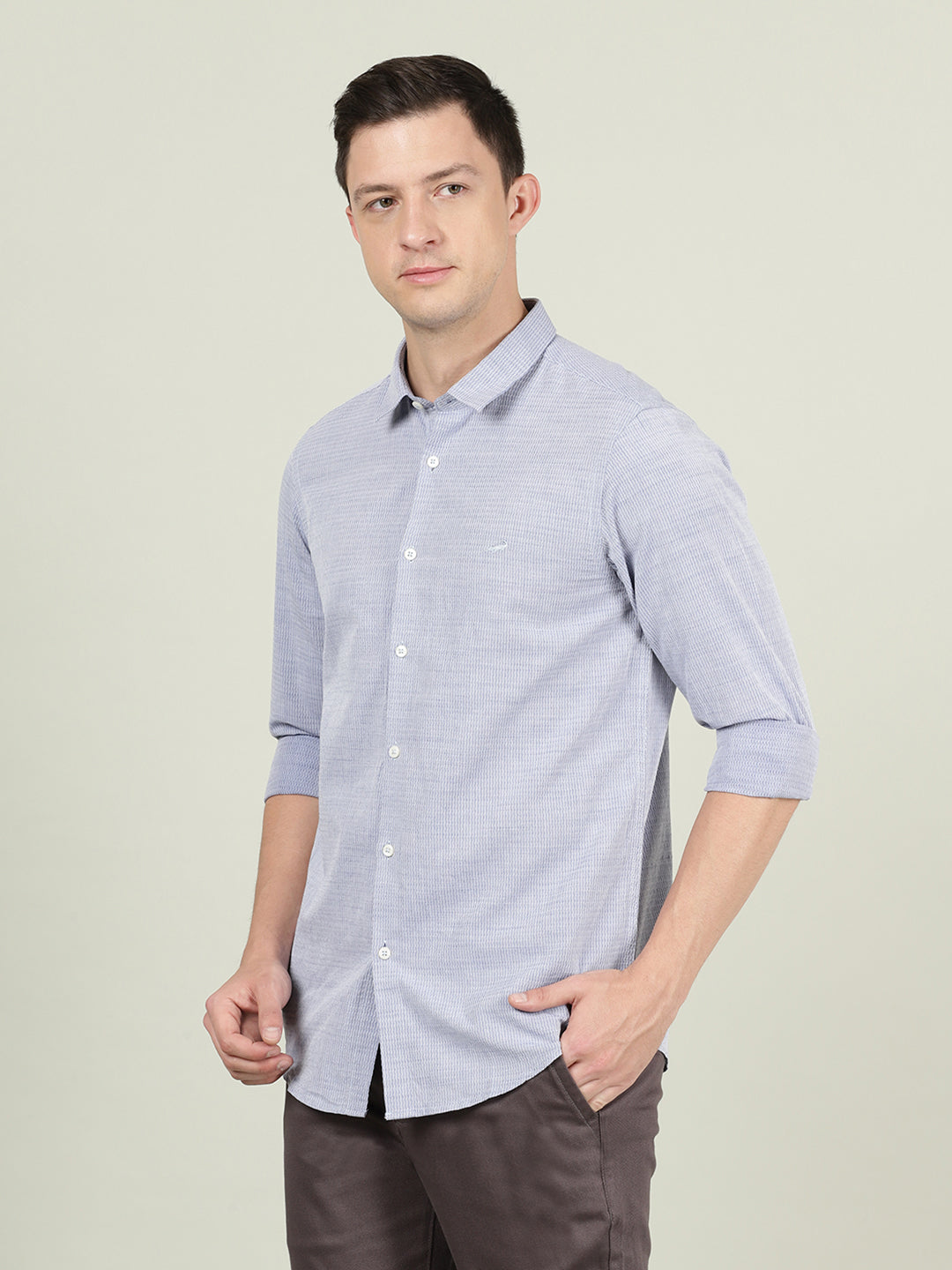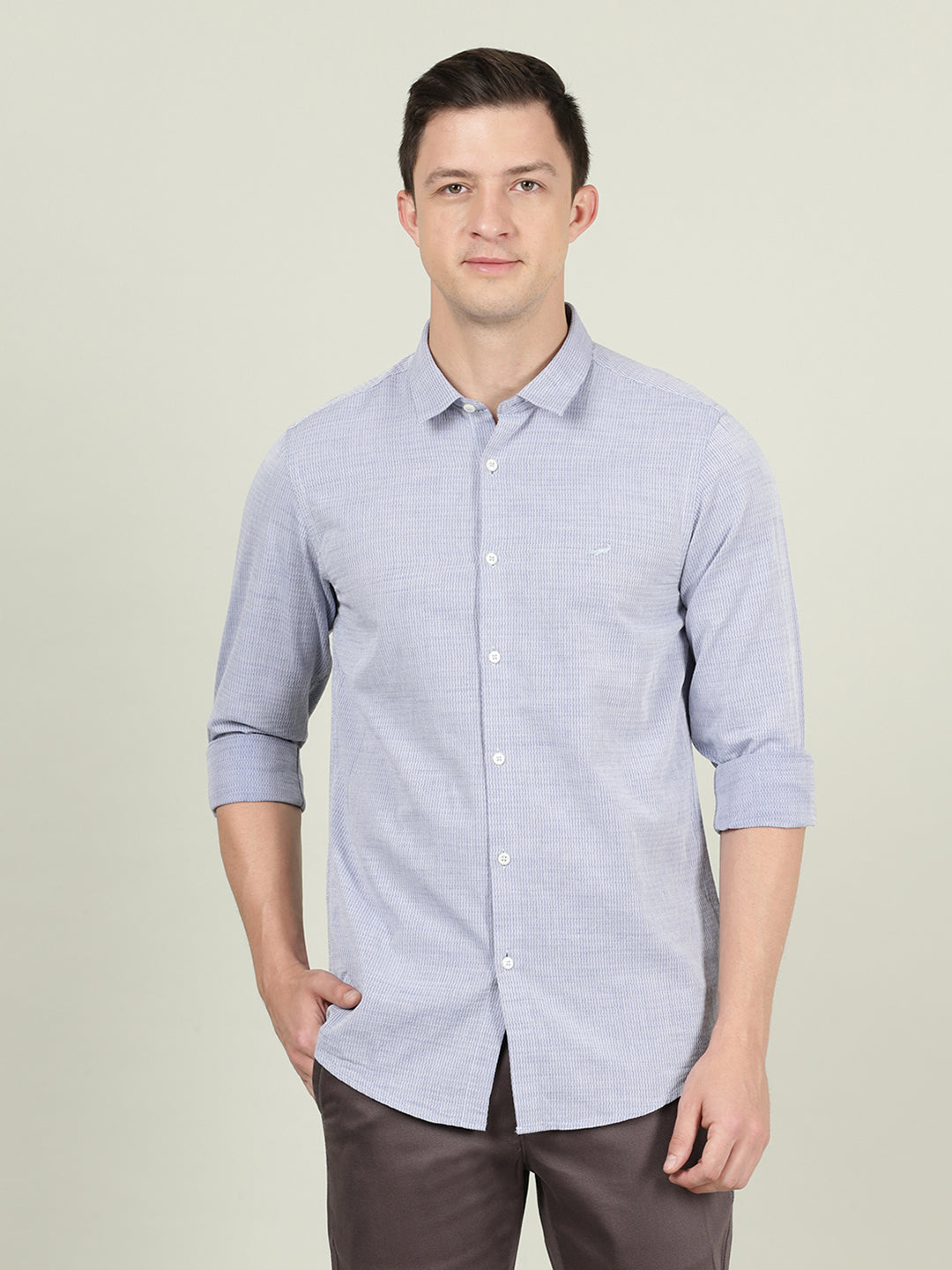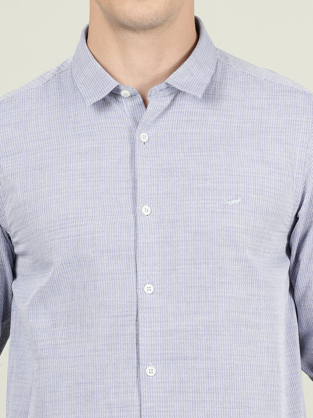 Blue Textured Cozy Feel Cotton Comfort Fit Shirts