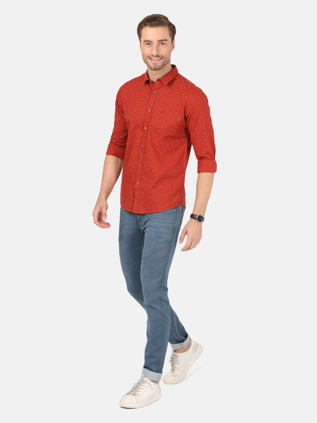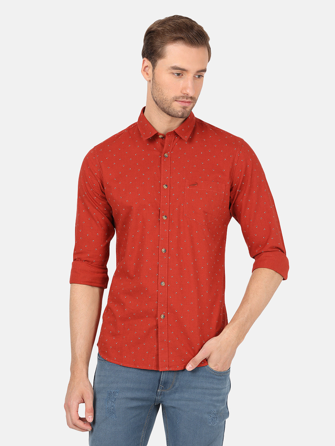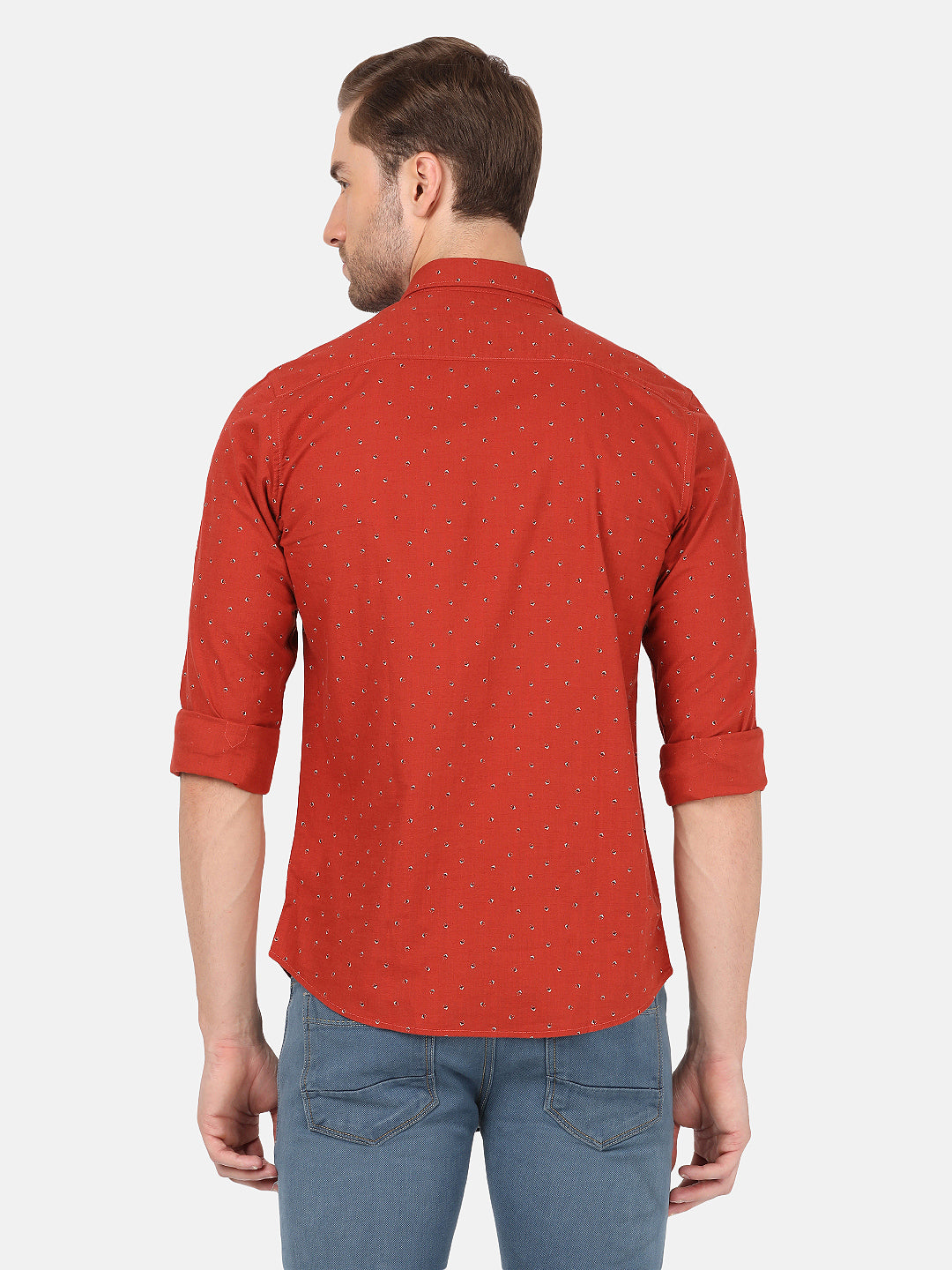 Brown Printed Casual Full Sleeve 100% Cotton Shirt