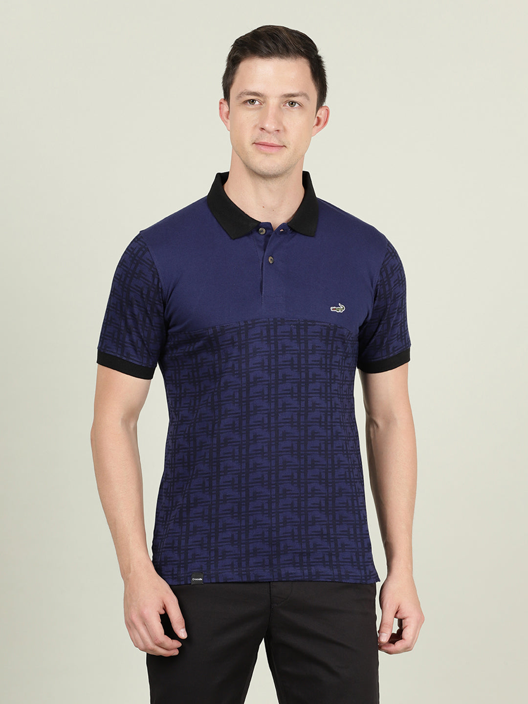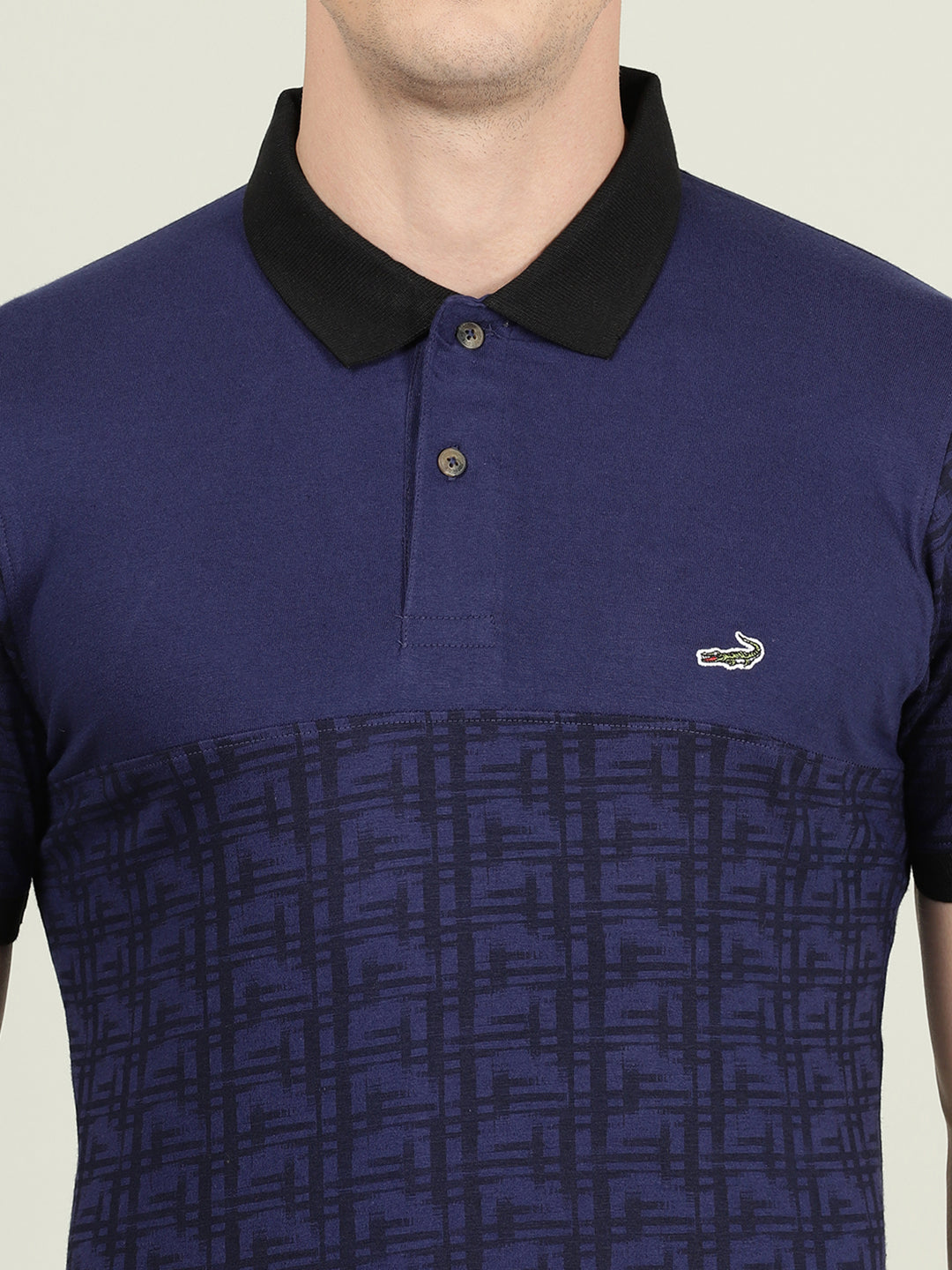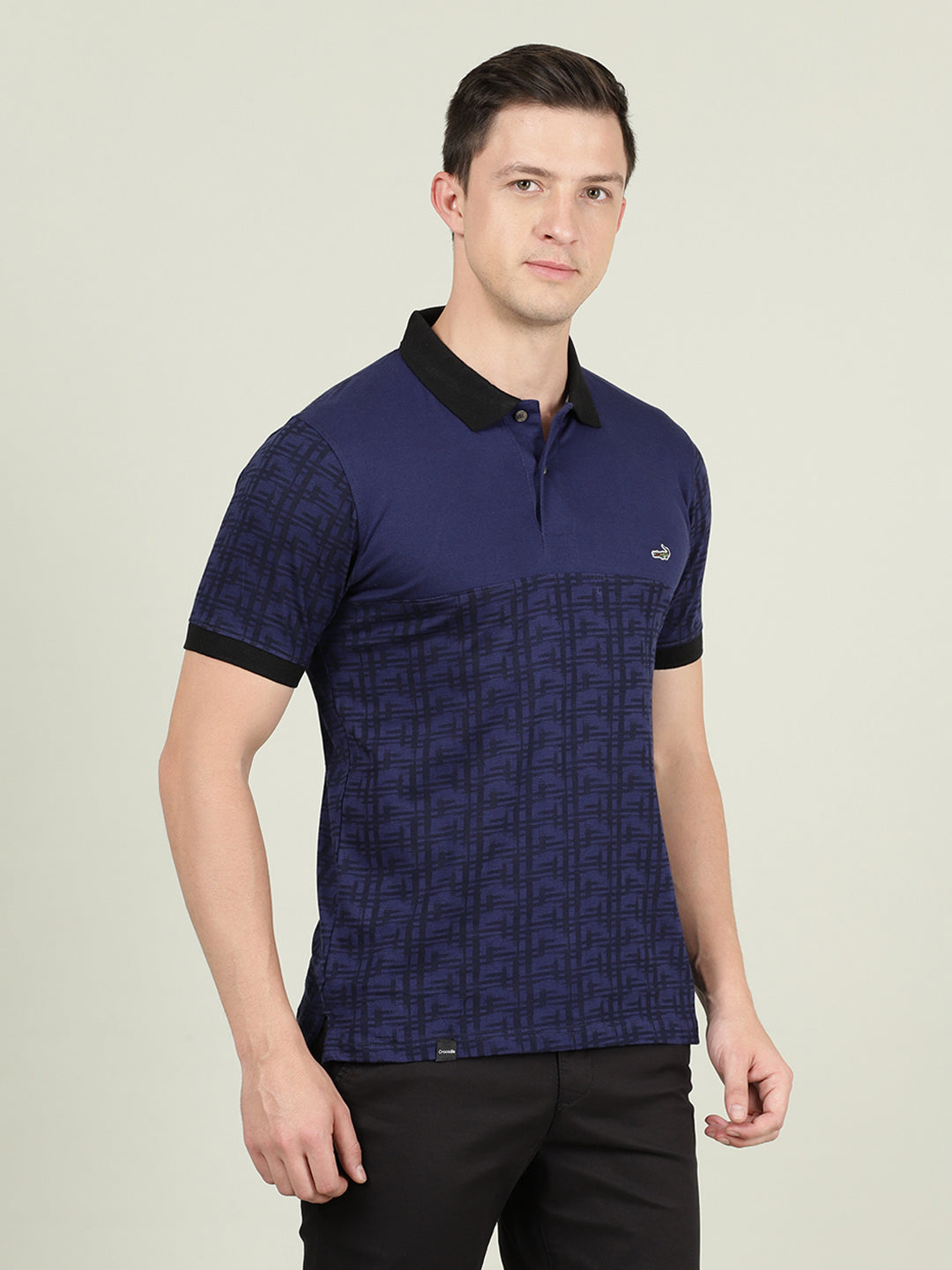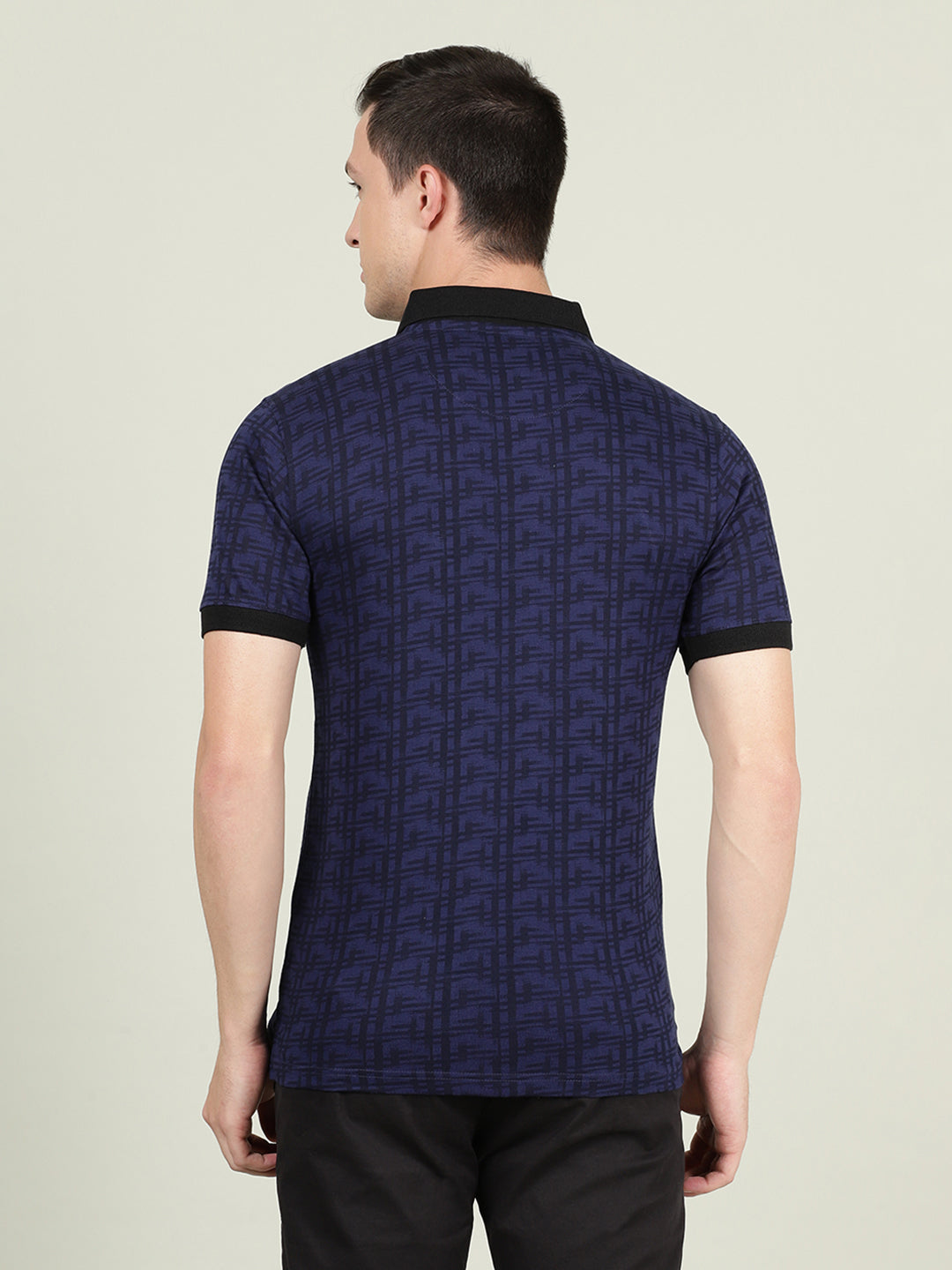 Blue Printed Engineered Polo Slim Fit Polo T-Shirts