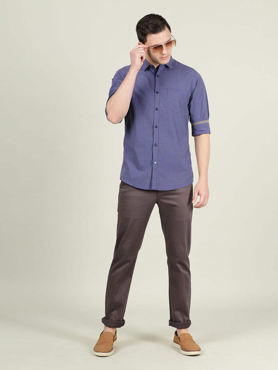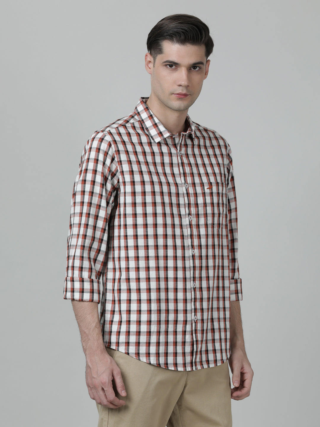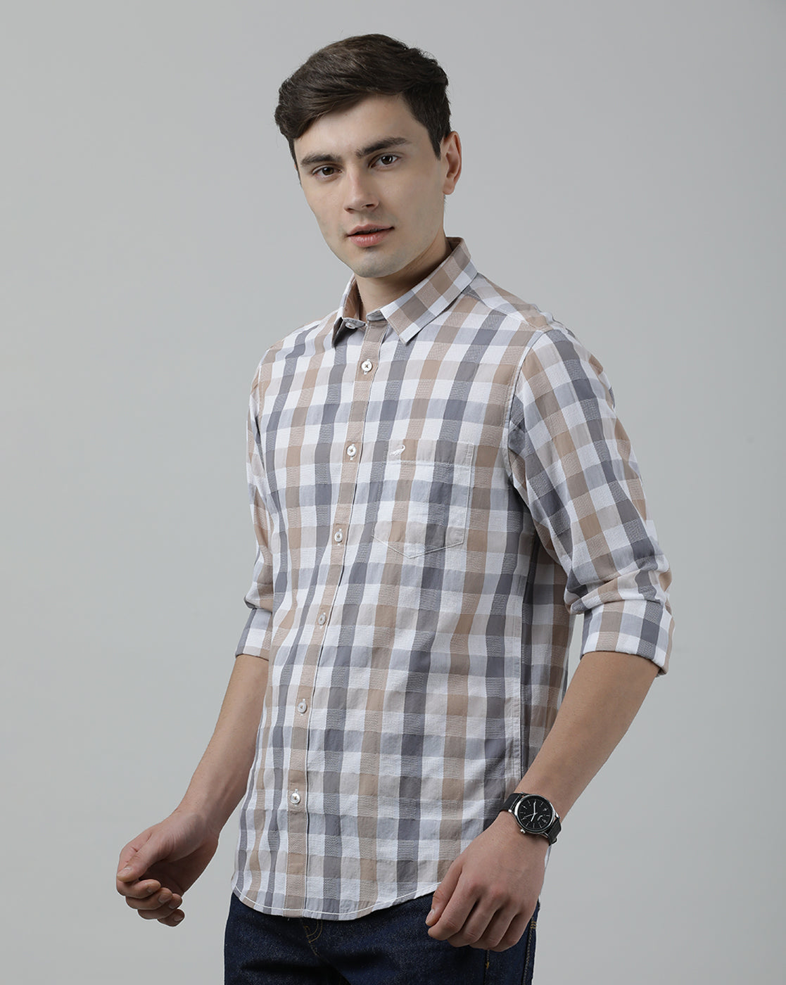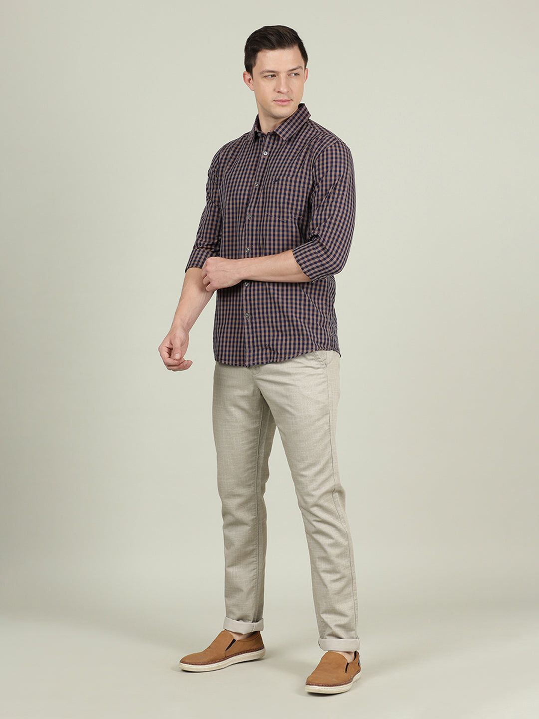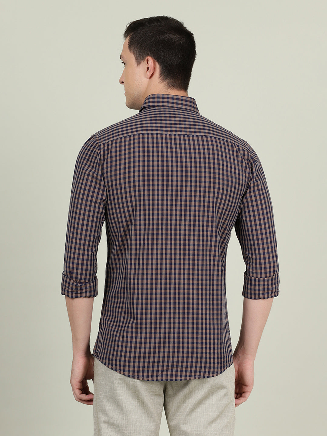 Brown Checked Full Sleeve Casual 100% Cotton Shirt