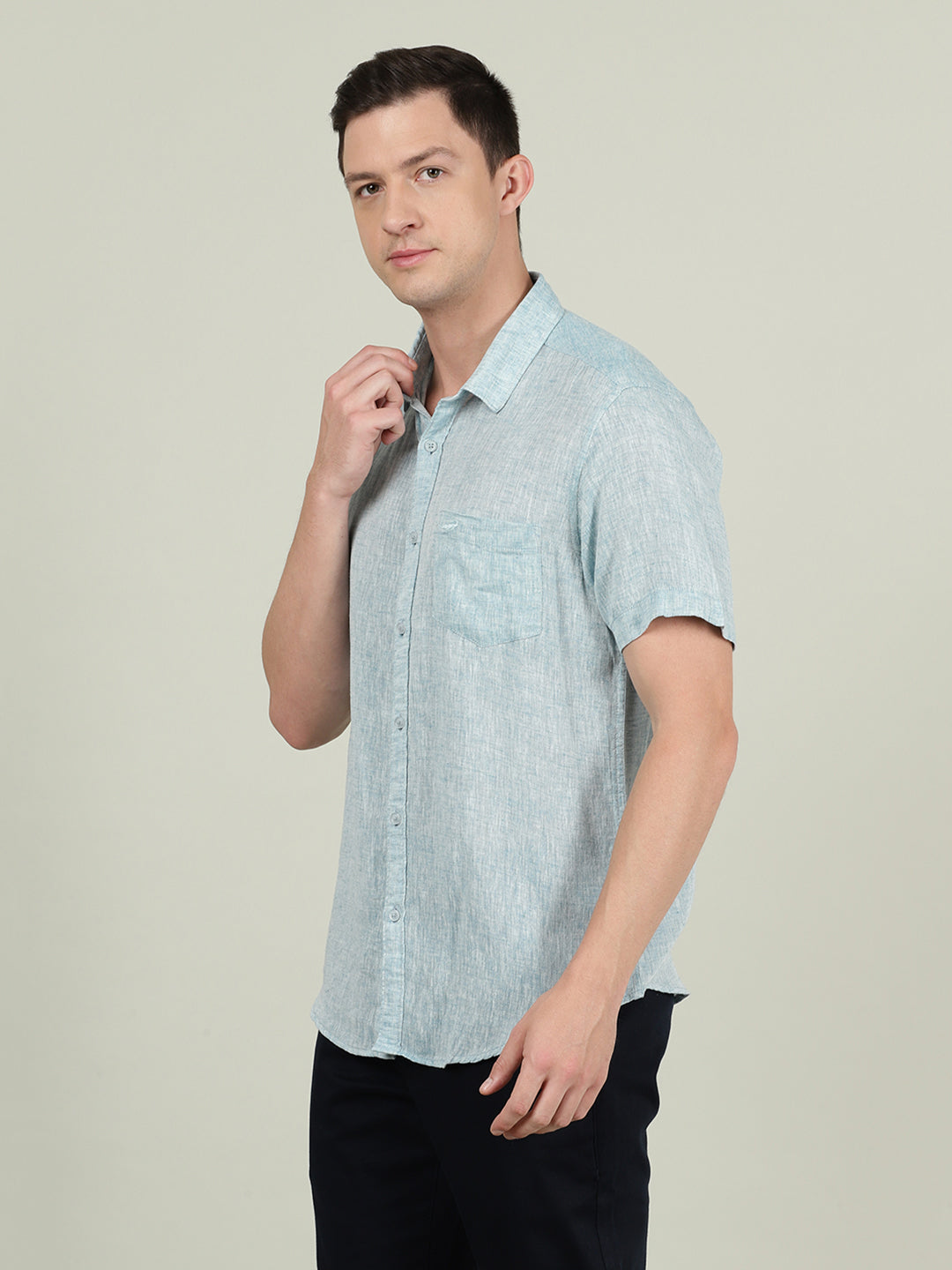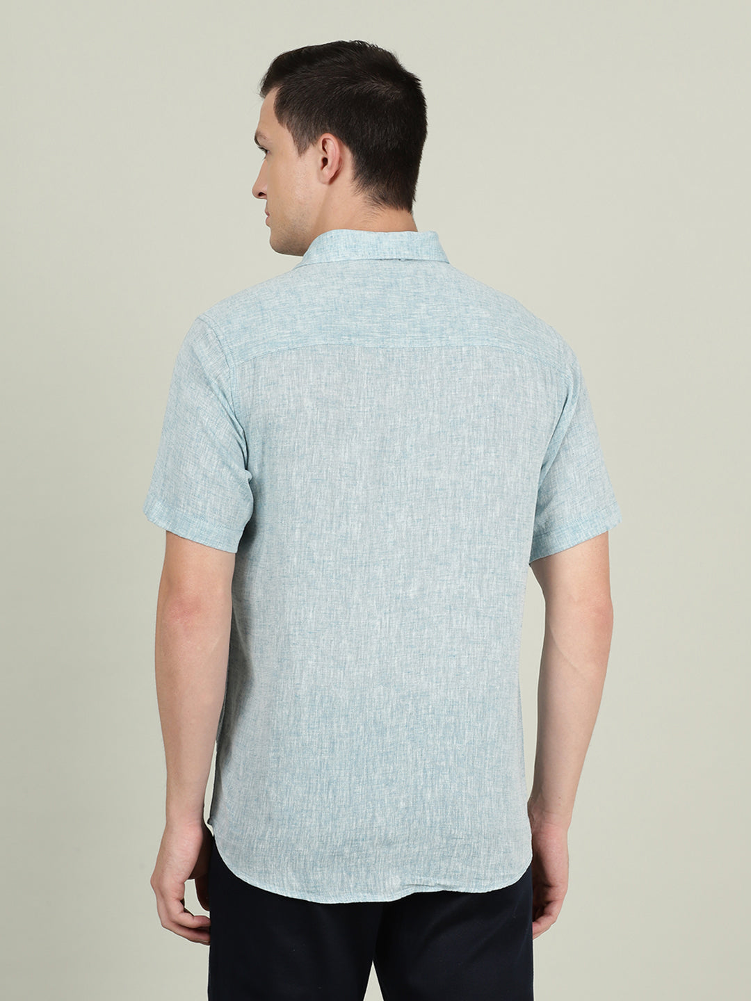 Blue Waffle Texture Cotton Pleated Detailing At Back Comfort Fit Shirts