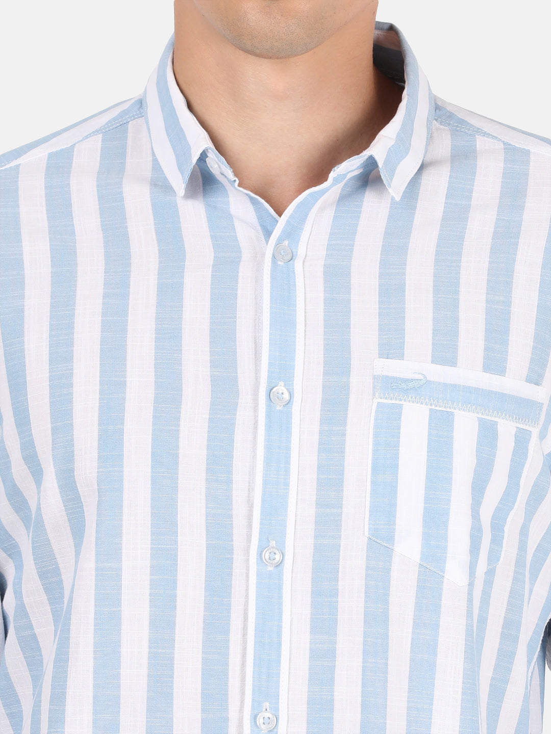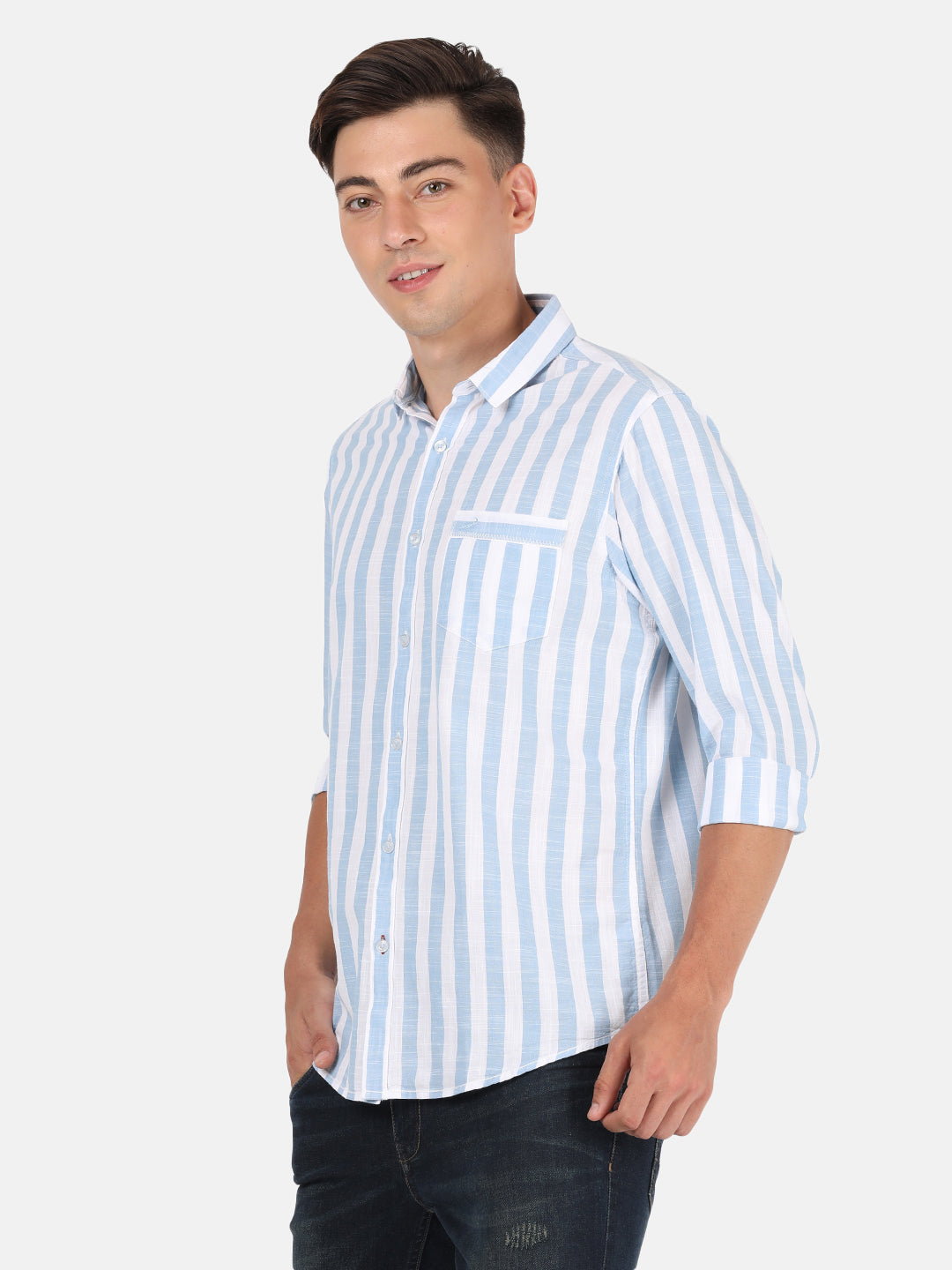 Blue Striped Casual Full Sleeve 100% Cotton Shirt