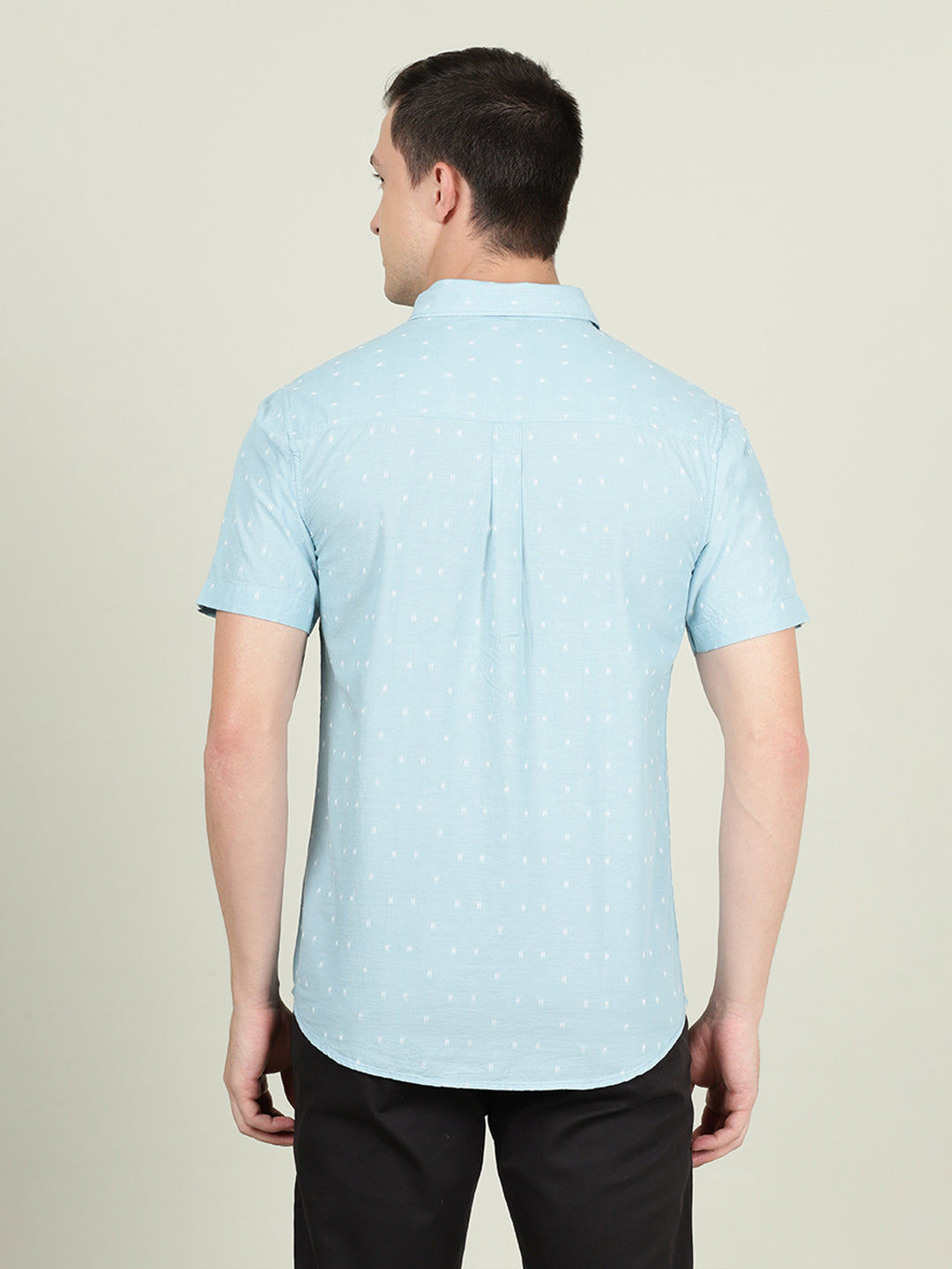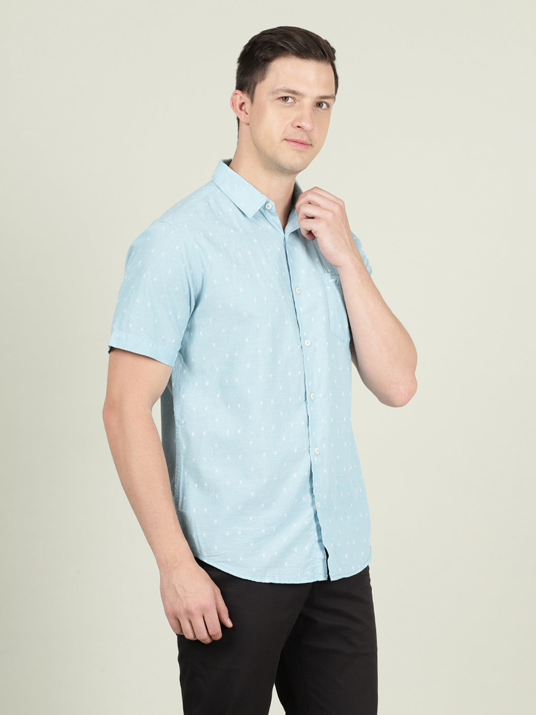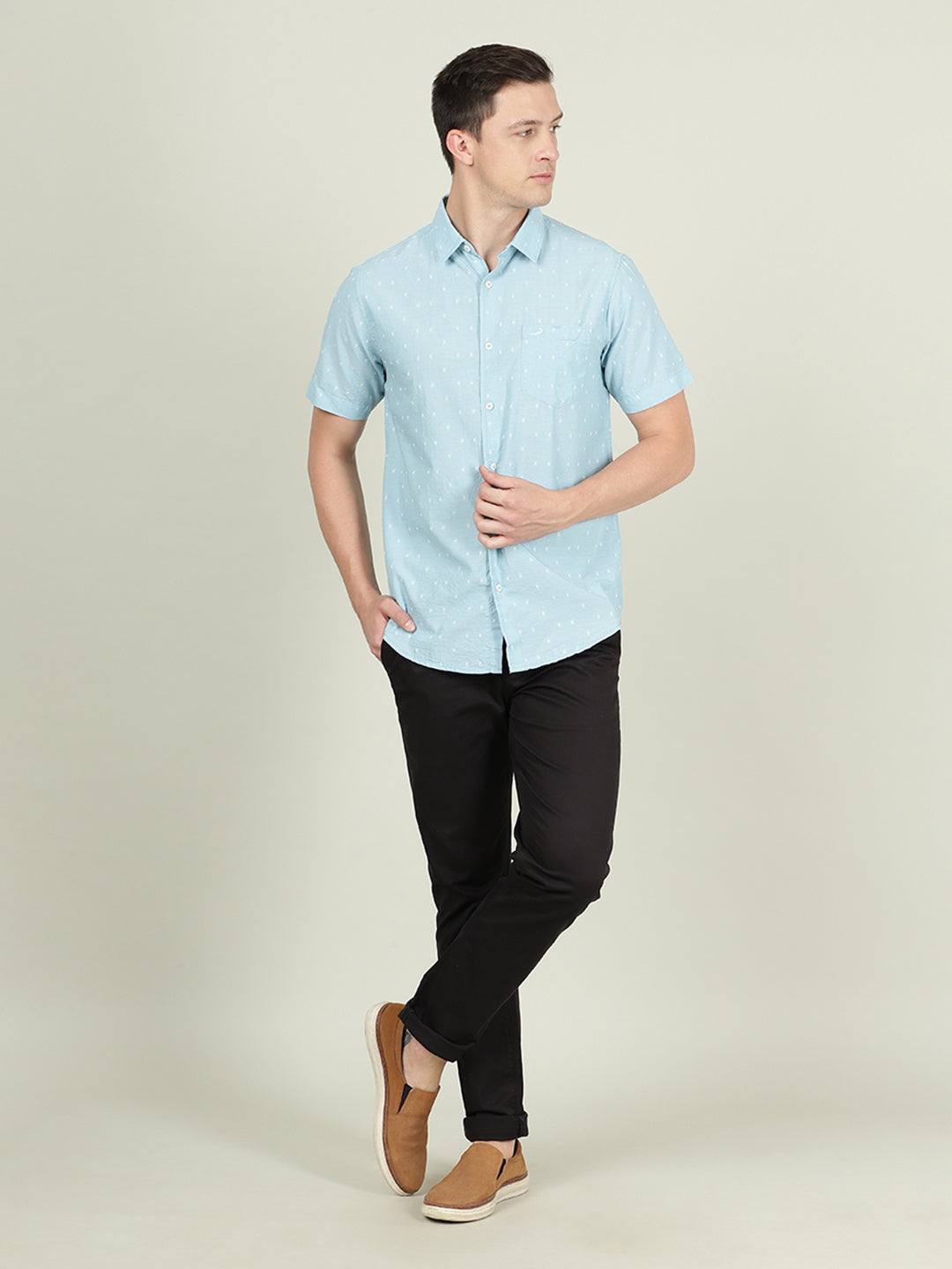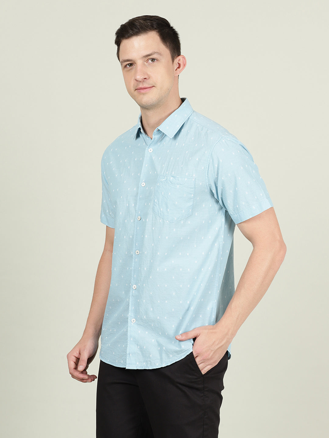 Blue Printed Half Sleeve 100% Cotton Casual Shirt