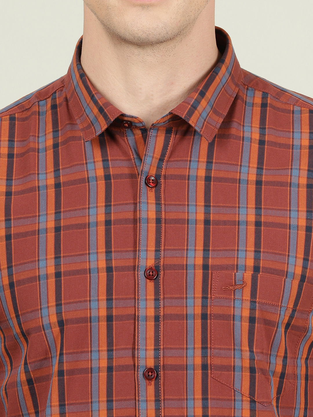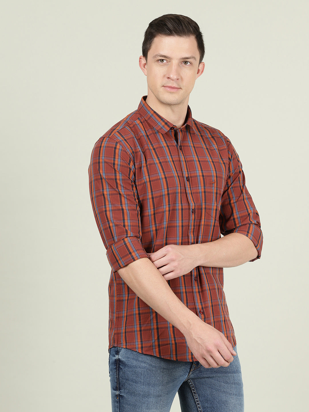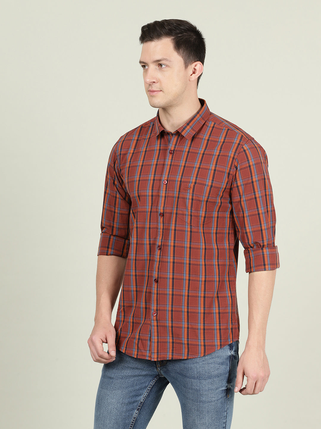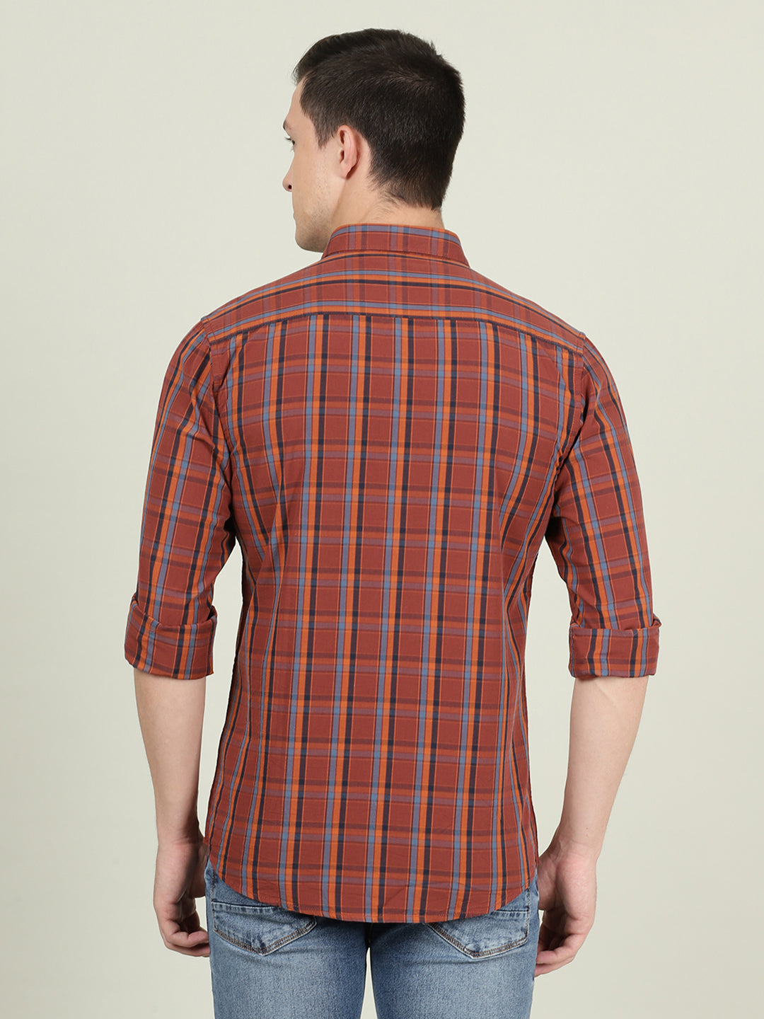 Brick Red Checked Full Sleeve 100% Cotton Casual Shirt