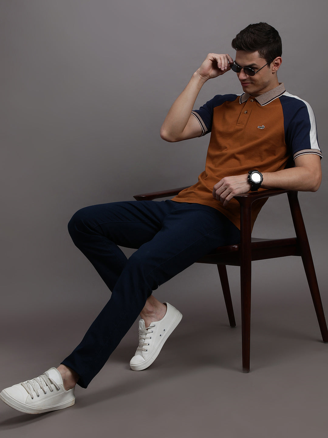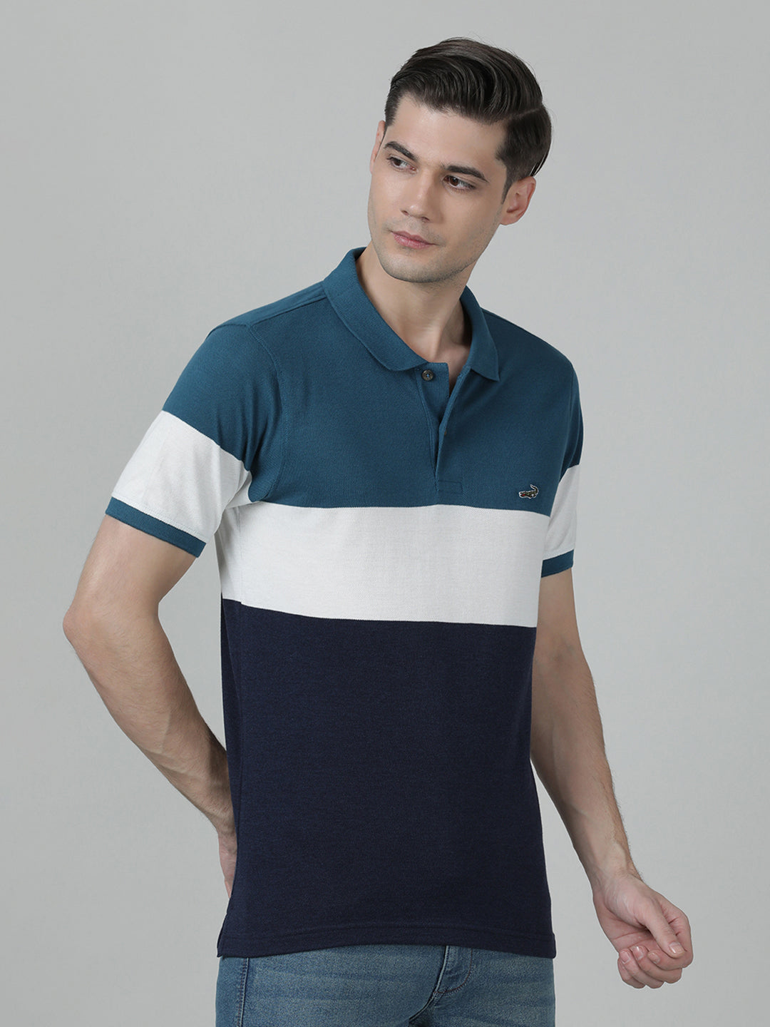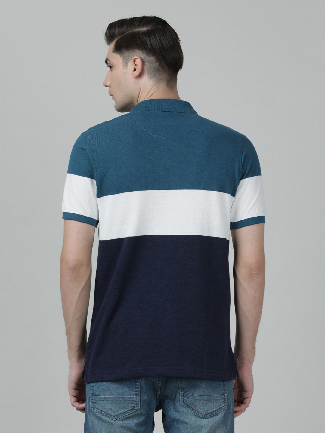 Blue Popcorn Colour Blocking Slim Fit Polo T-Shirts