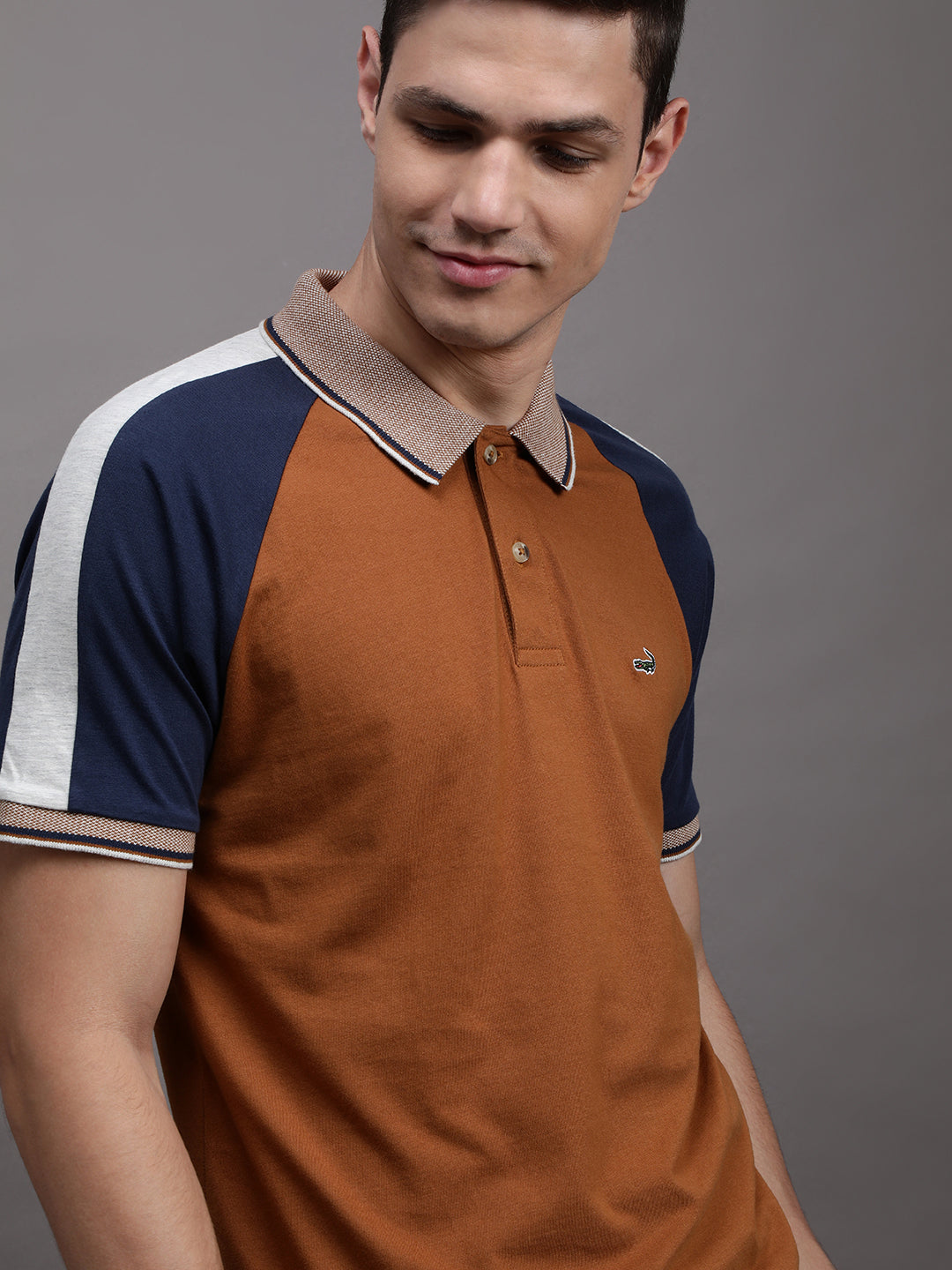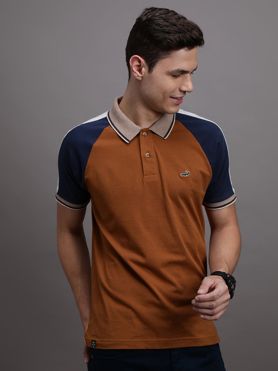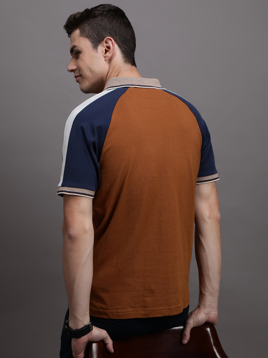 Blue Popcorn Colour Blocking Slim Fit Polo T-Shirts