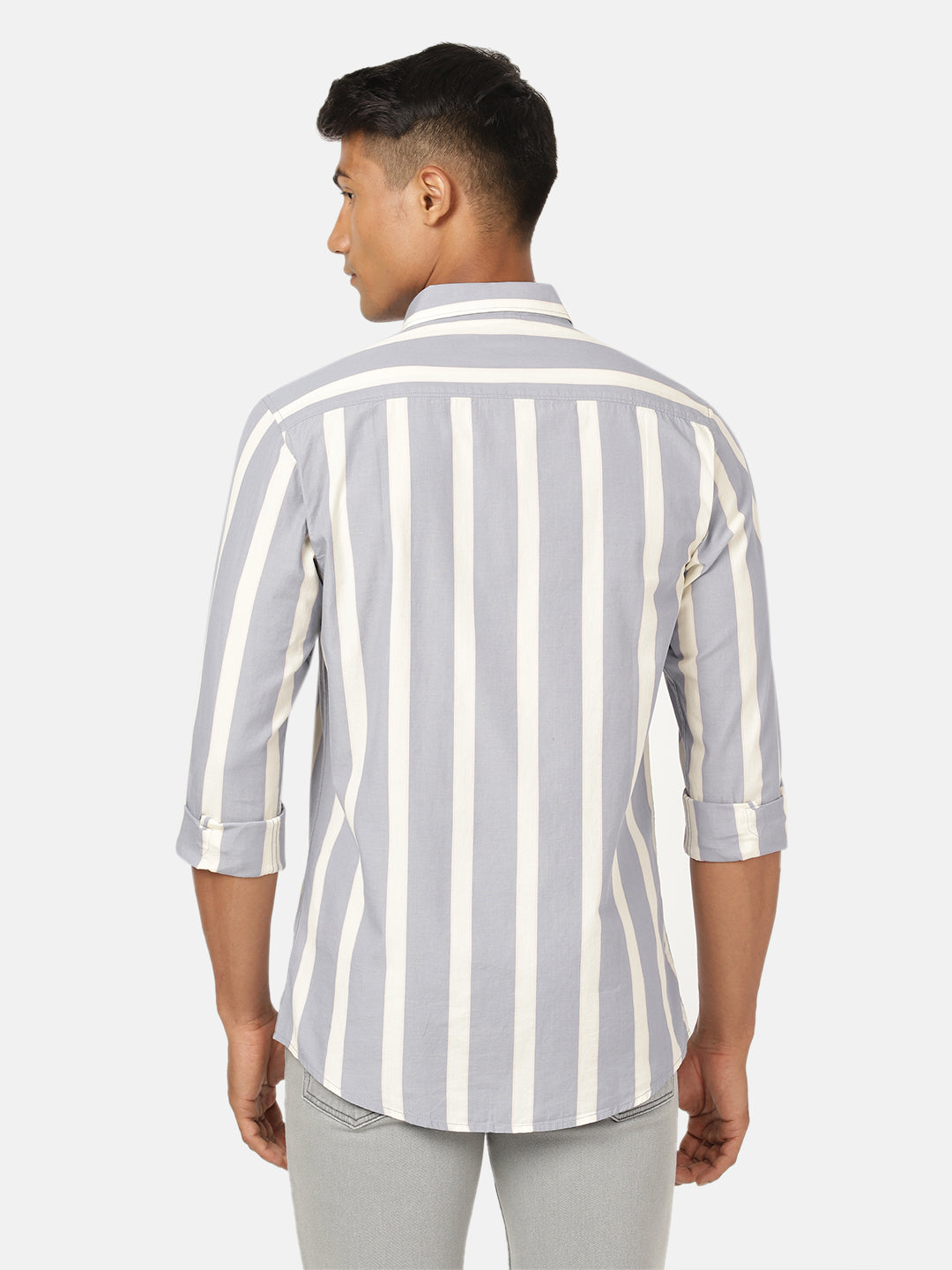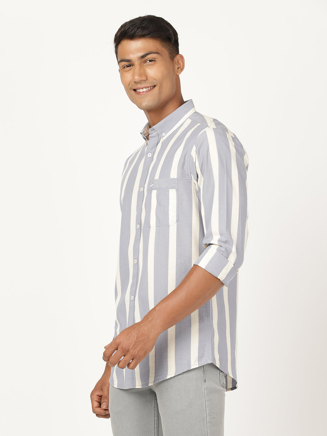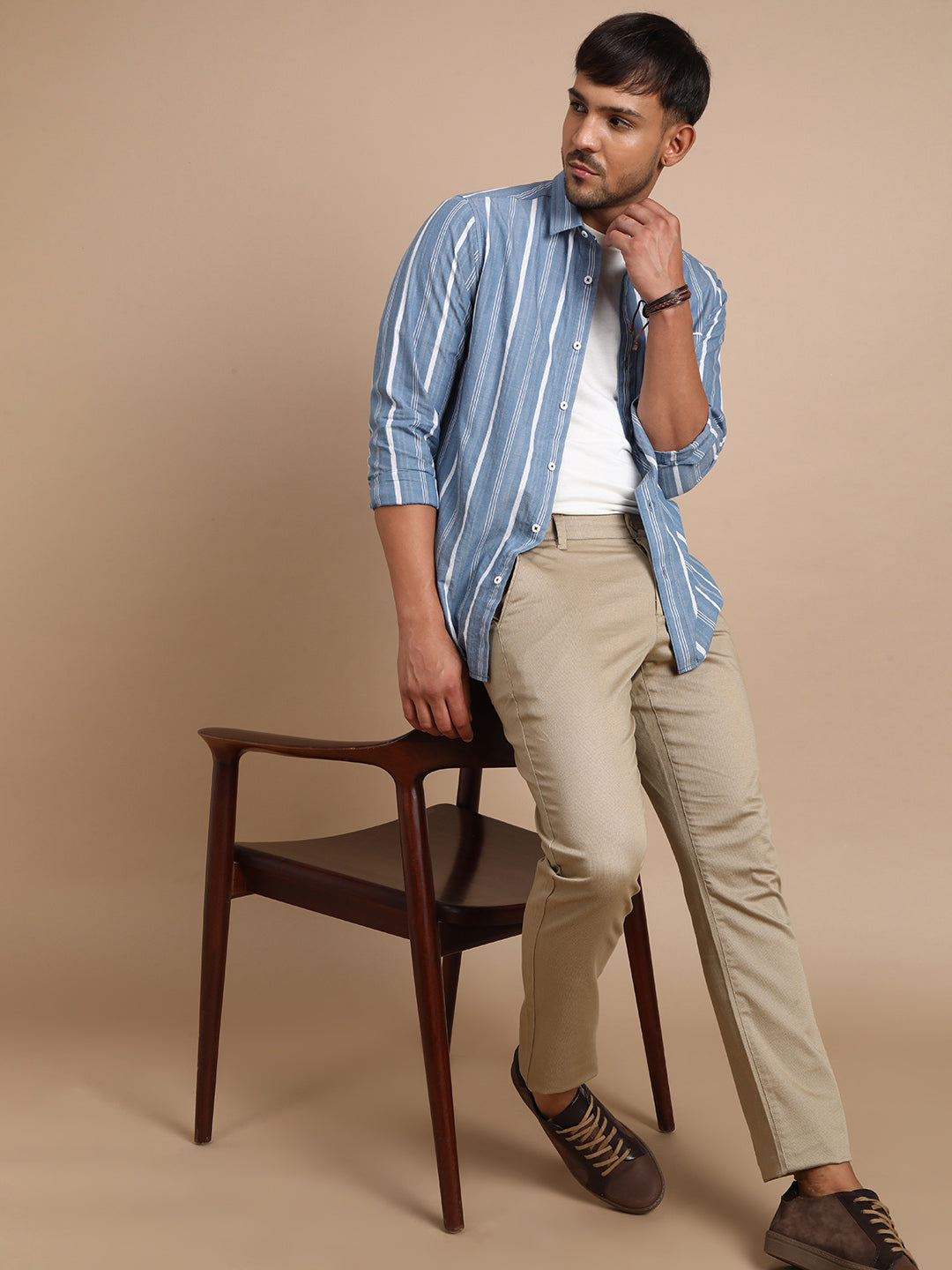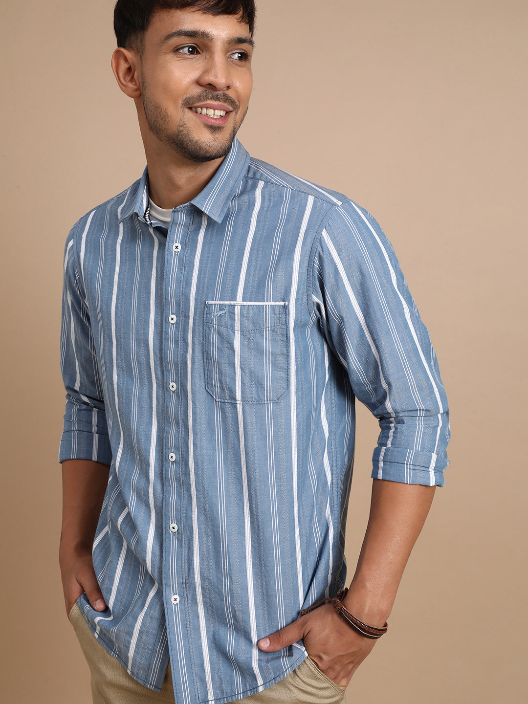 Blue Striped Full Sleeve 100% Cotton Casual Shirt