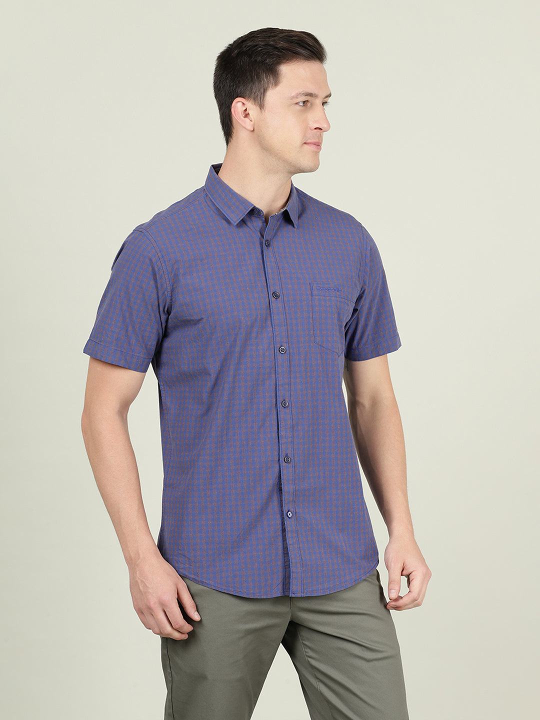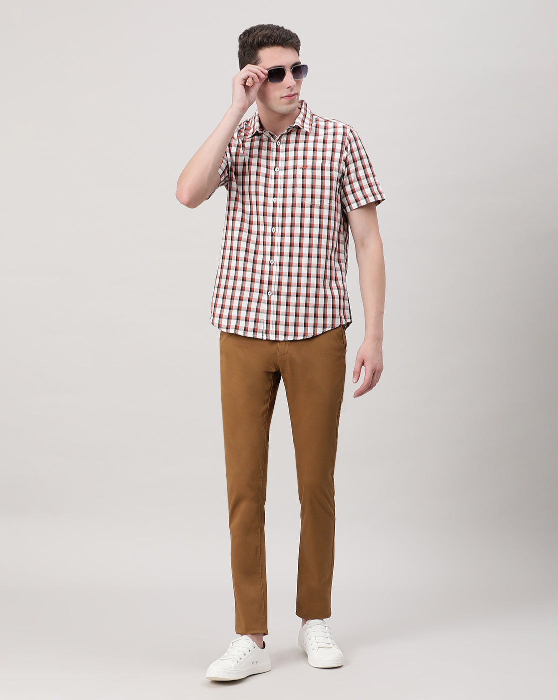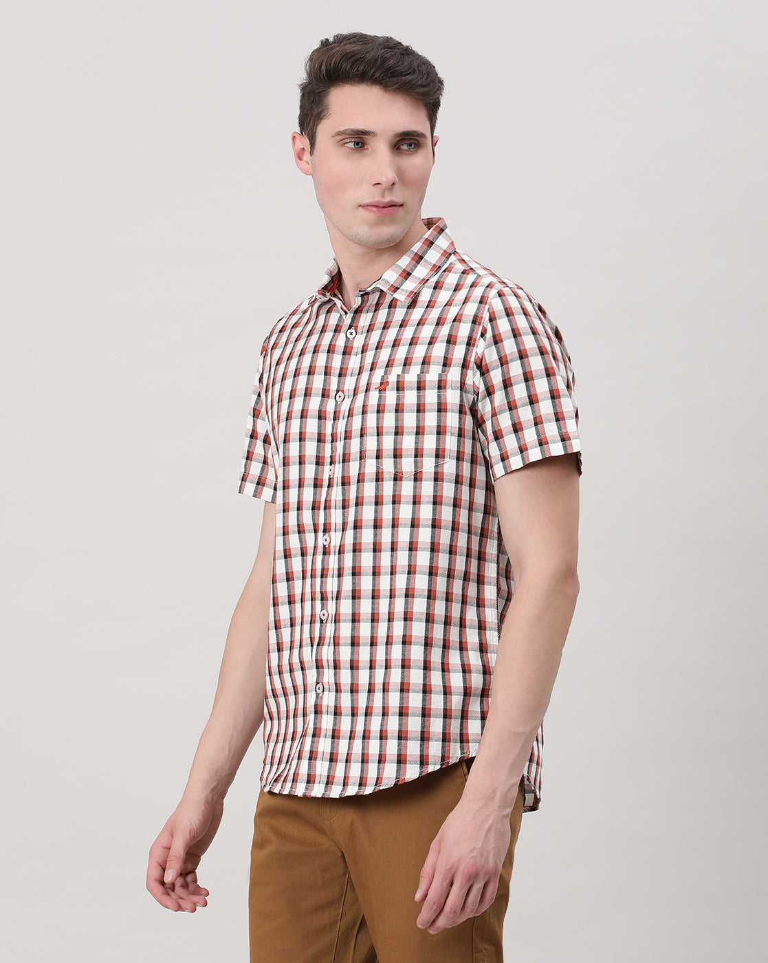 Brown Checked Half Sleeve 100% Cotton Shirt