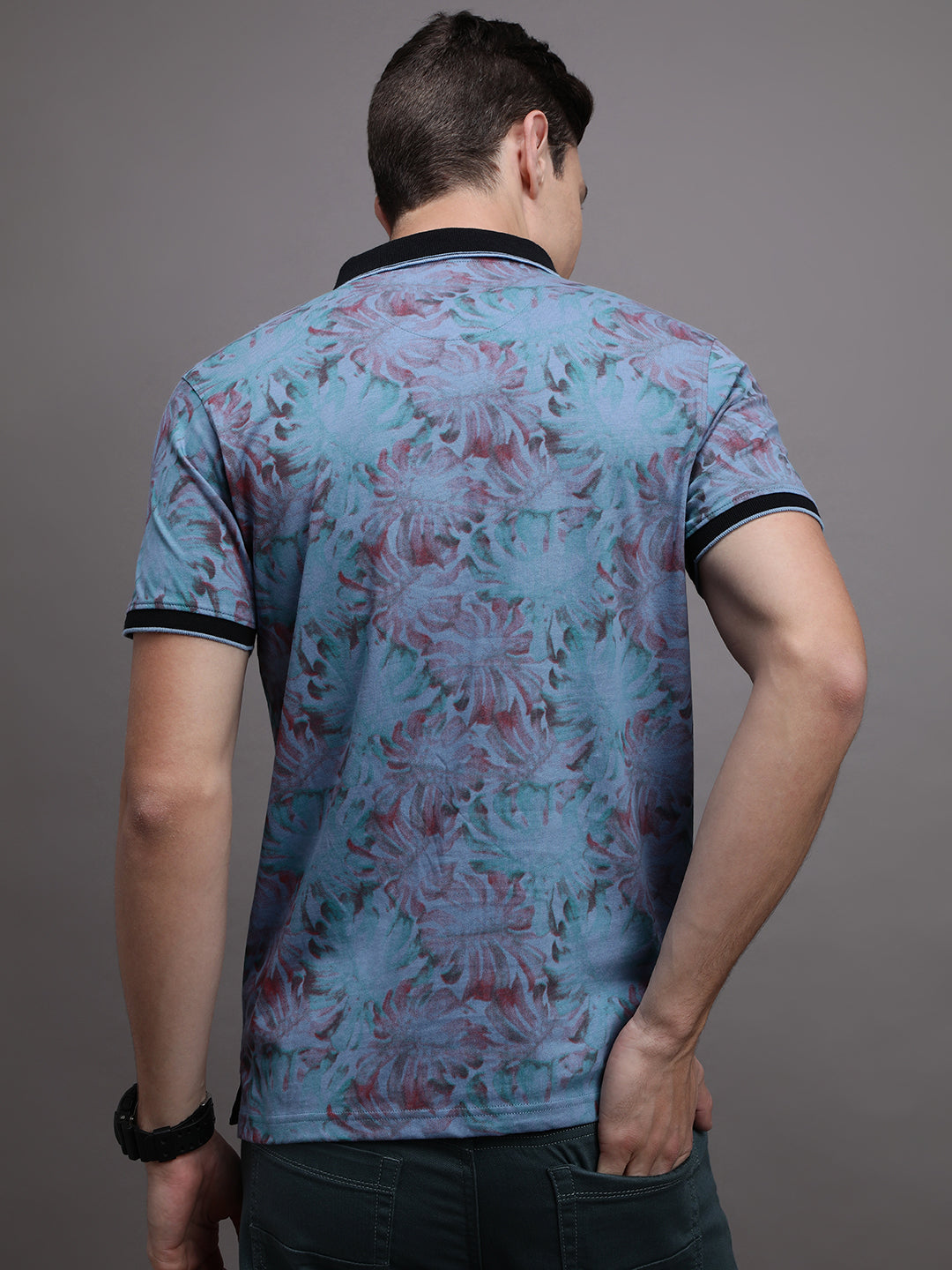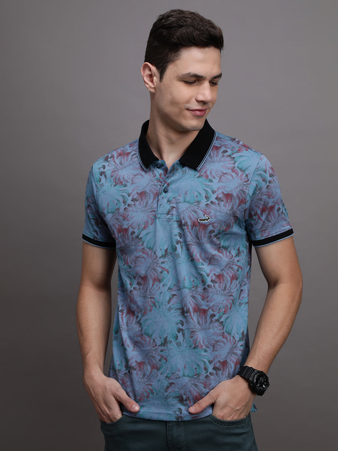 Blue Shadow Aop Slim Fit Polo Tshirts