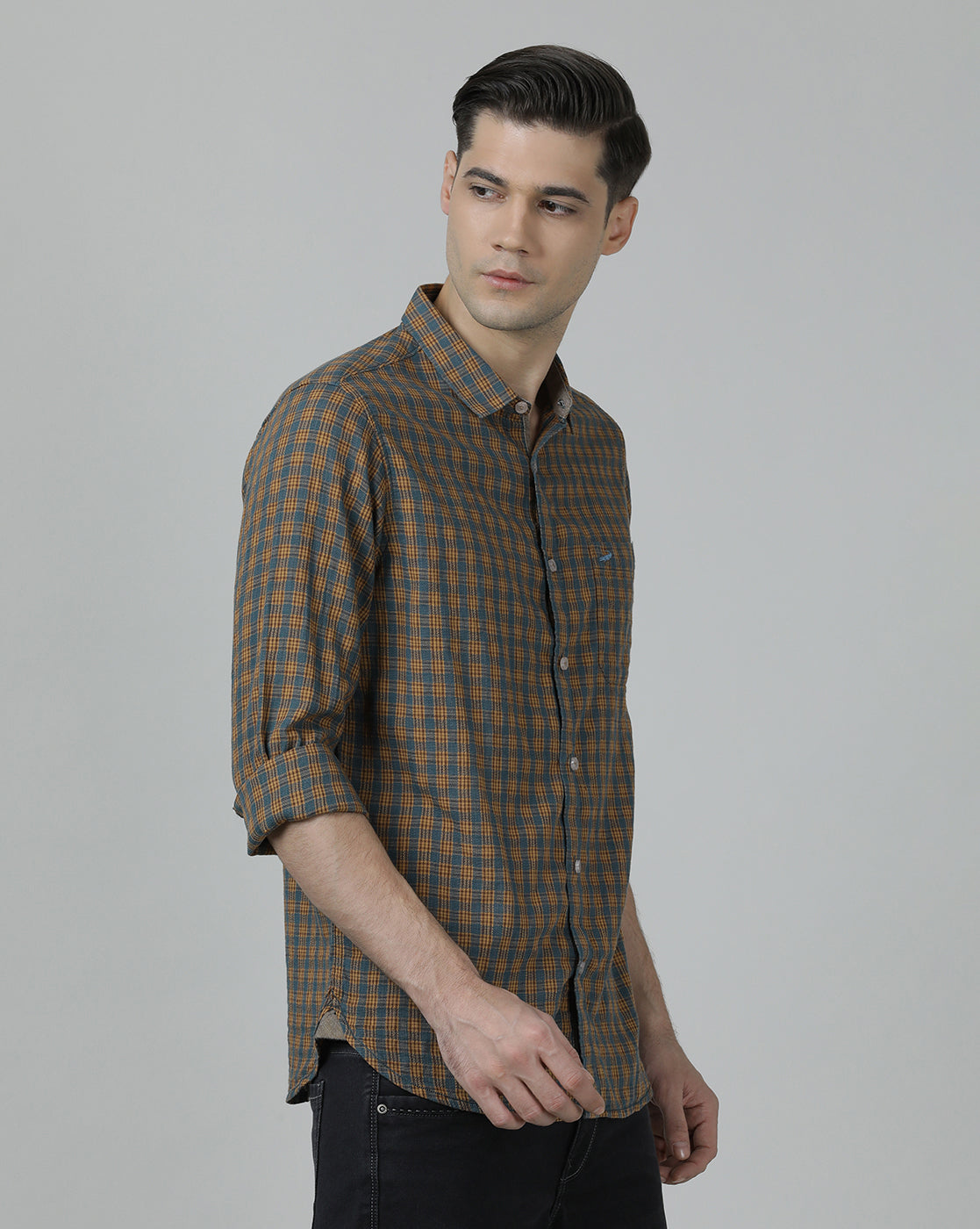 Brown and Teal Checked Full Sleeve 100% Cotton Shirt