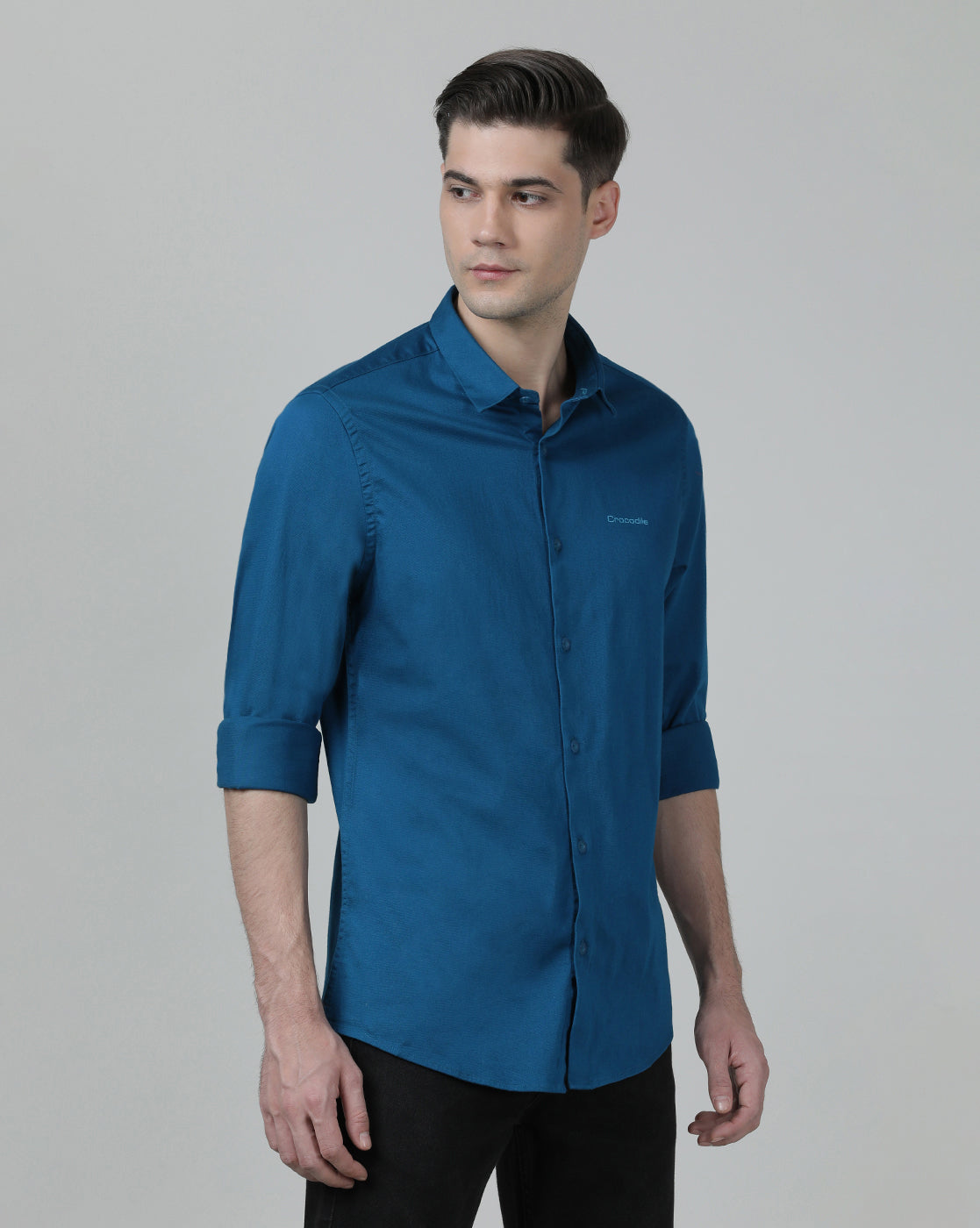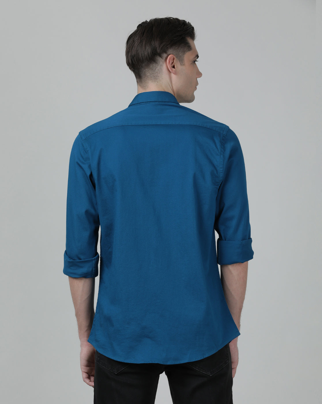 Blue Solid Full Sleeve 100% Cotton Casual Shirt