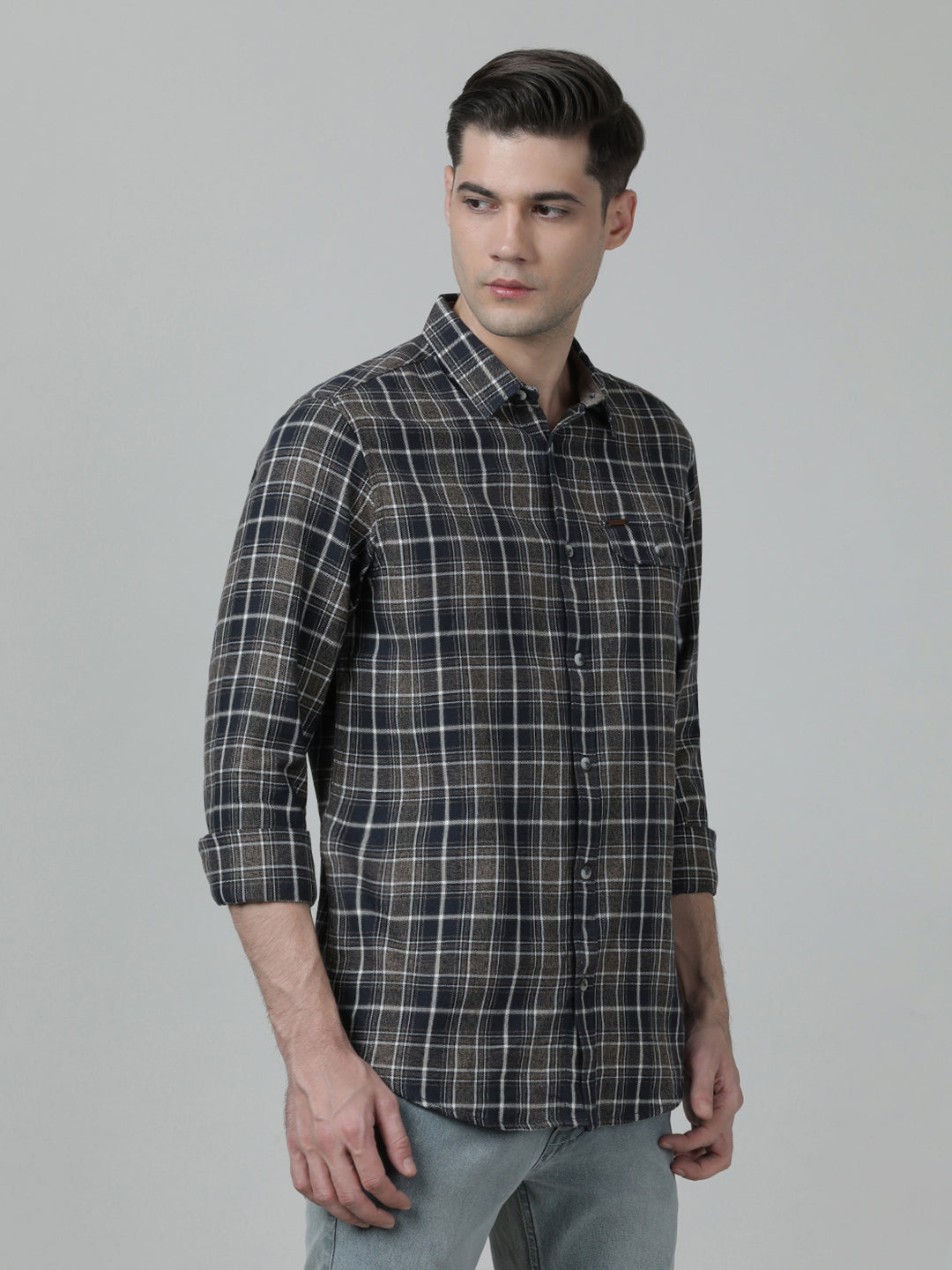Brown Crinkled Checks Chisel Cut Pocket Crispy Handfeel Comfort Fit Shirts