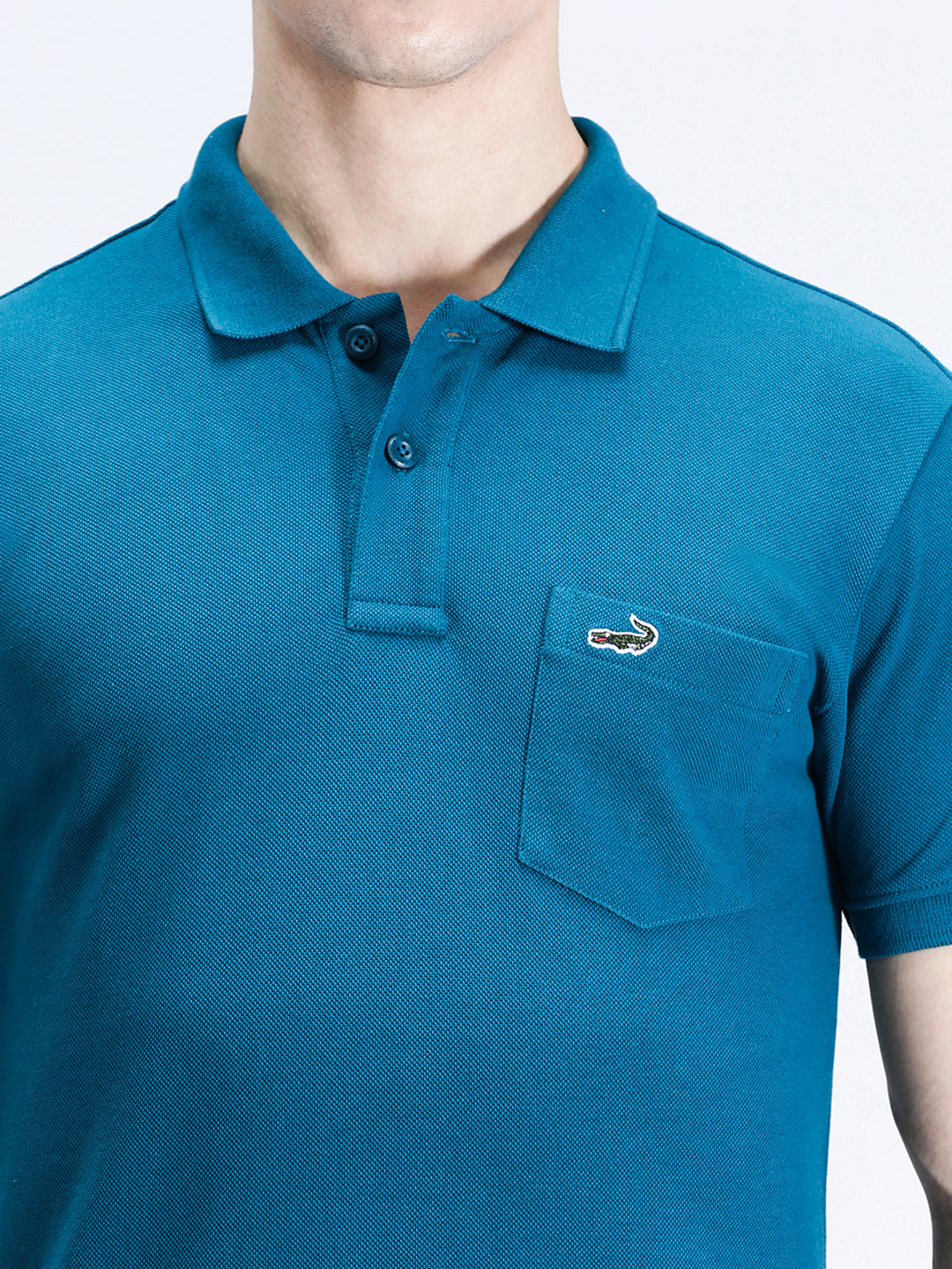 Blue Solid Polo T-Shirt Slim Fit Polo T-Shirts