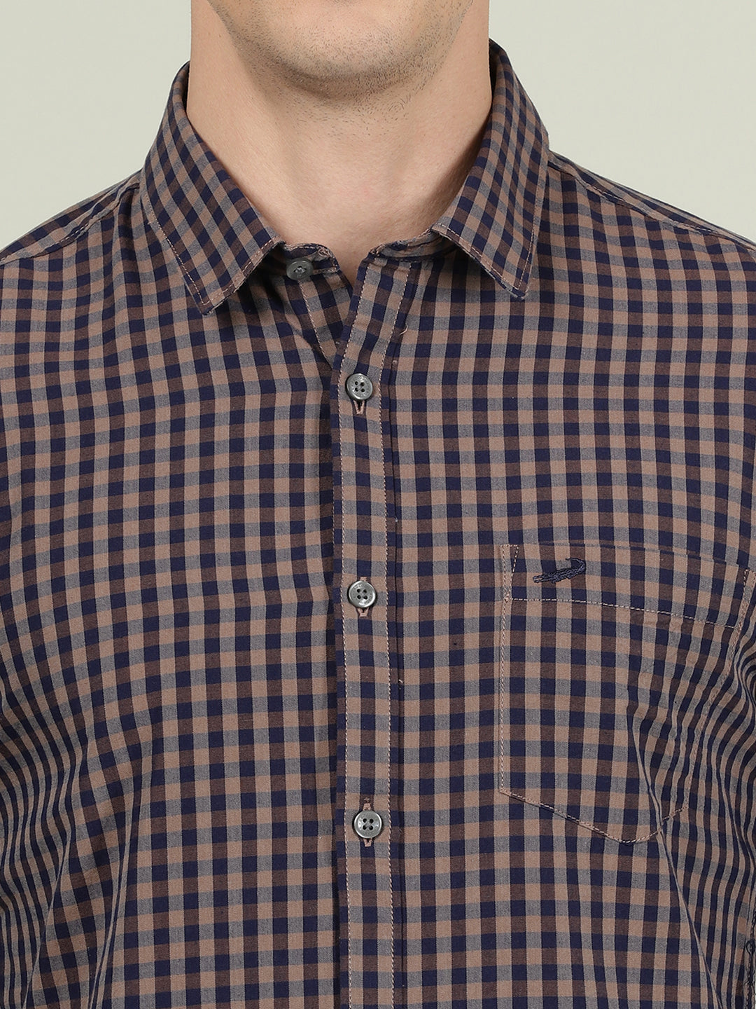 Brown Checked Full Sleeve 100% Cotton Casual Shirt