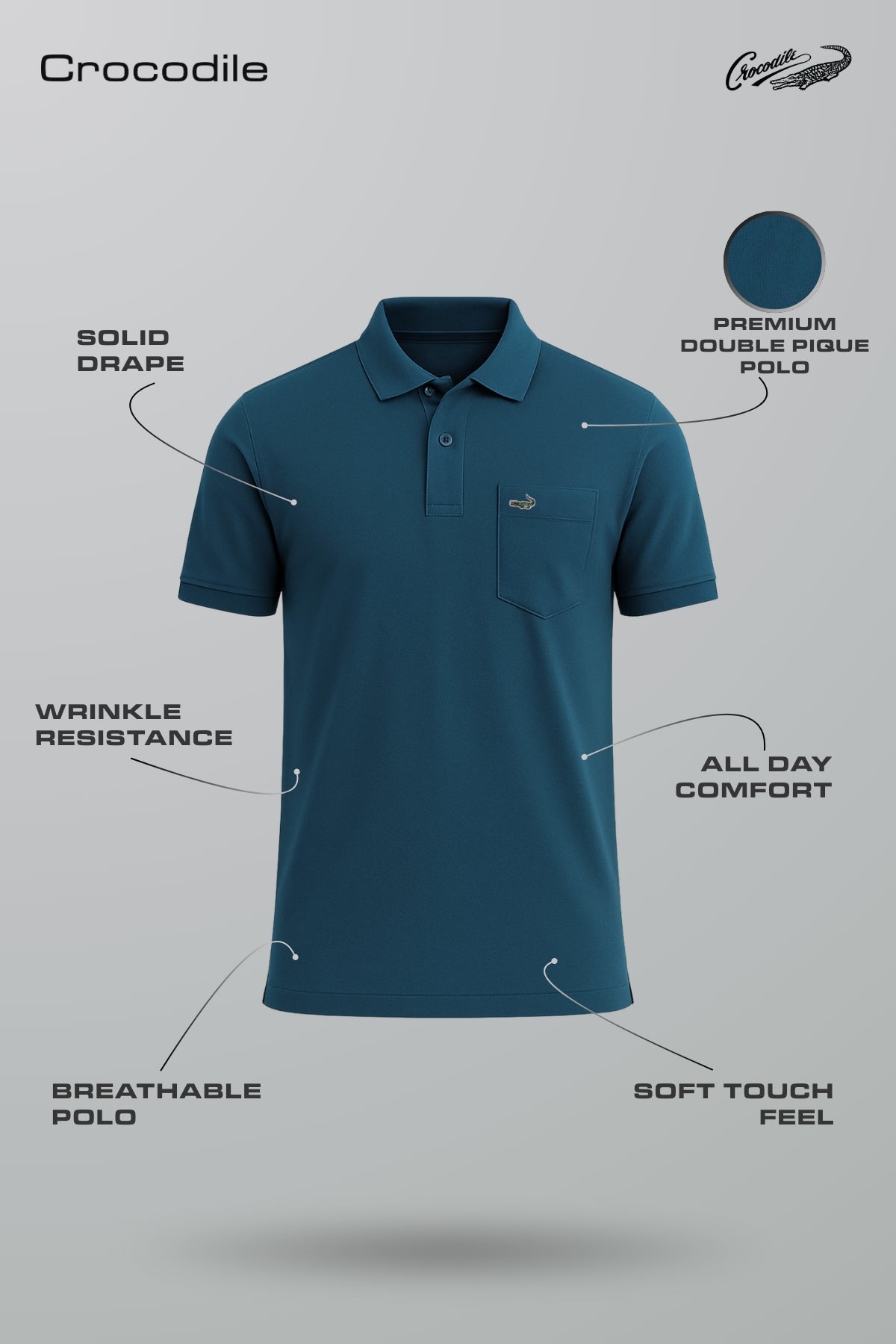 Blue Yarn -Dyed Polo T-Shirt Comfort Fit Polo T-Shirts