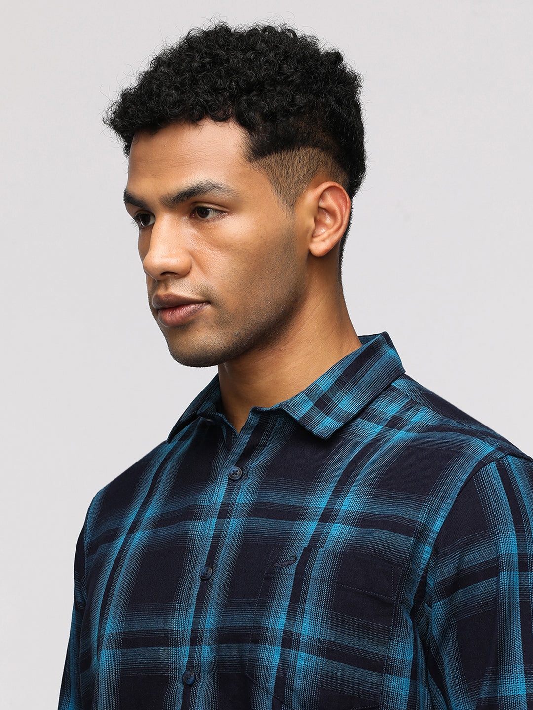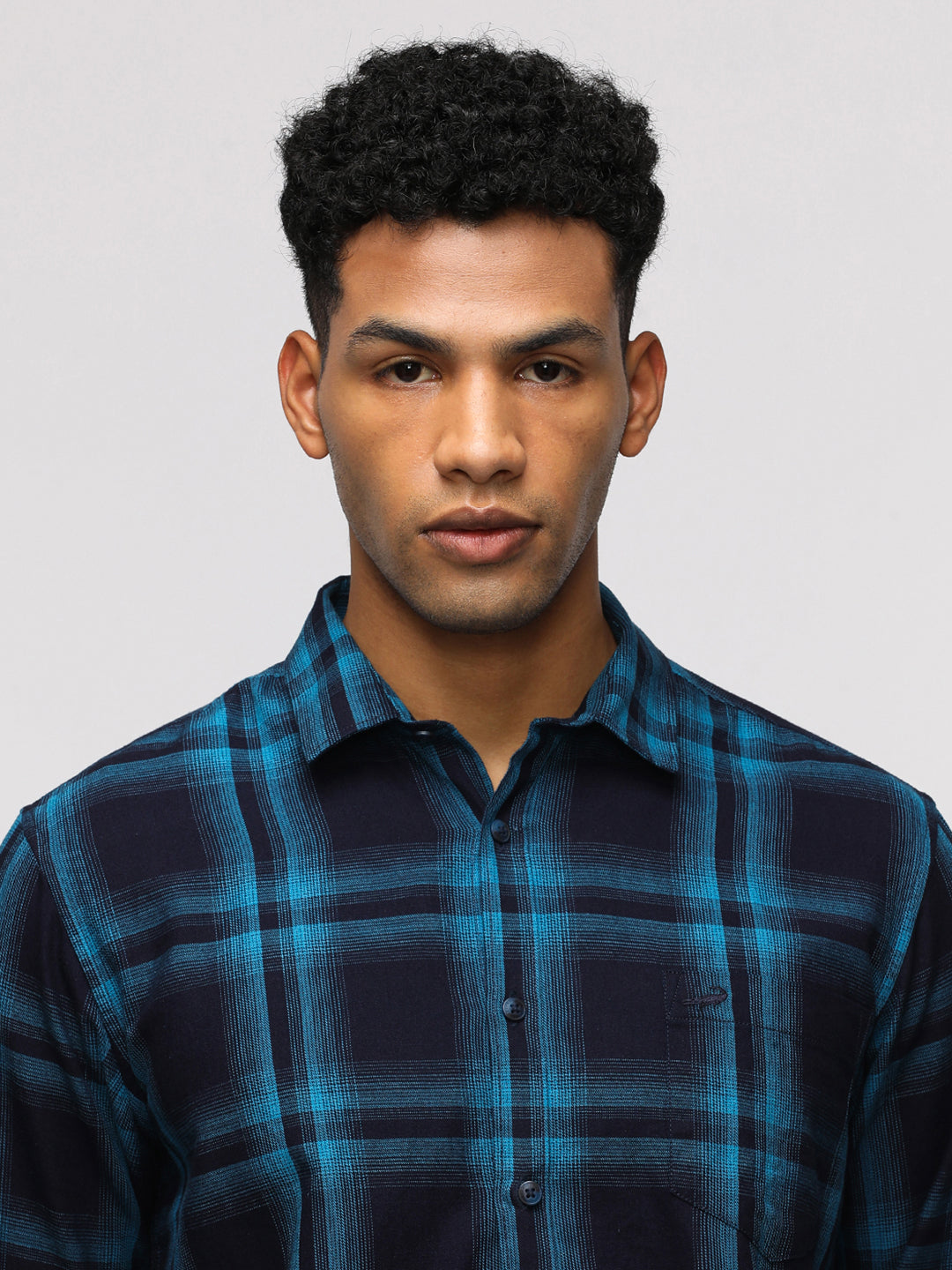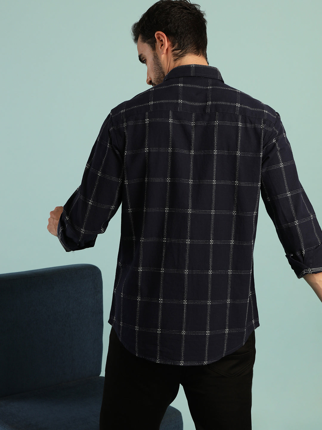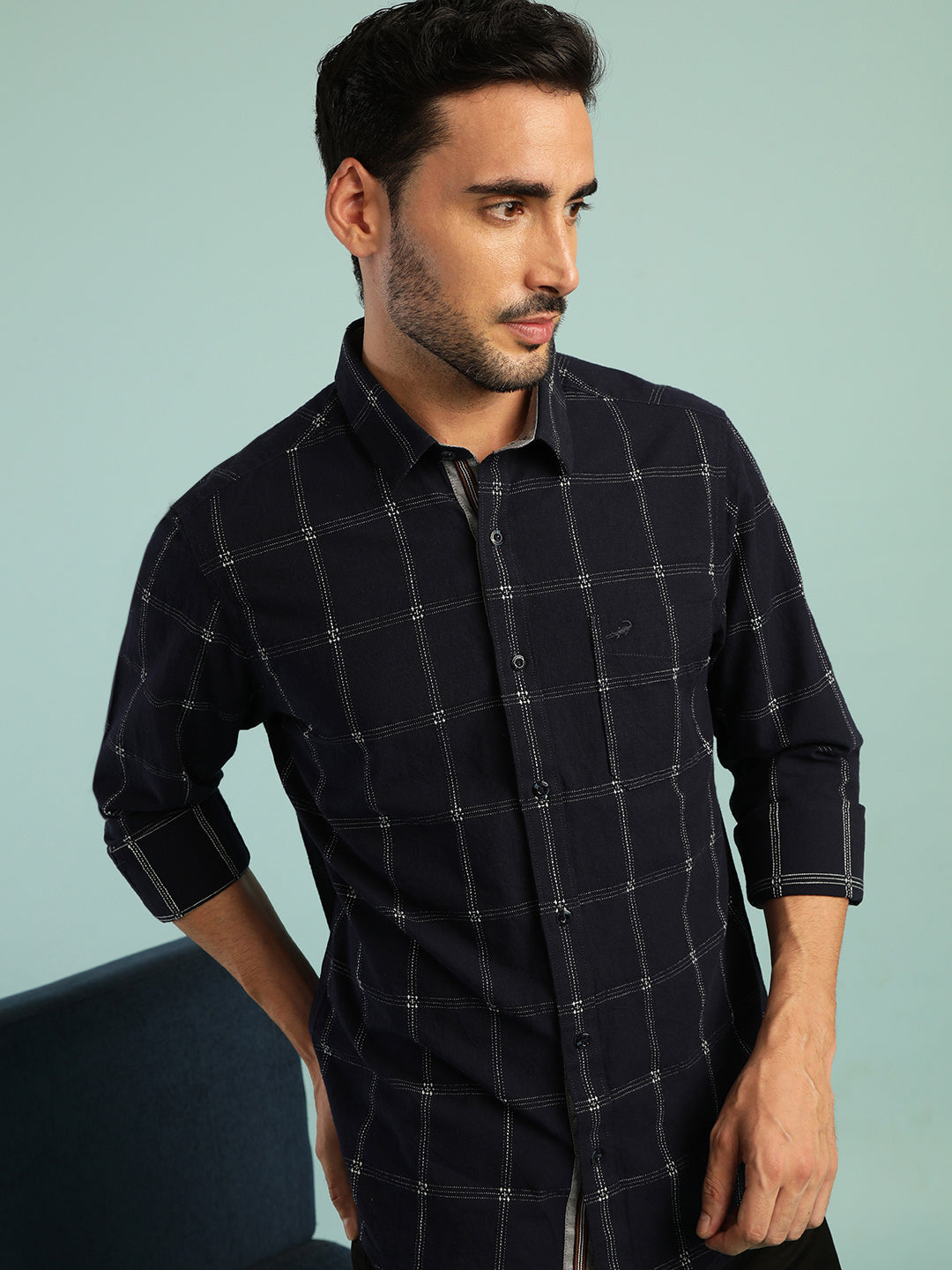 Checked Navy Full Sleeve 100% Cotton Shirt