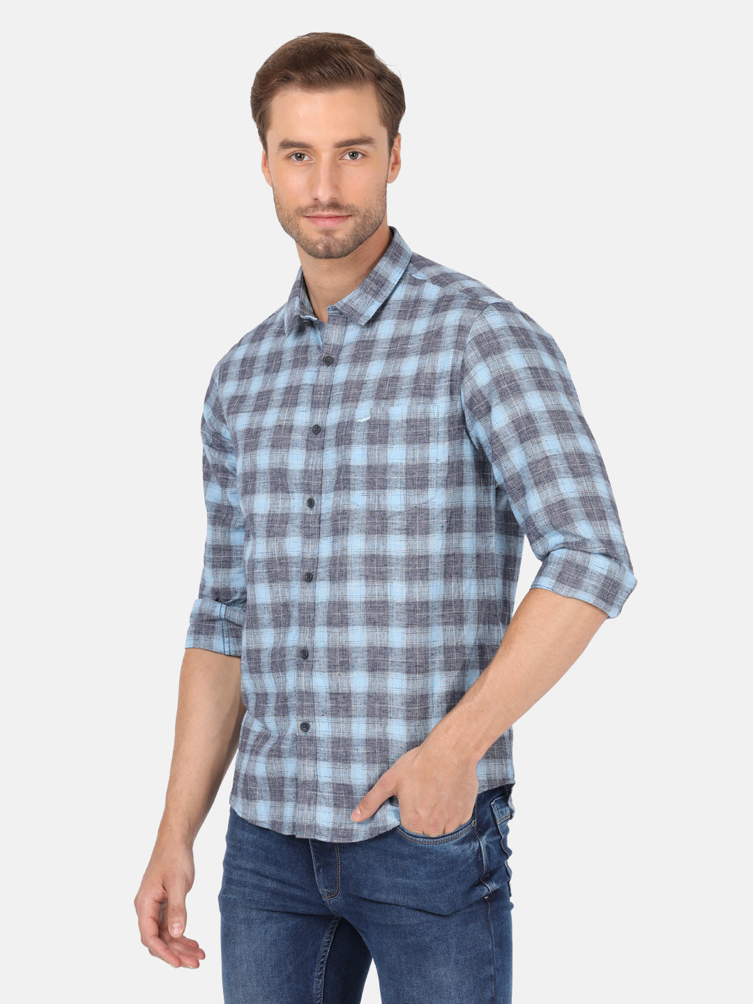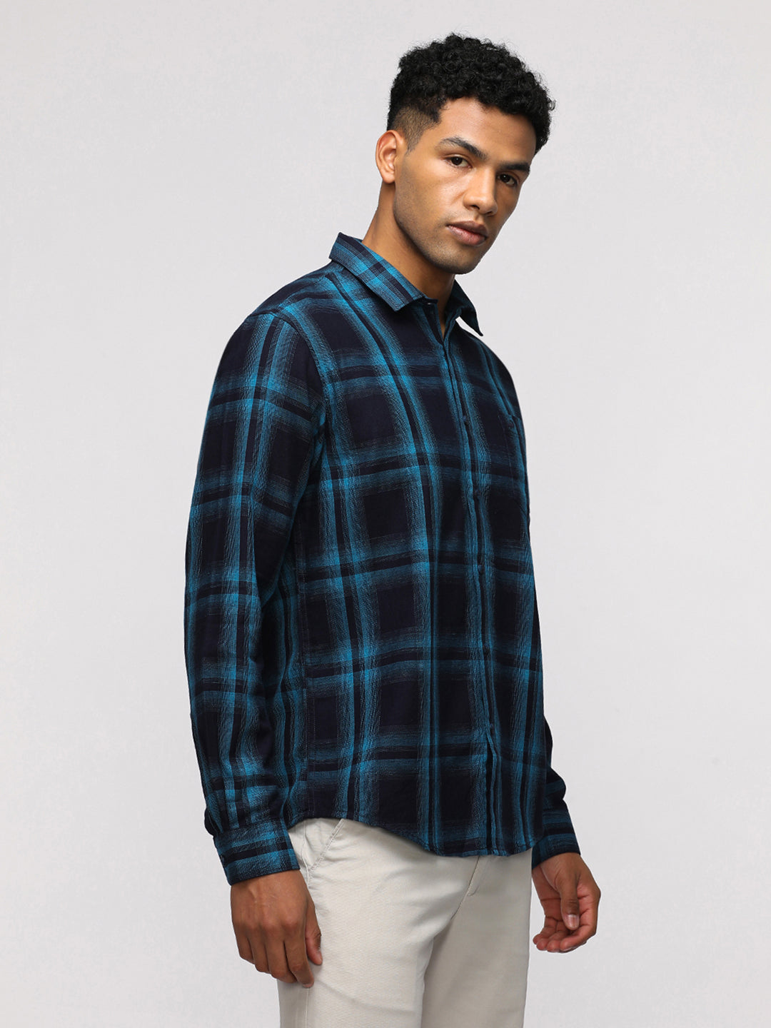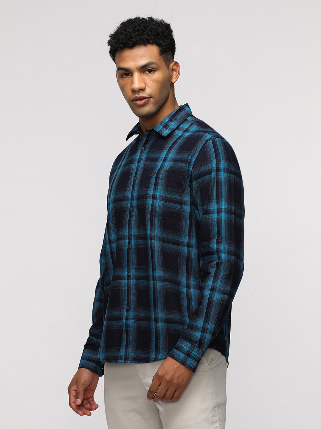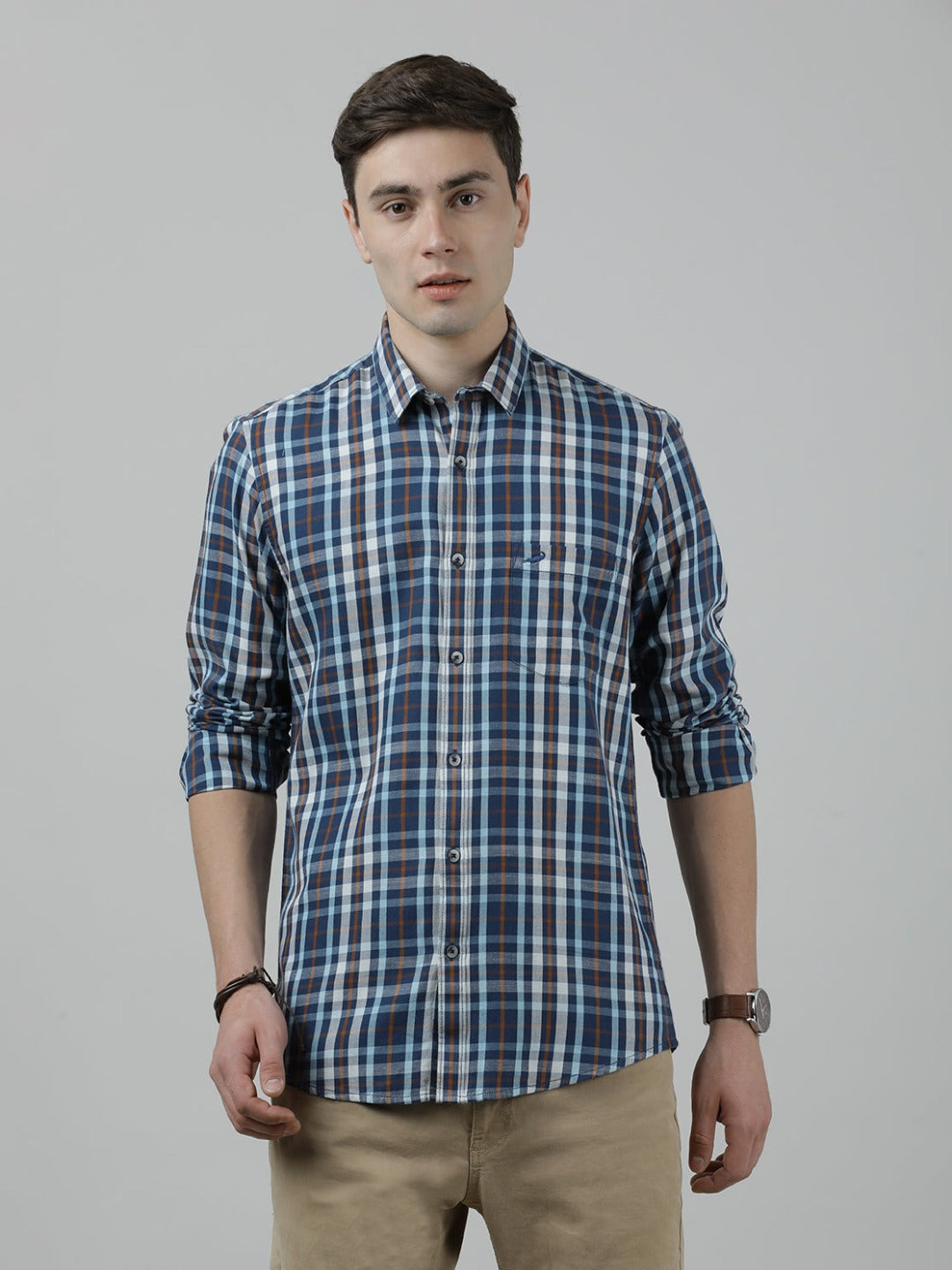 Checked Navy Full Sleeve 100% Cotton Shirt