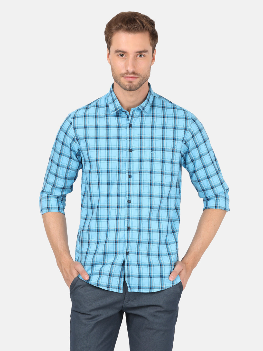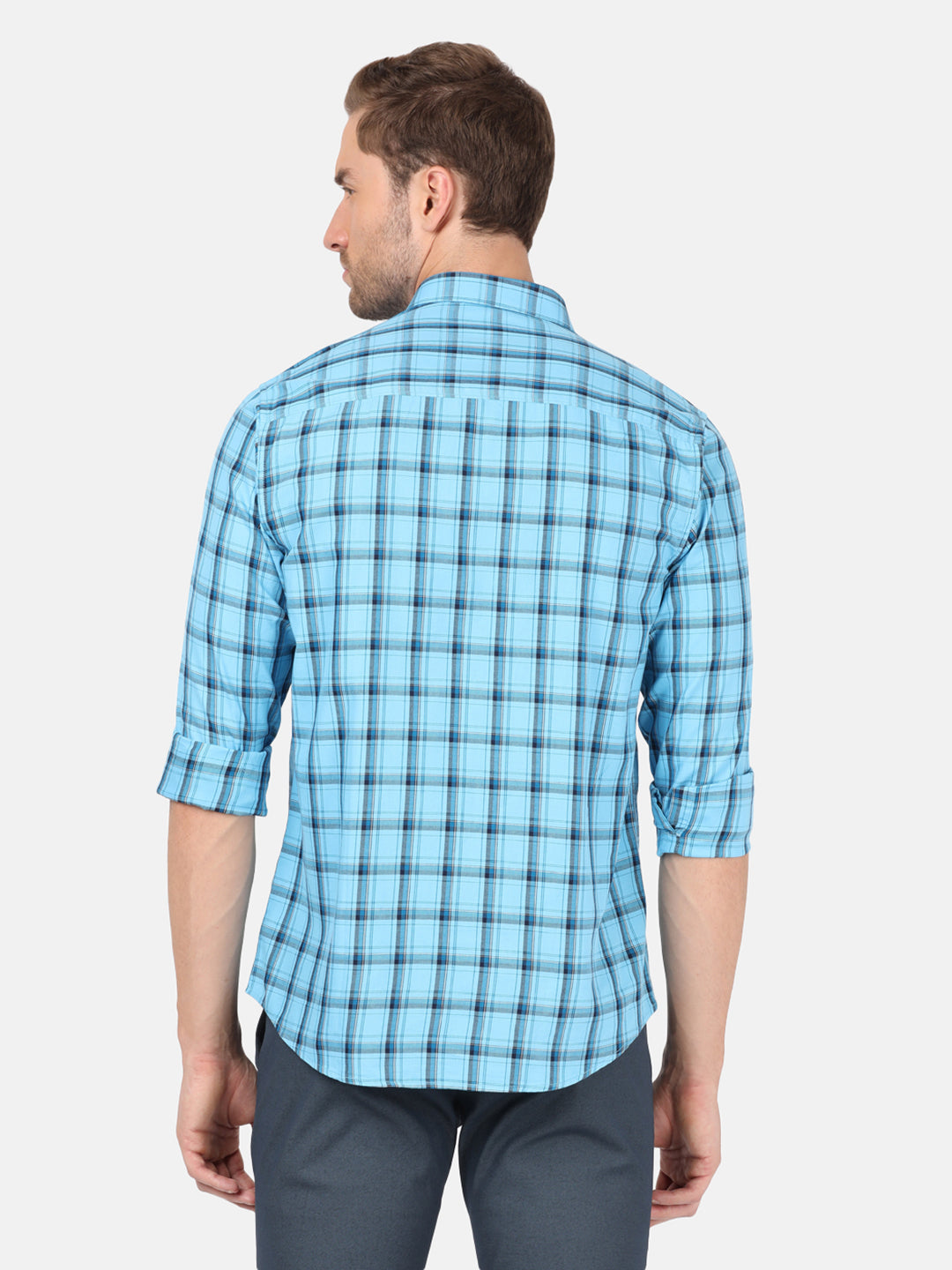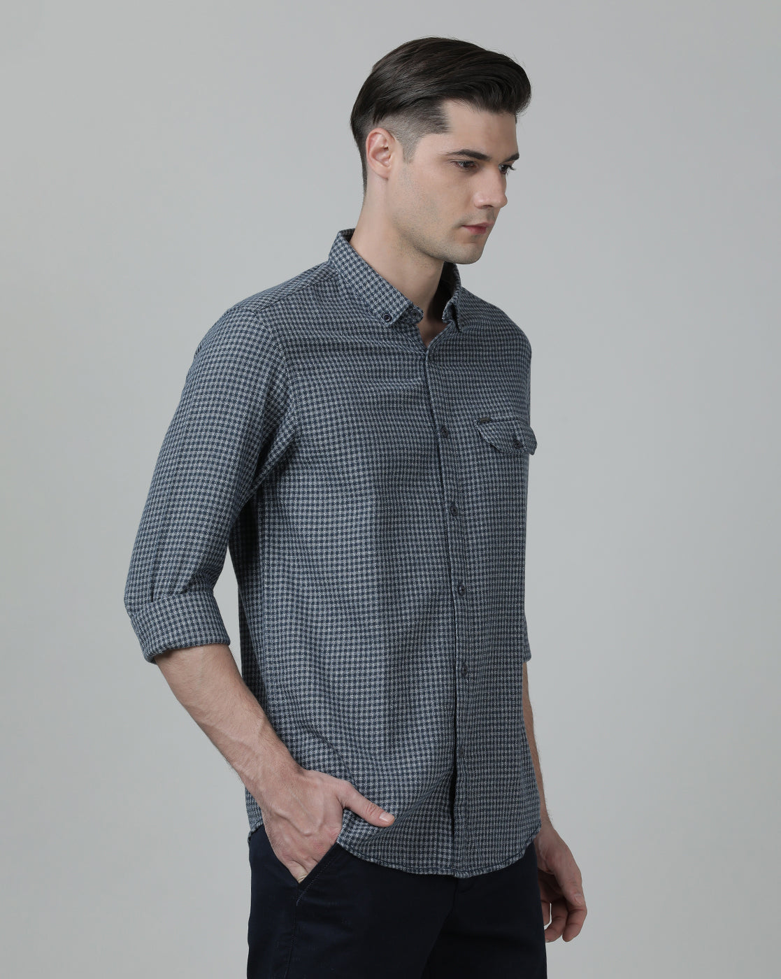 Checked Navy Full Sleeve 100% Cotton Casual Shirt
