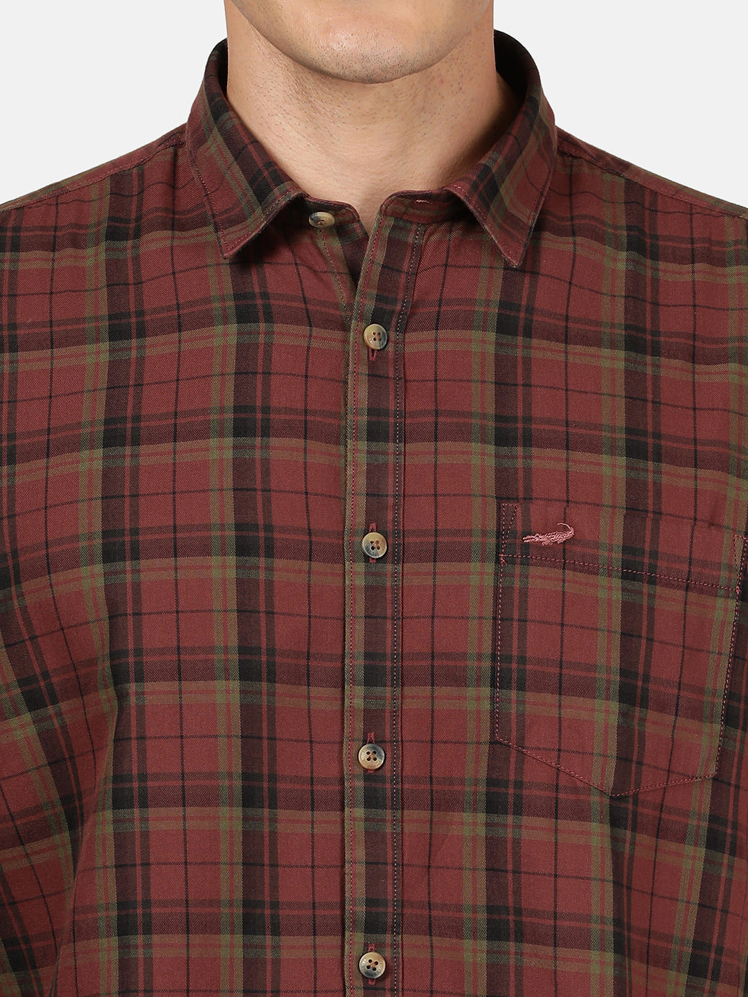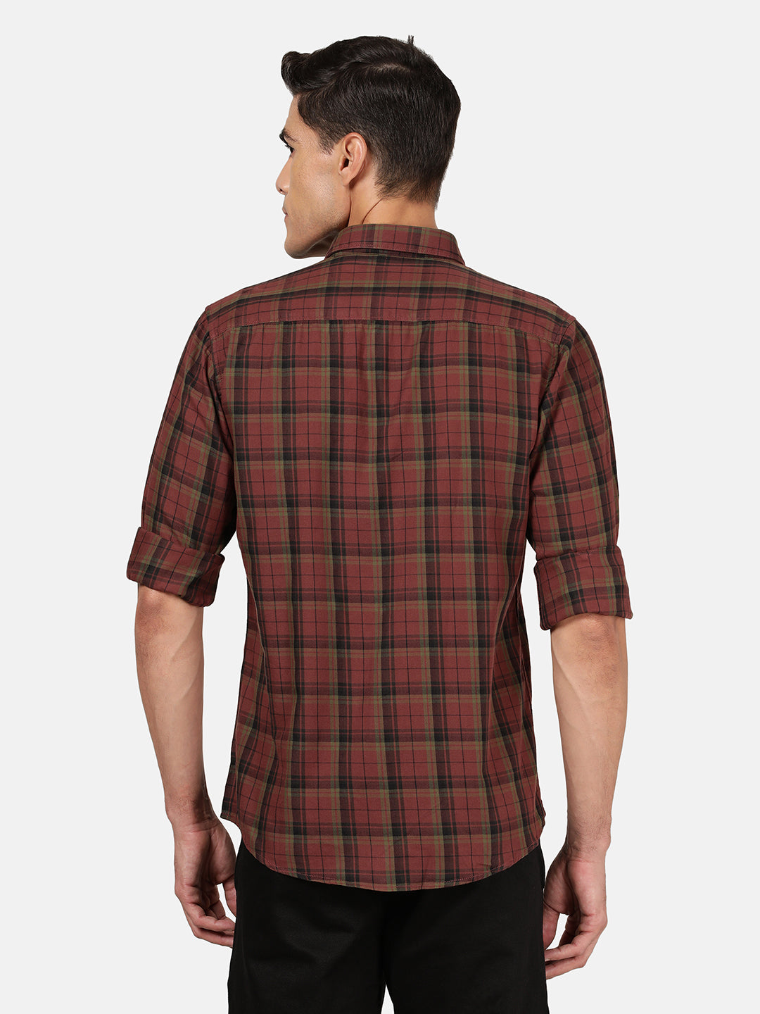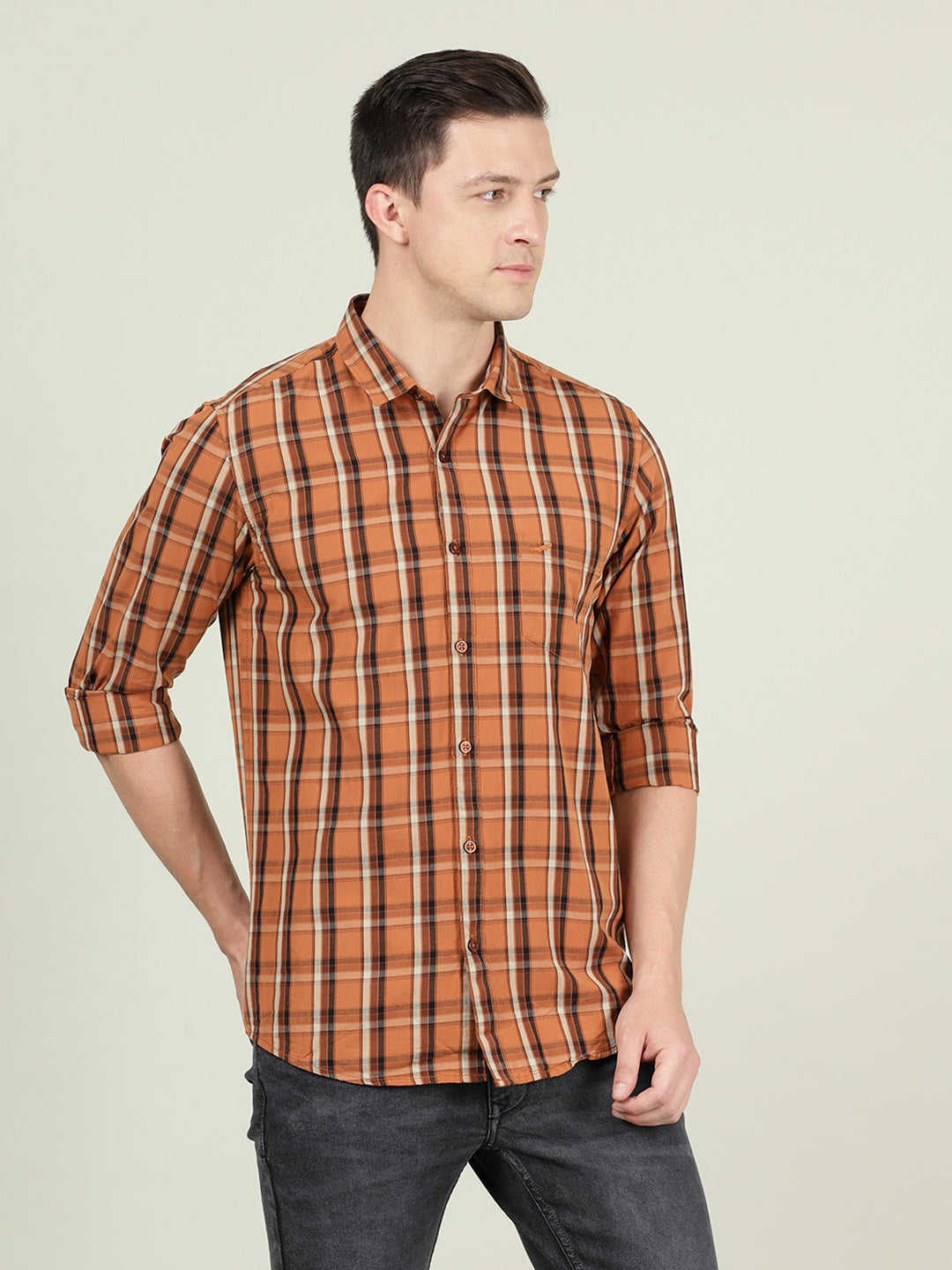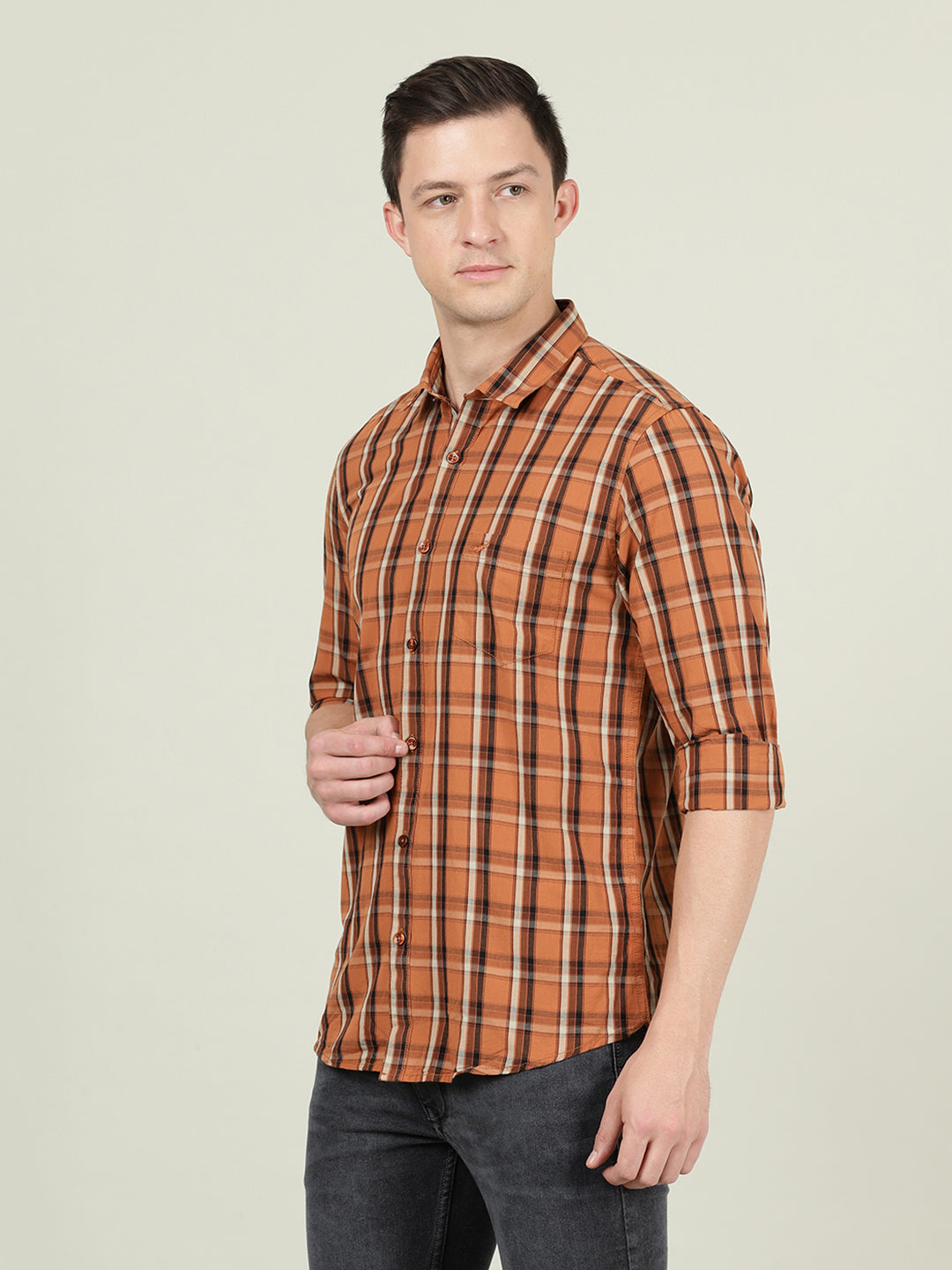 Copper Brown Checked Full Sleeve 100% Cotton Shirt