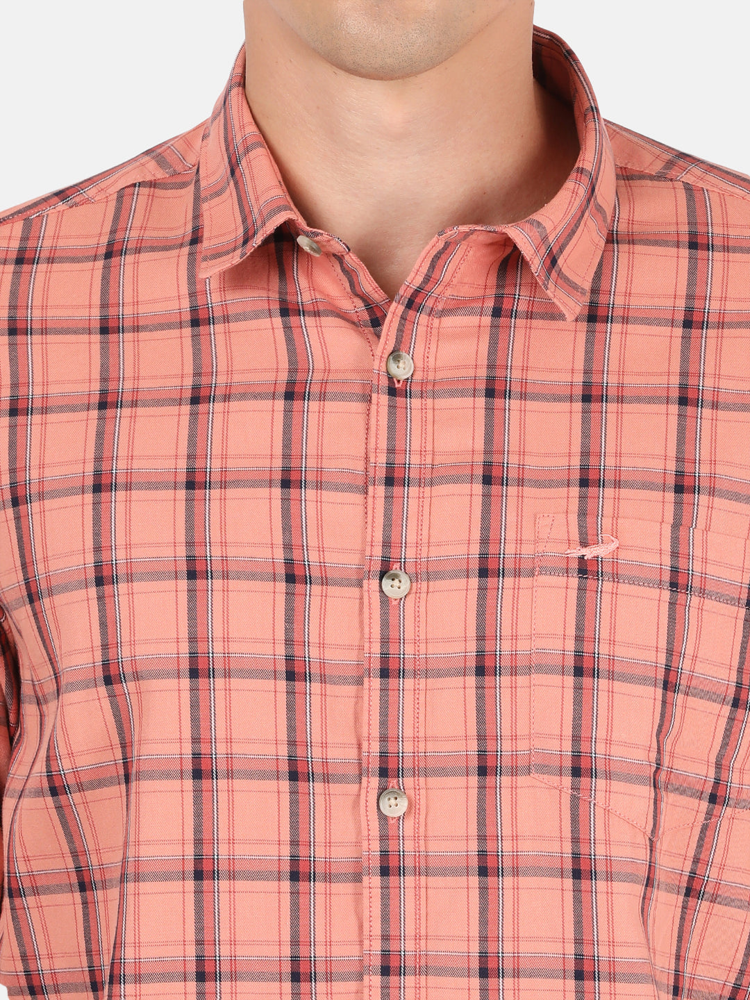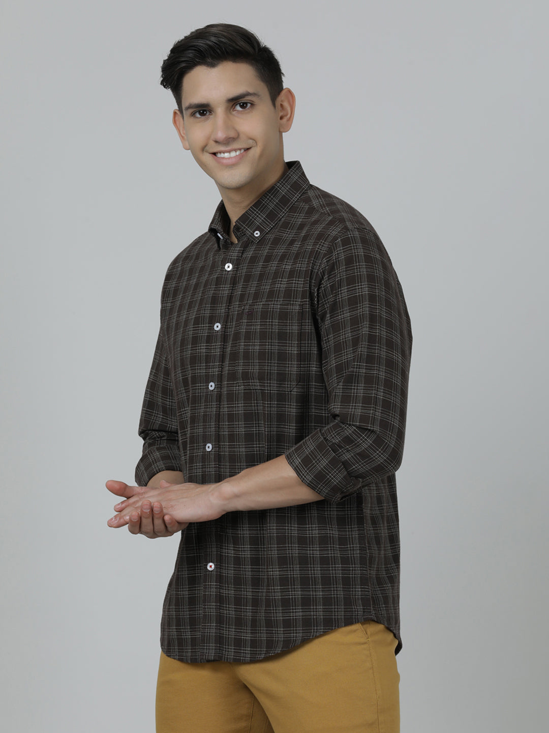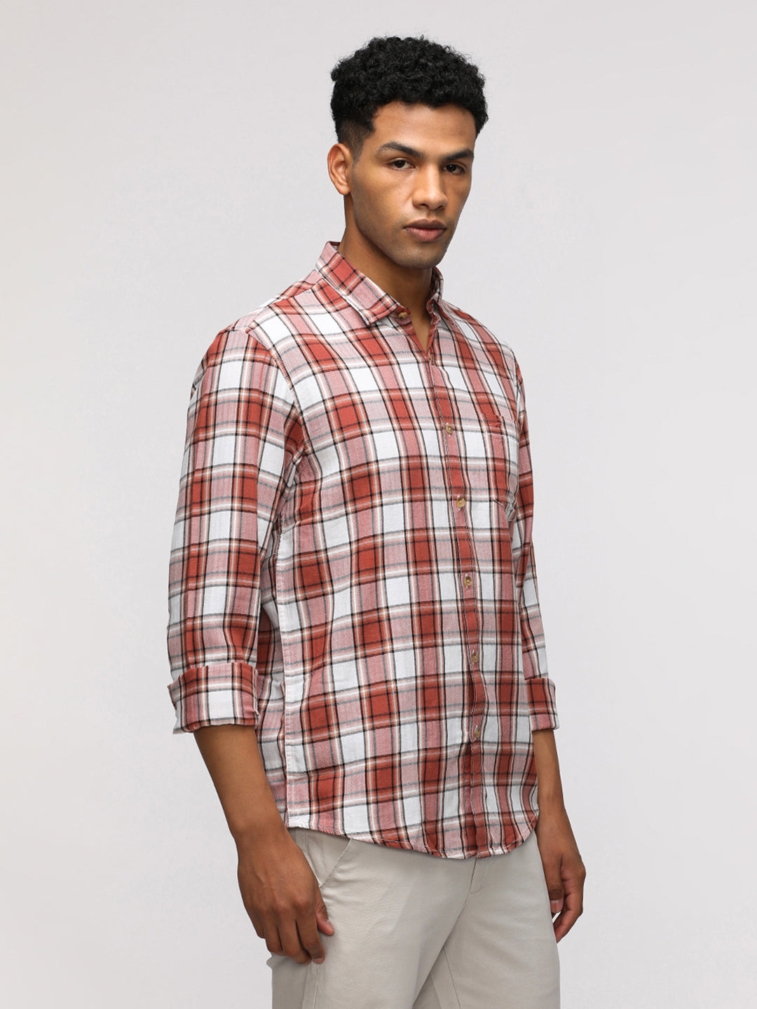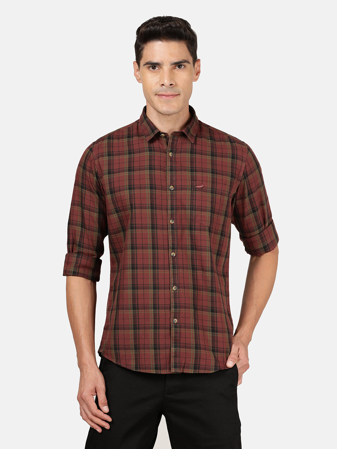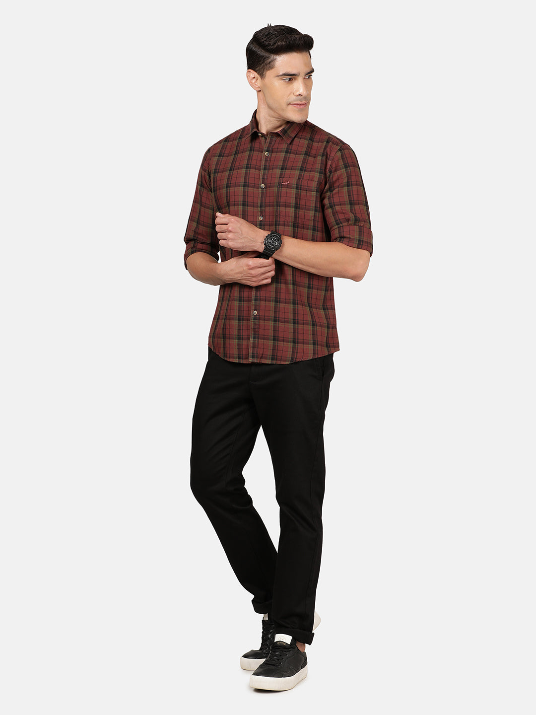 Copper Brown Checked Full Sleeve 100% Cotton Shirt