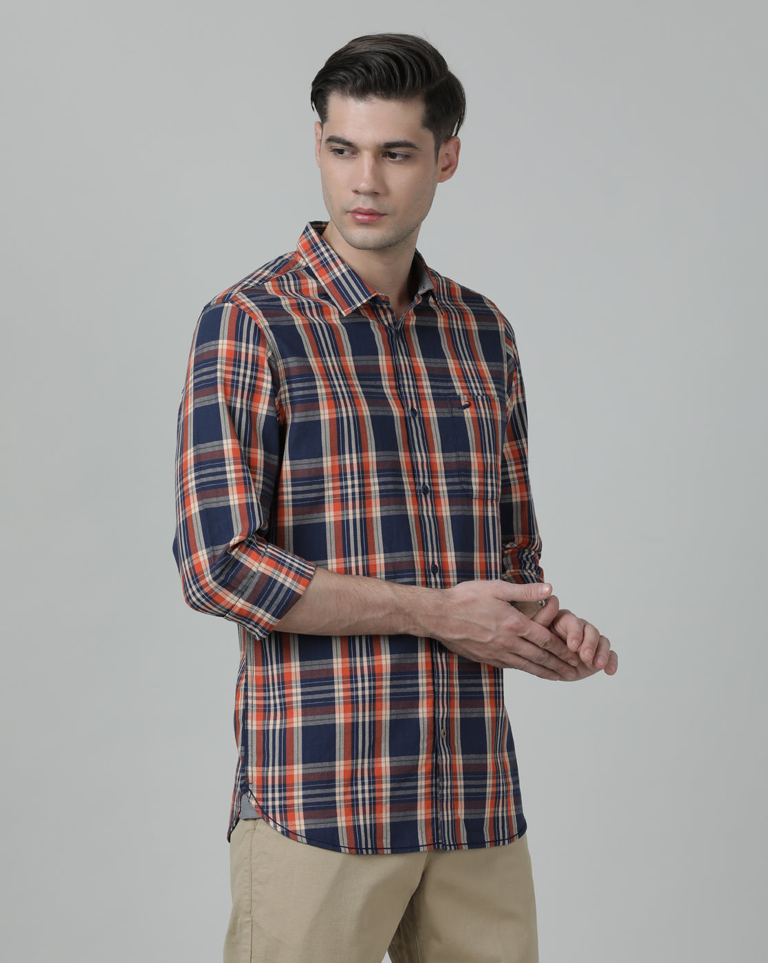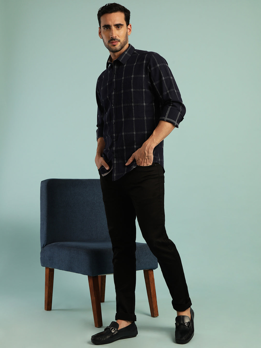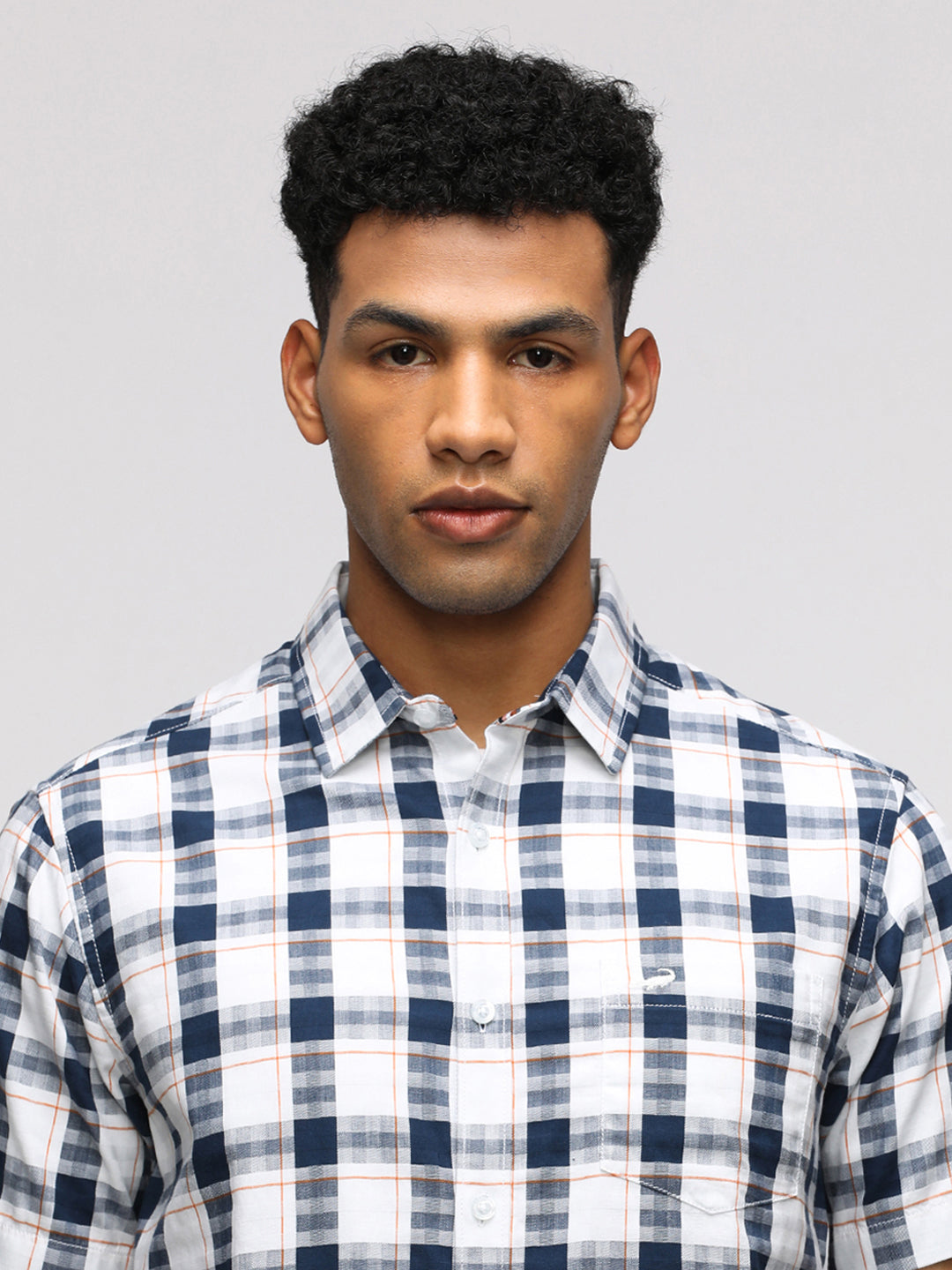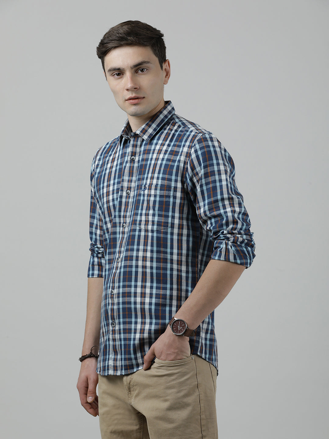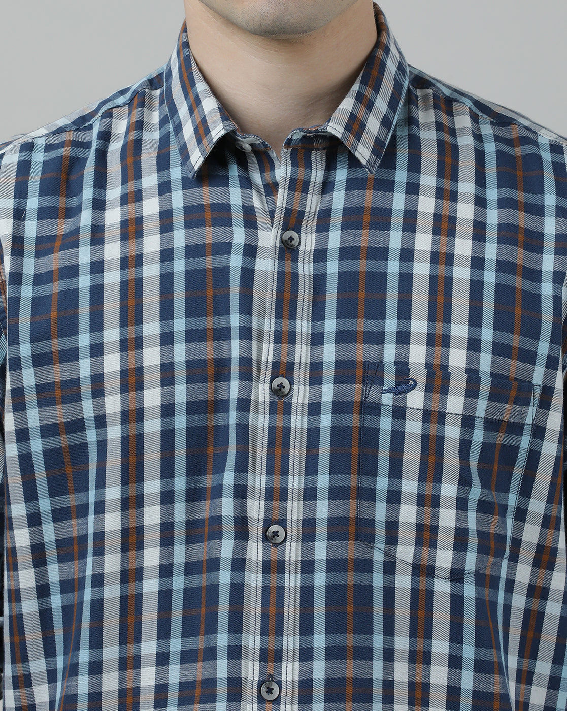 Checked Navy Full Sleeve Casual 100% Cotton Shirt
